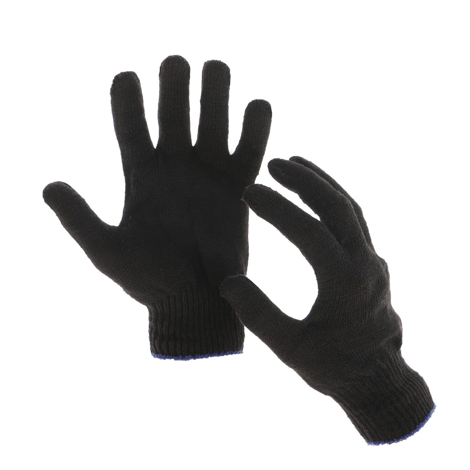 Перчатки садовые, х/б, вязка 10 класс, 4 нити, размер 9, без покрытия, чёрные