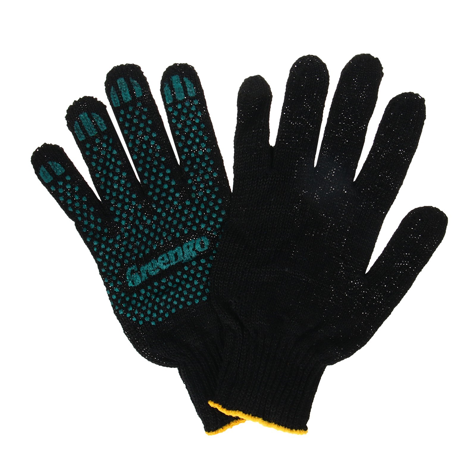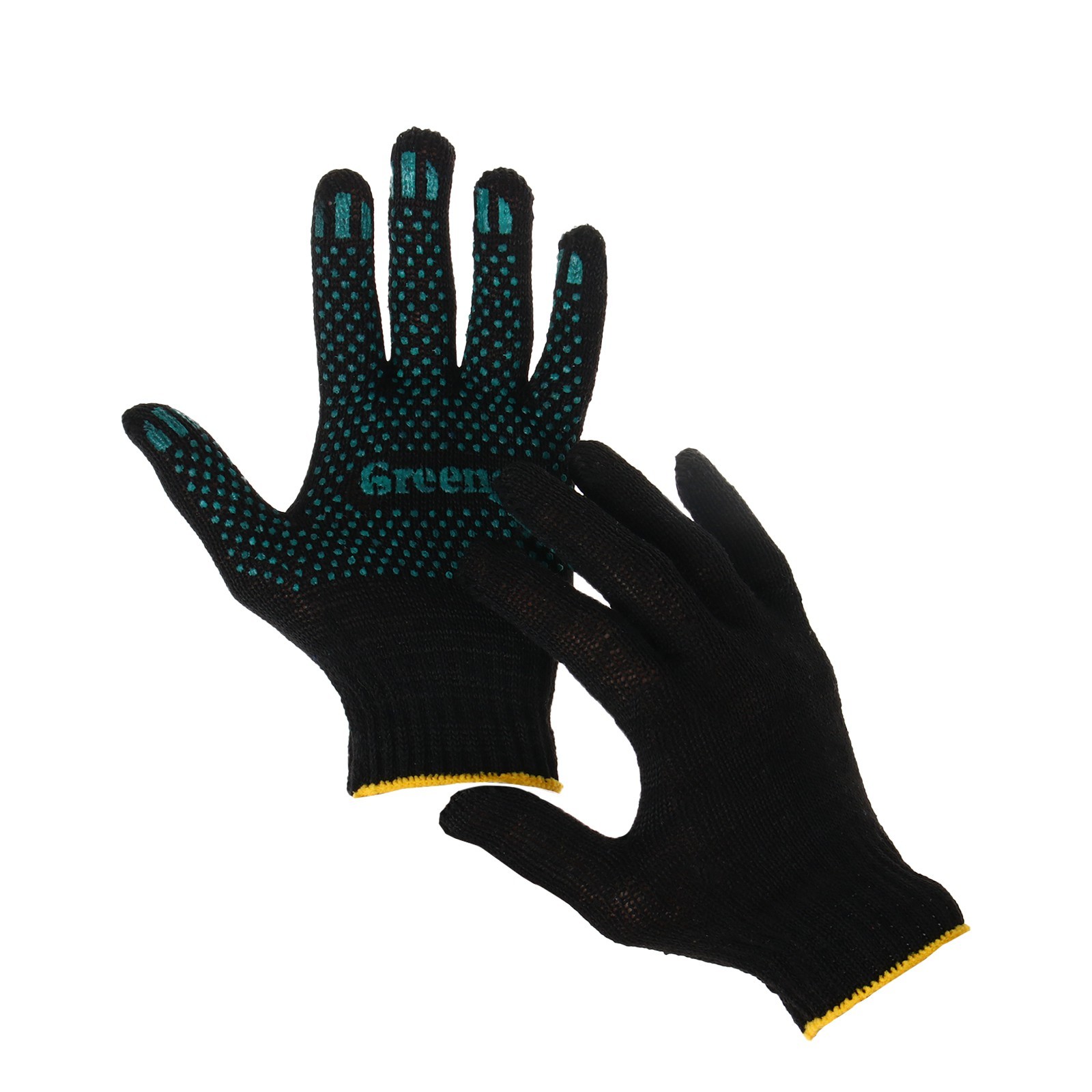 Перчатки садовые, х/б, вязка 7 класс, 4 нити, размер 9, с пвх точками, чёрные, Greengo