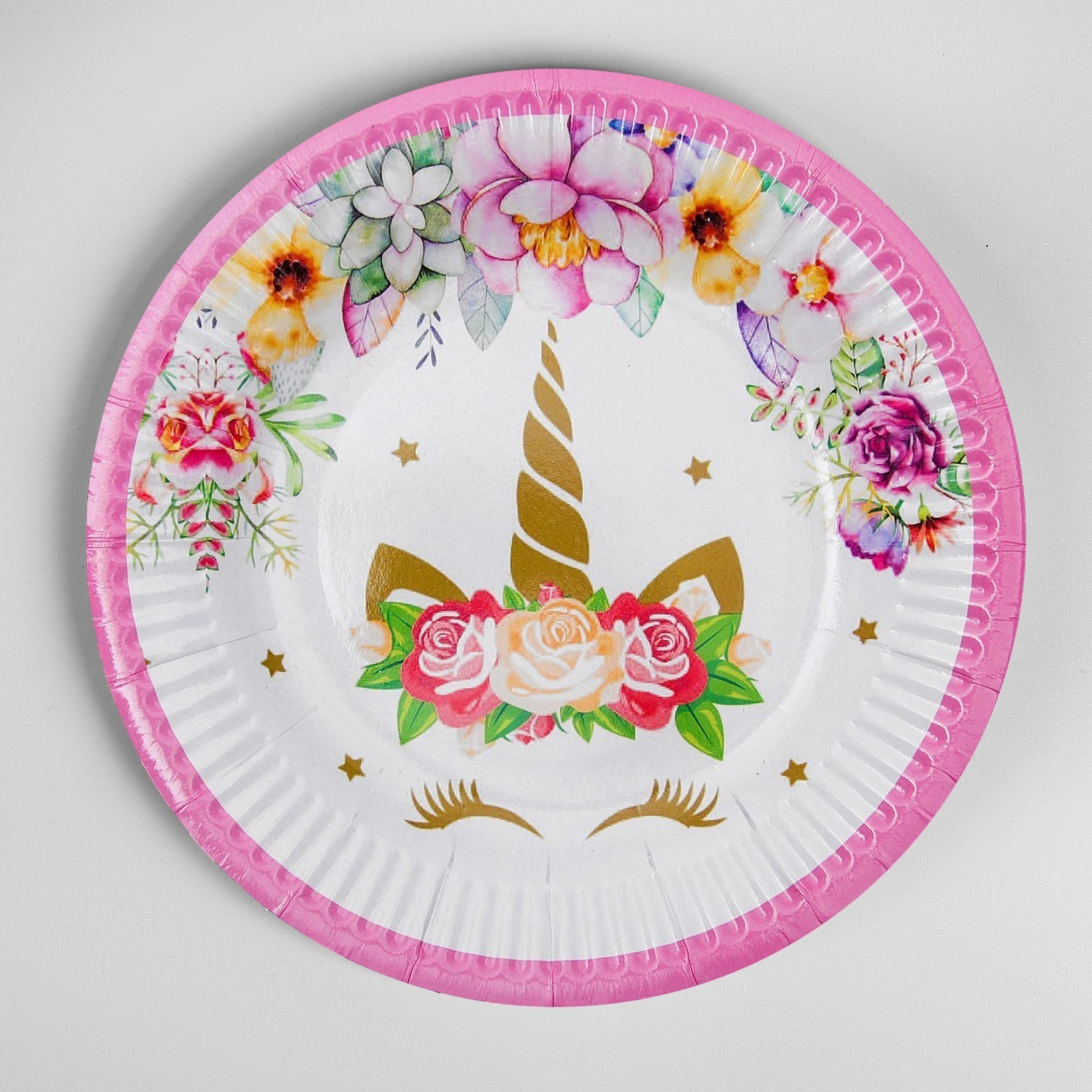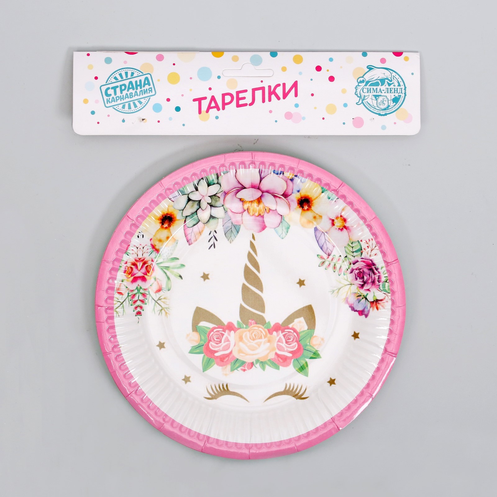 Тарелка бумажная «единорог и цветы», набор 6 шт., цвет розовый