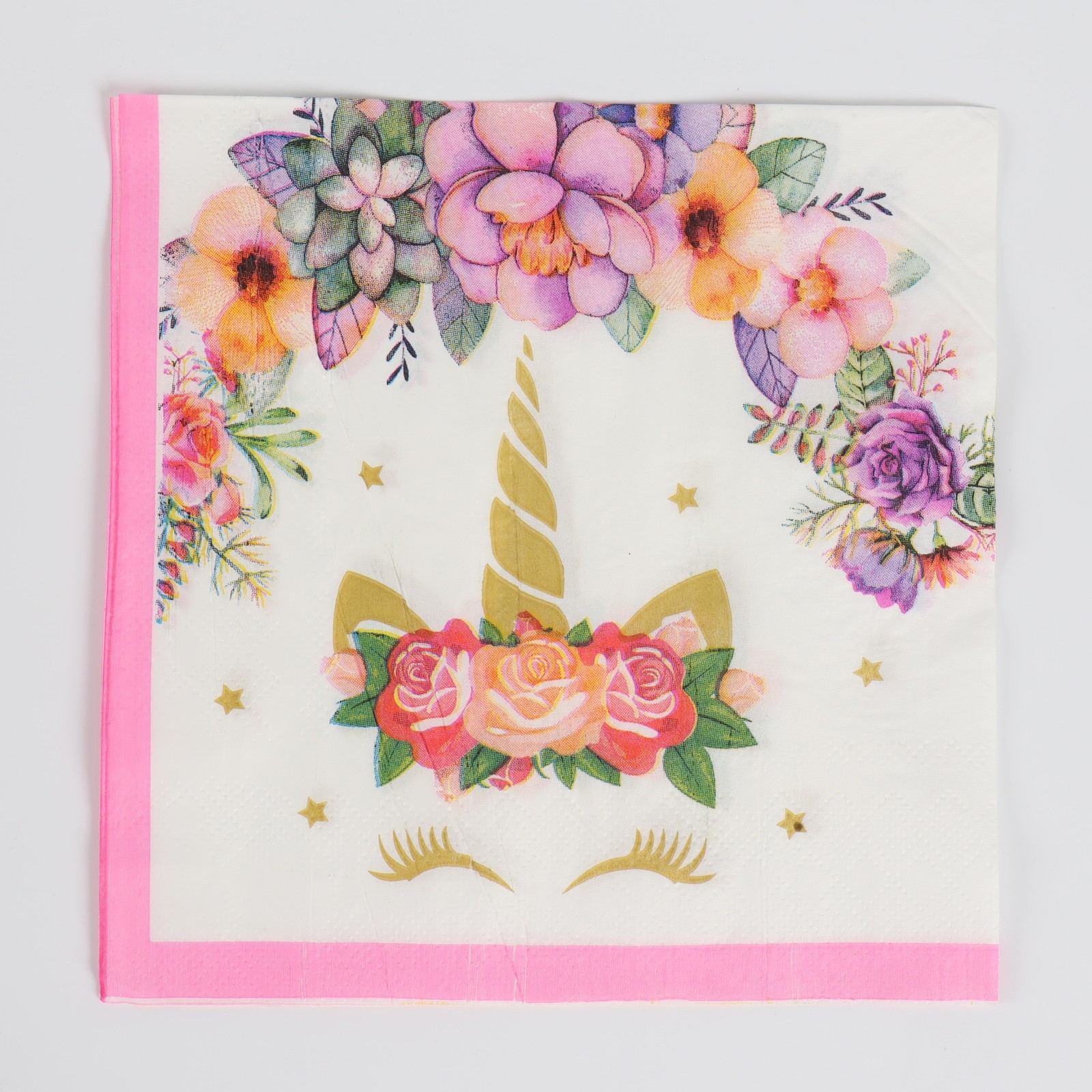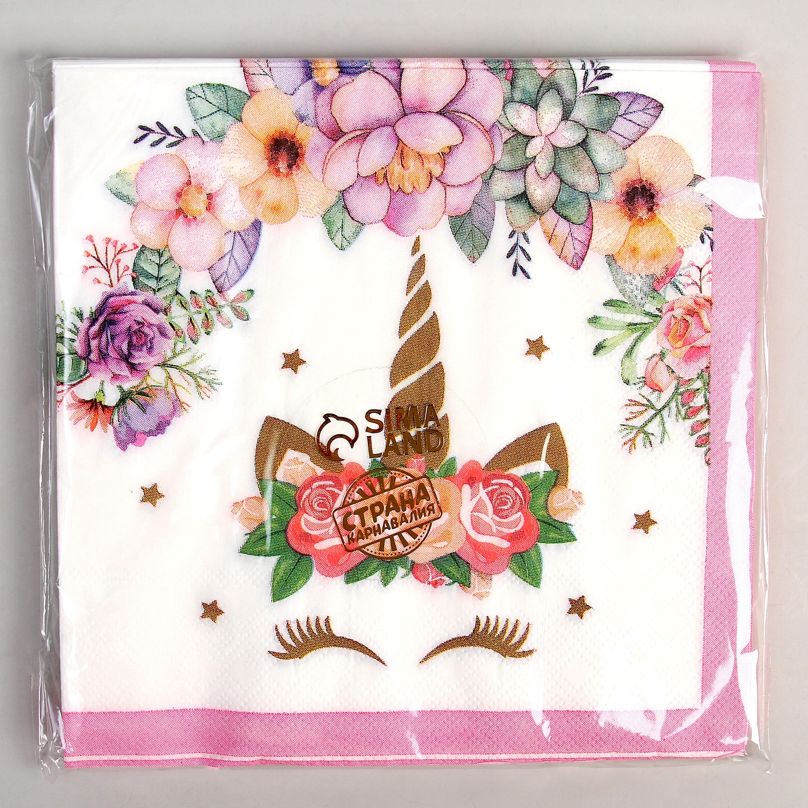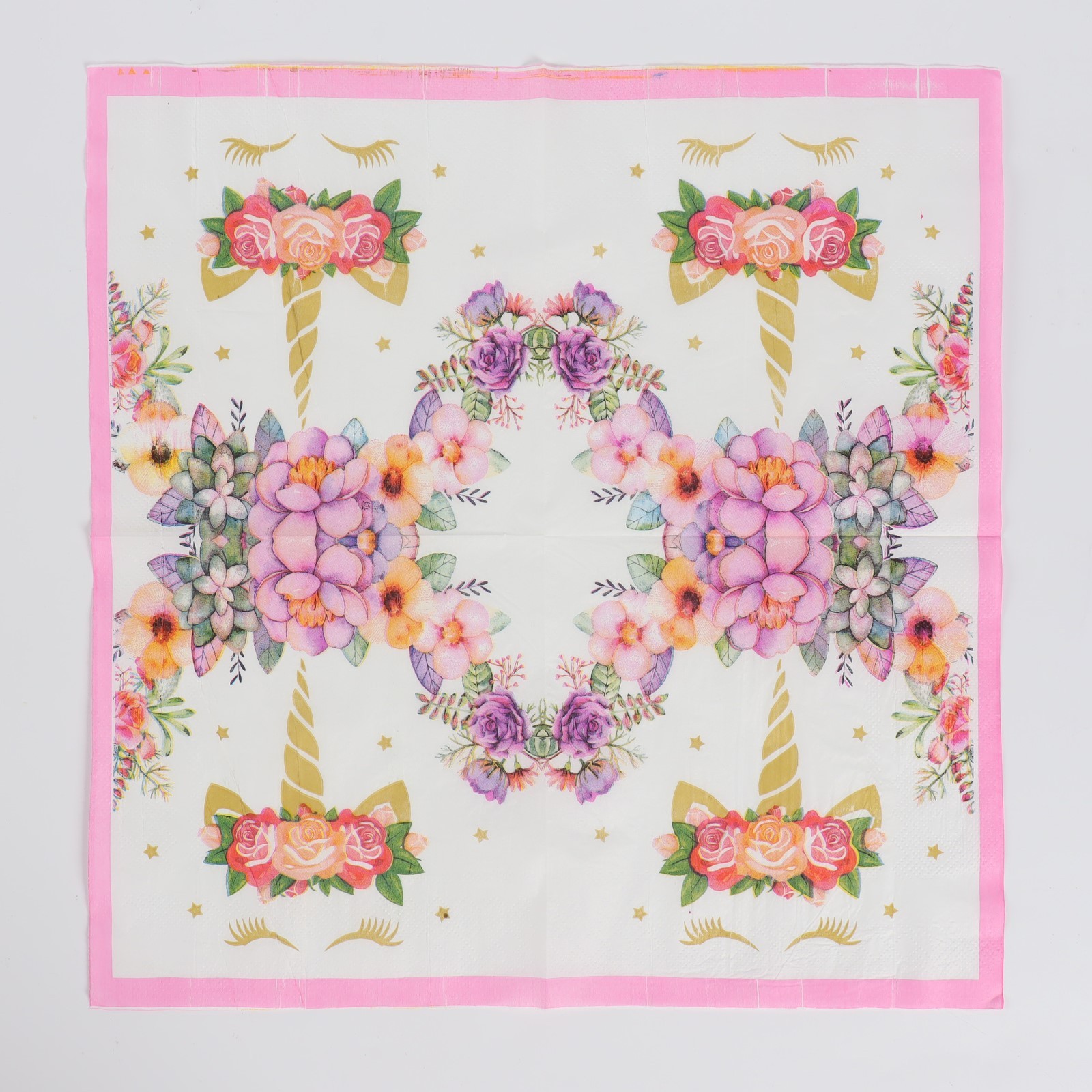 Салфетки бумажные «единорог и цветы», 33х33 см, набор 20 шт., цвет розовый