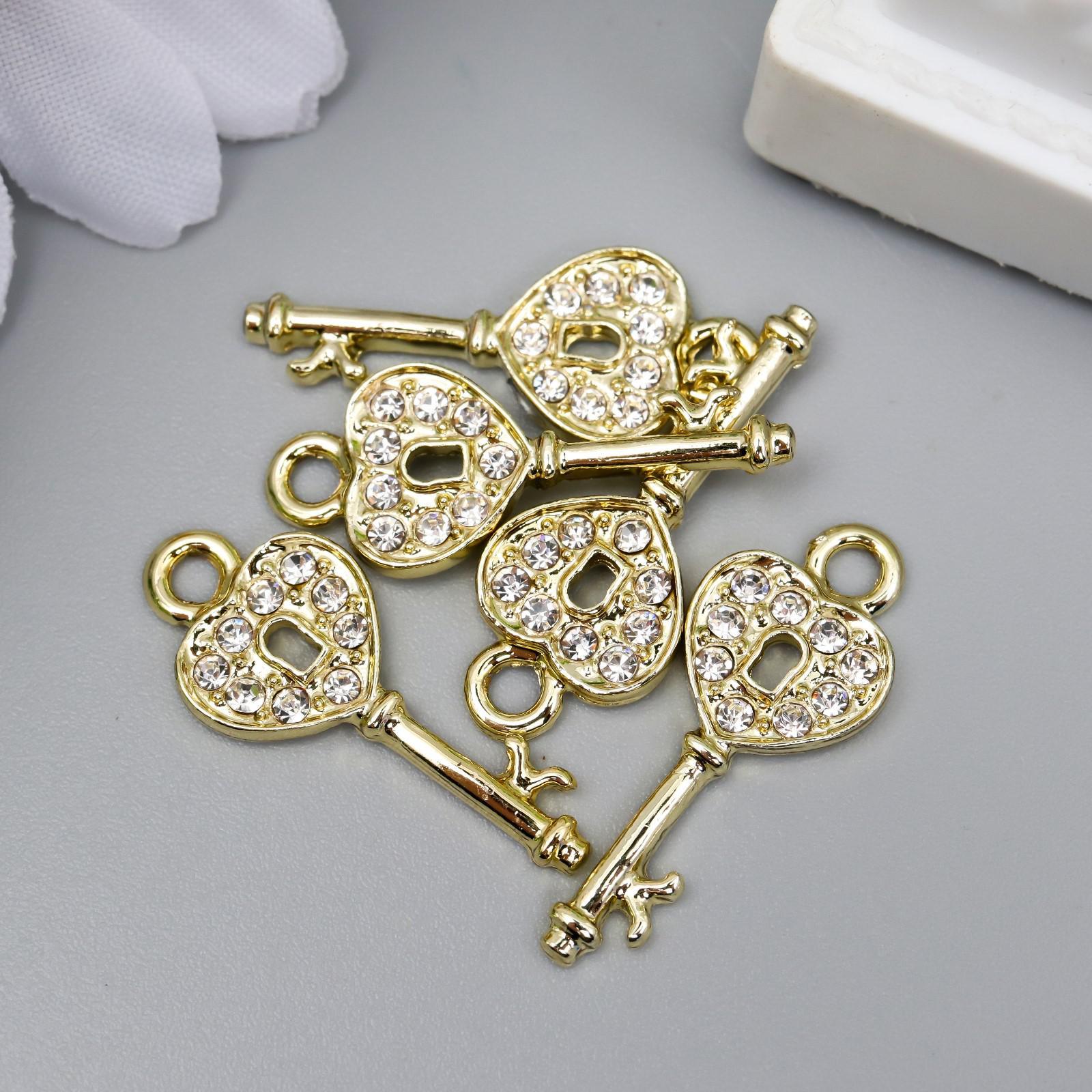 Металлический элемент, декоративная подвеска «арт узор. ключик», стразы, 2.3 1 см