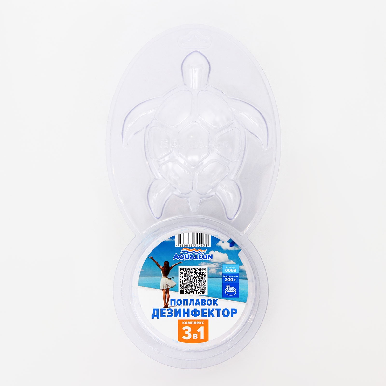 Медленный стабилизированный хлор Aqualeon, поплавок, дезинфектор, 200 г
