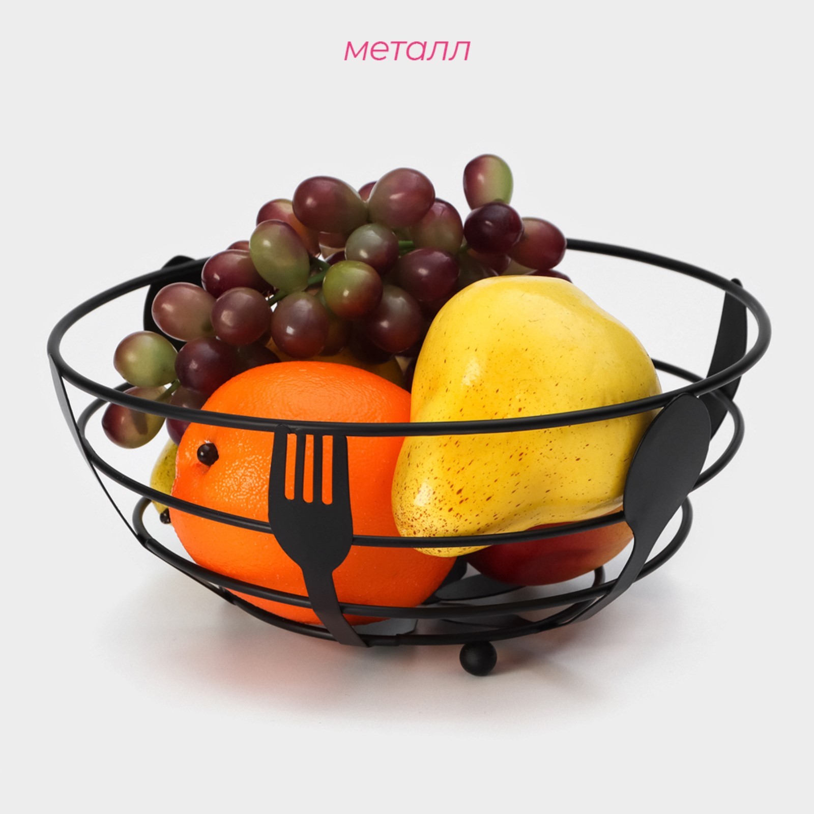 Фруктовница доляна, 23x23x10,5 см, цвет чёрный