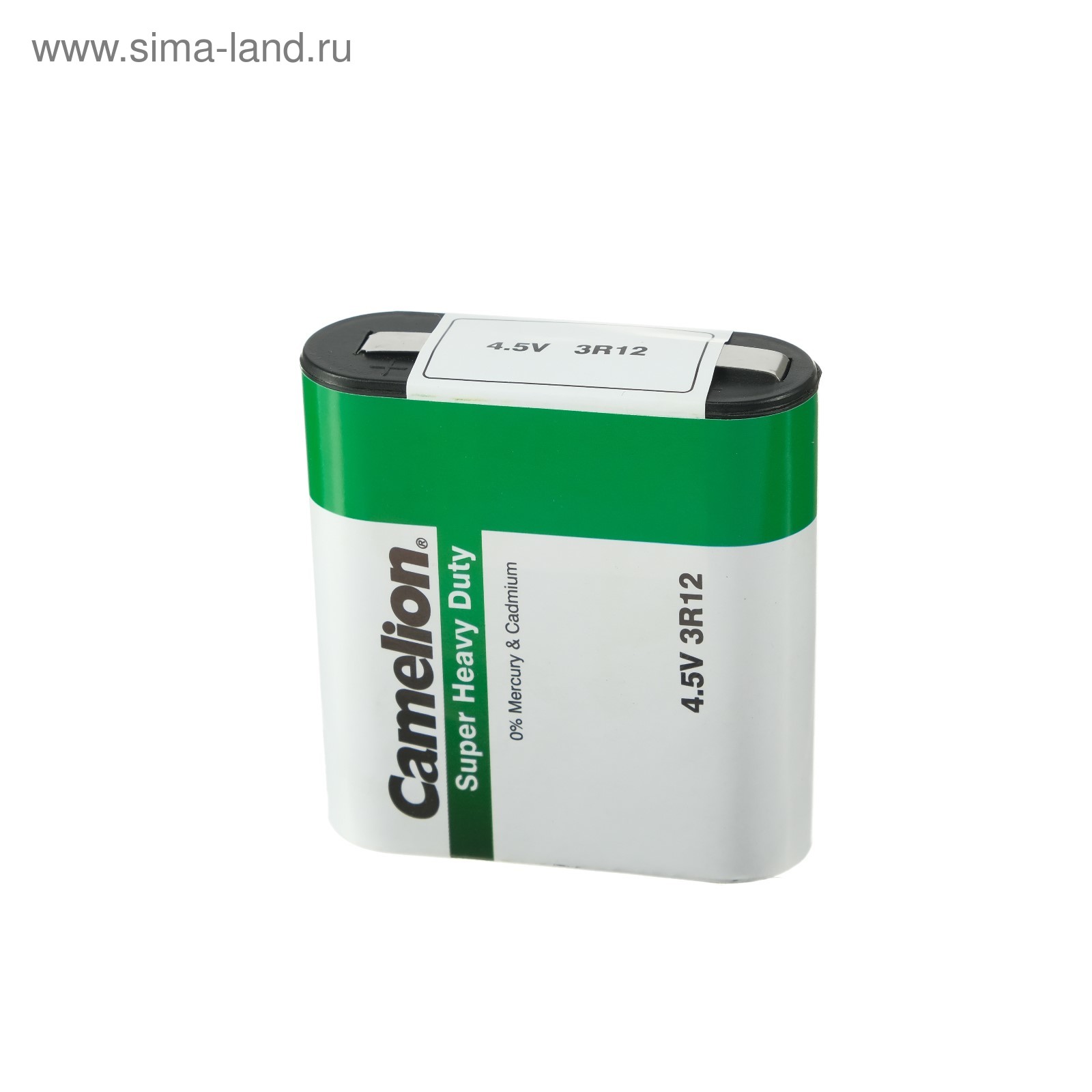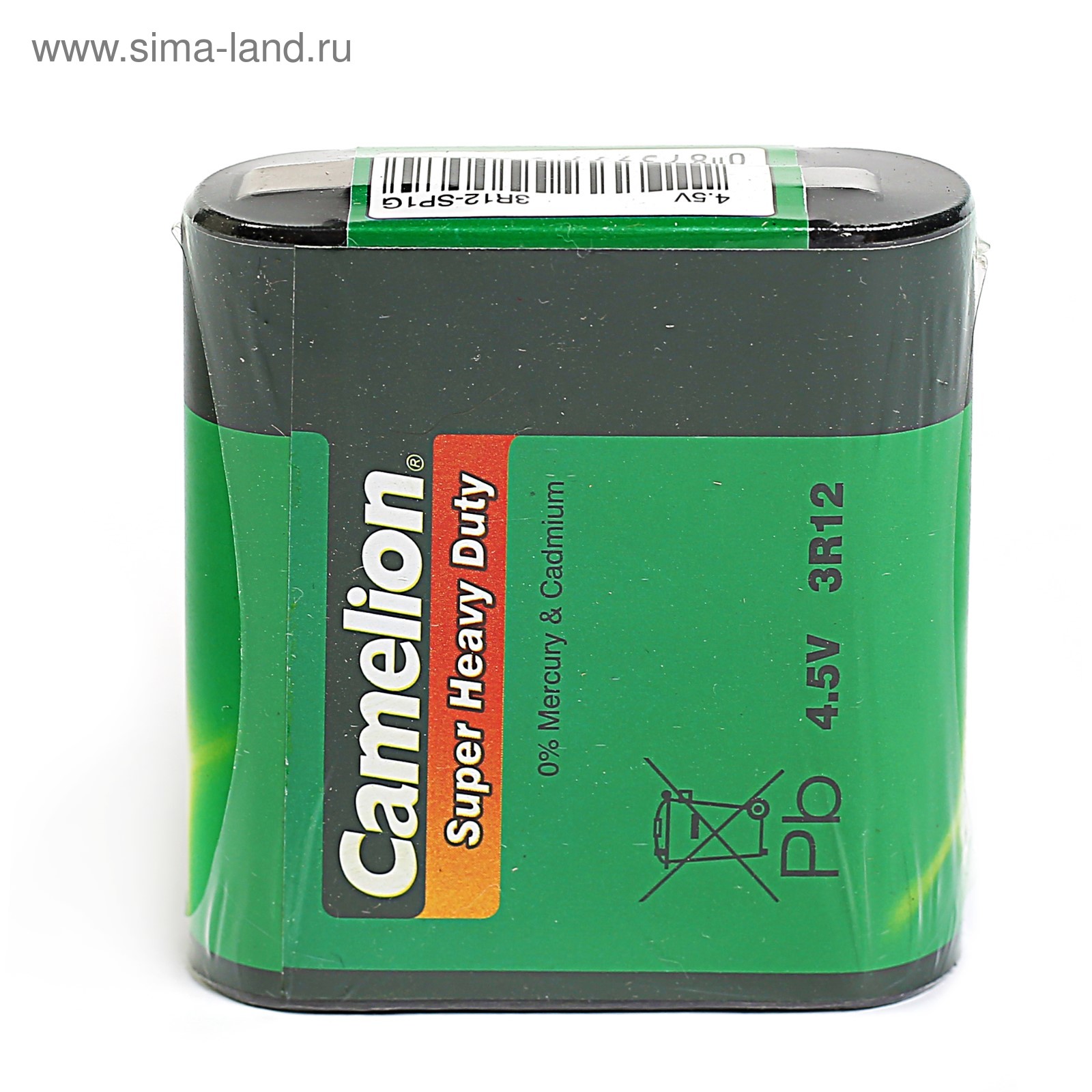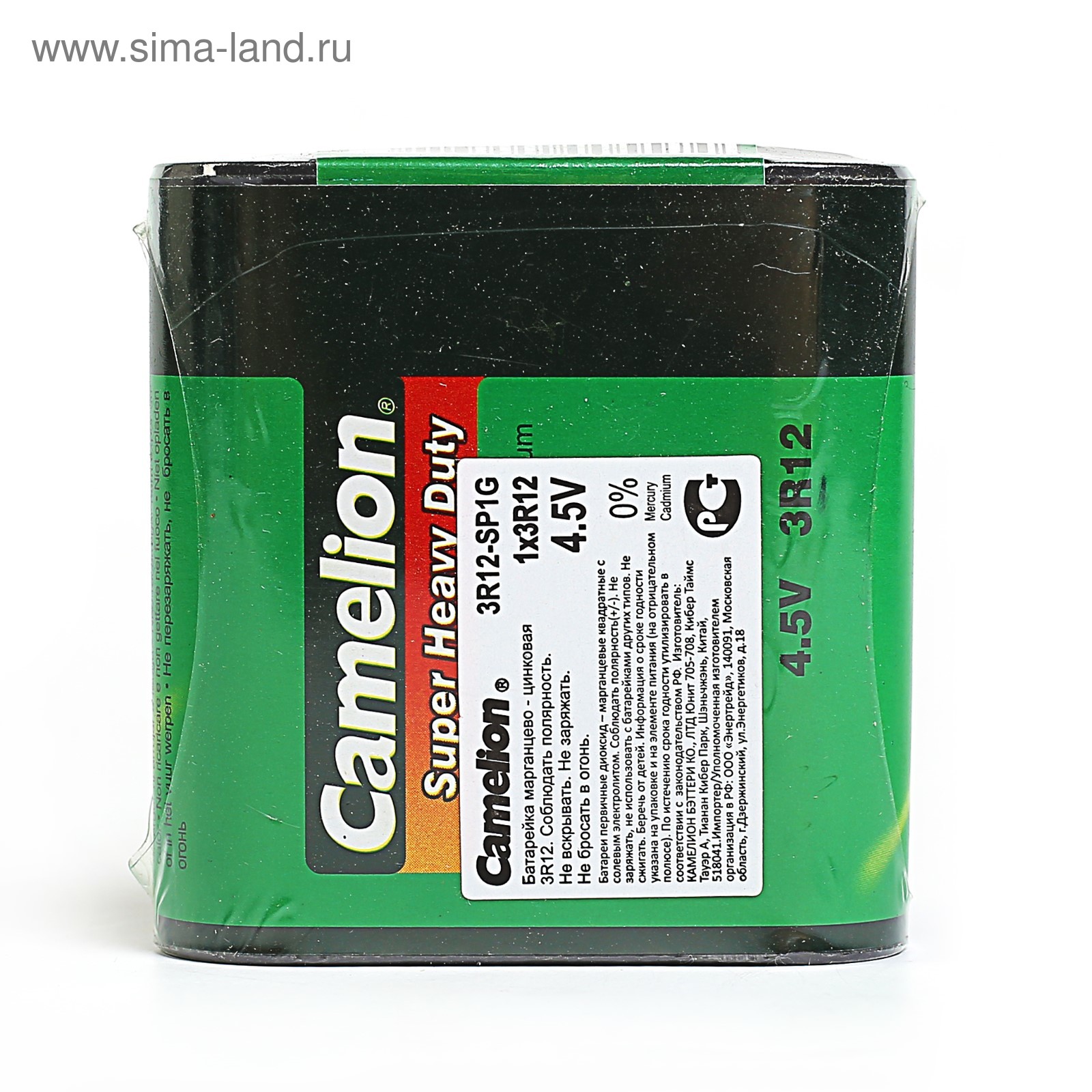 Батарейка солевая camelion super heavy duty, 3r12-1s (3r12-sp1g), 4.5в, спайка, 1 шт.. Батареи типоразмера 3R12 используют в старых карманных фонарях, радиоприёмниках, мультиметрах, а также самодельных электронных устройствах с напряжением 4, 5 В. Максимальная эффективность солевых элементов питания (3R12) достигается в приборах, которые не создают долговременных и интенсивных нагрузок. А их низкая цена не обременит вас при эксплуатации приспособлений. Срок хранения составляет от 1 до 3 лет. parts count: 0 В упаковке, шт.: 1 Вид упаковки: Спайка Типоразмер батареек: 3R12 Тип батарейки: Солевая  развернуть описание ▼