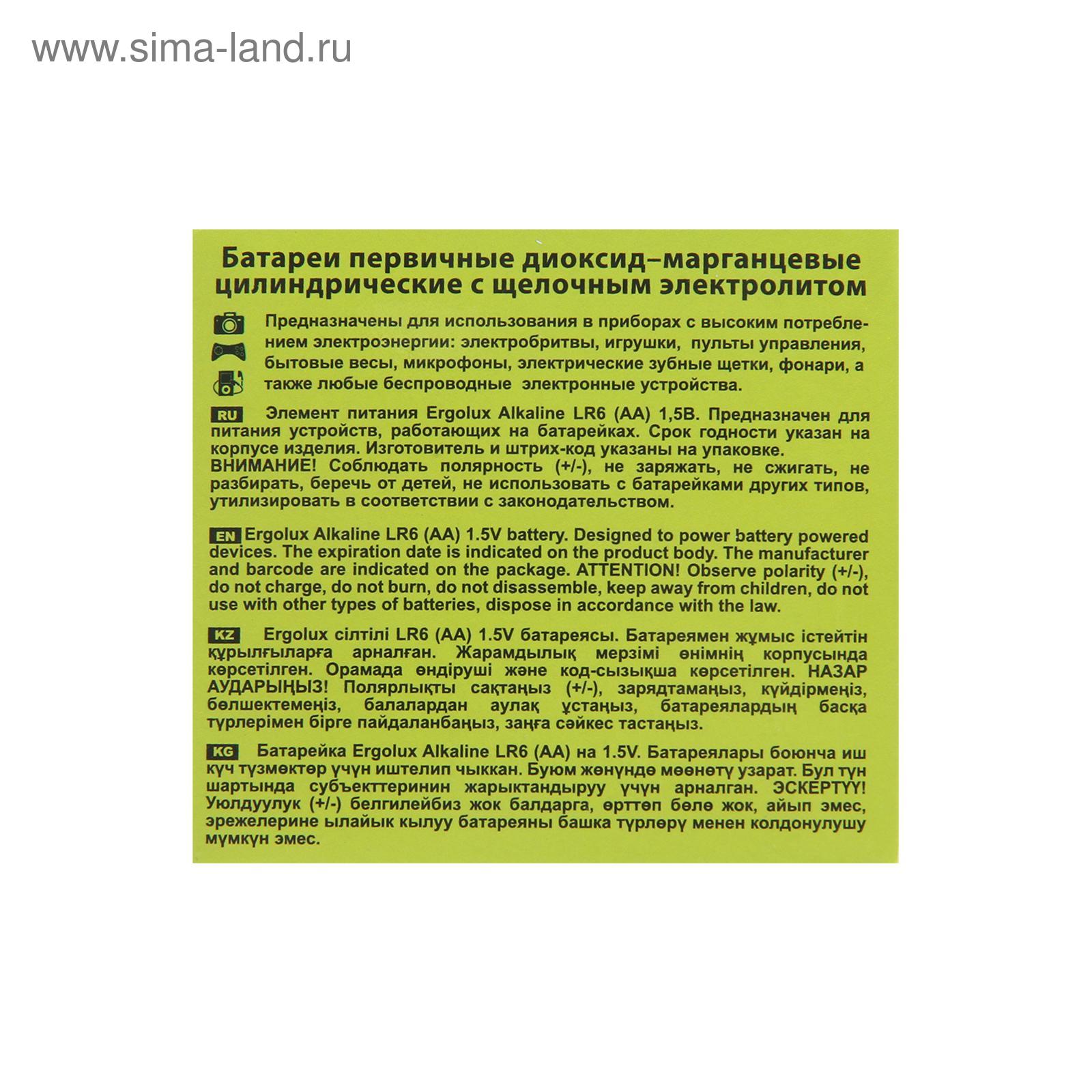 Батарейка алкалиновая Ergolux, Aa, Lr6-24box (lr6 Bp-24), 1.5в, набор 24 шт.