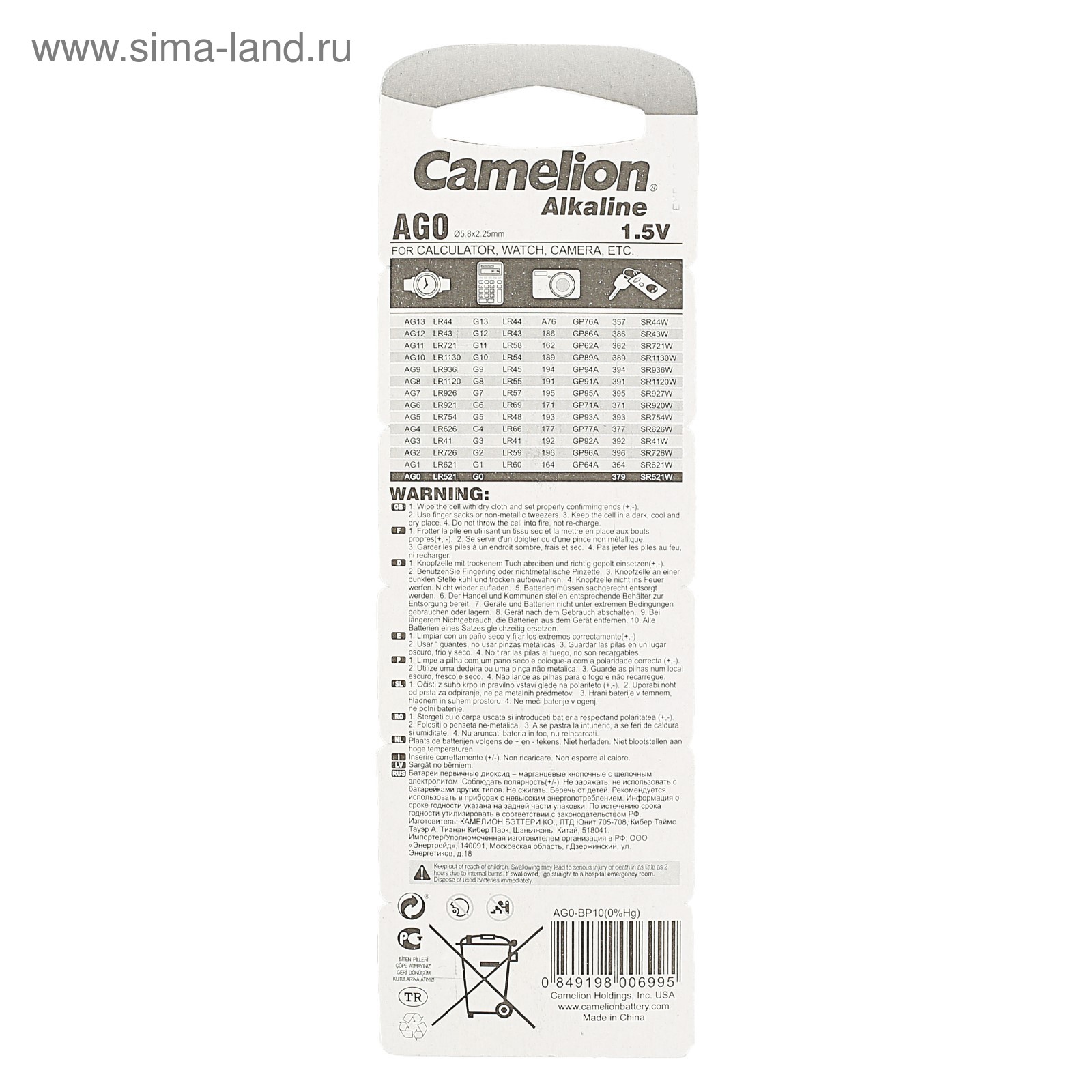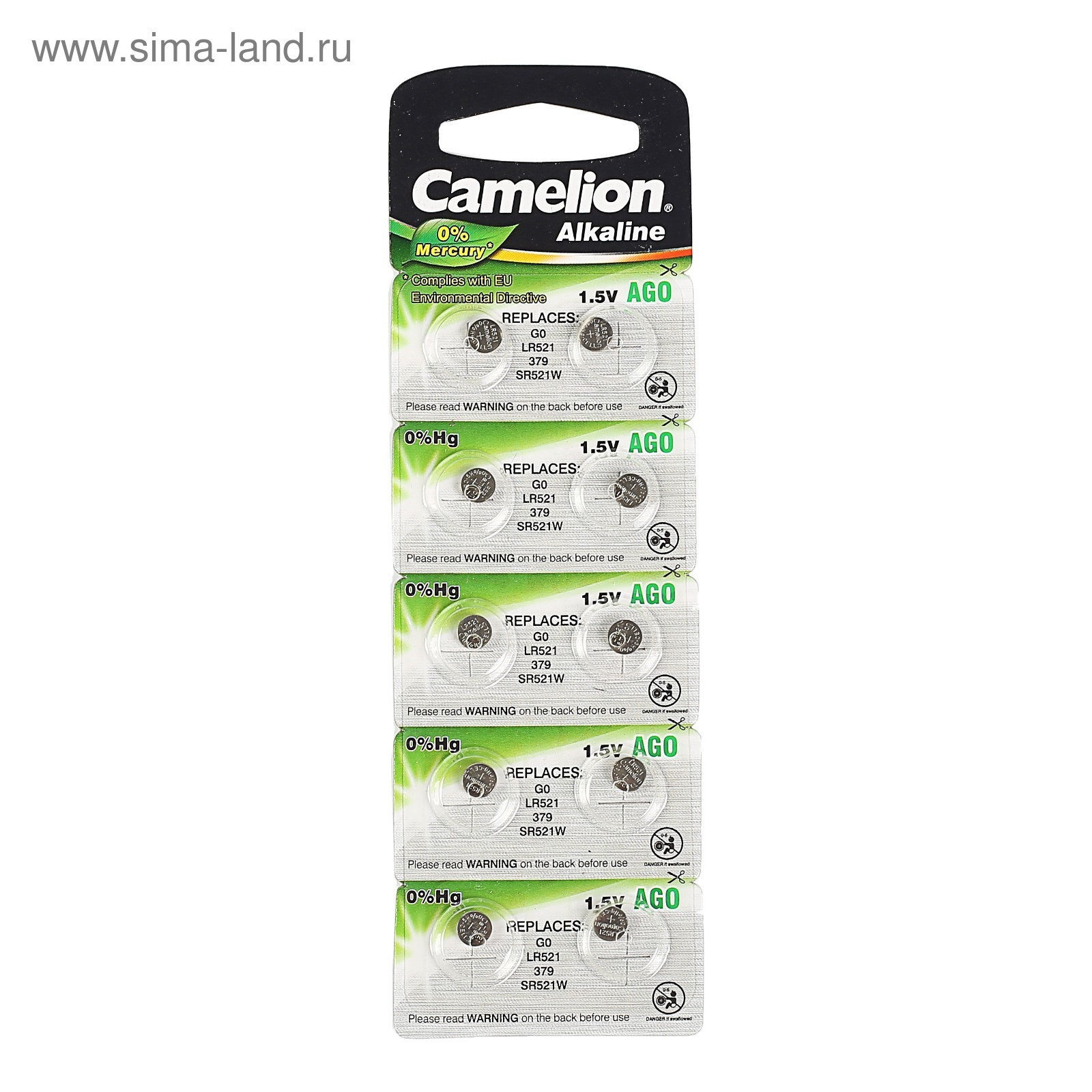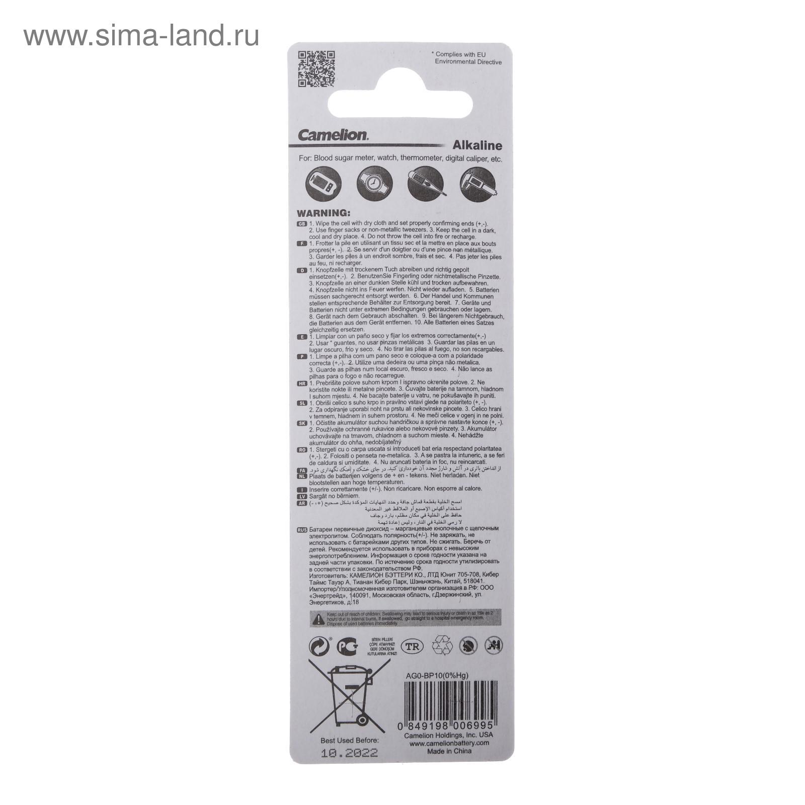 Батарейка алкалиновая Camelion Mercury Free, Ag0 (lr521, 379)-10bl, 1.5в, блистер, 10 шт.