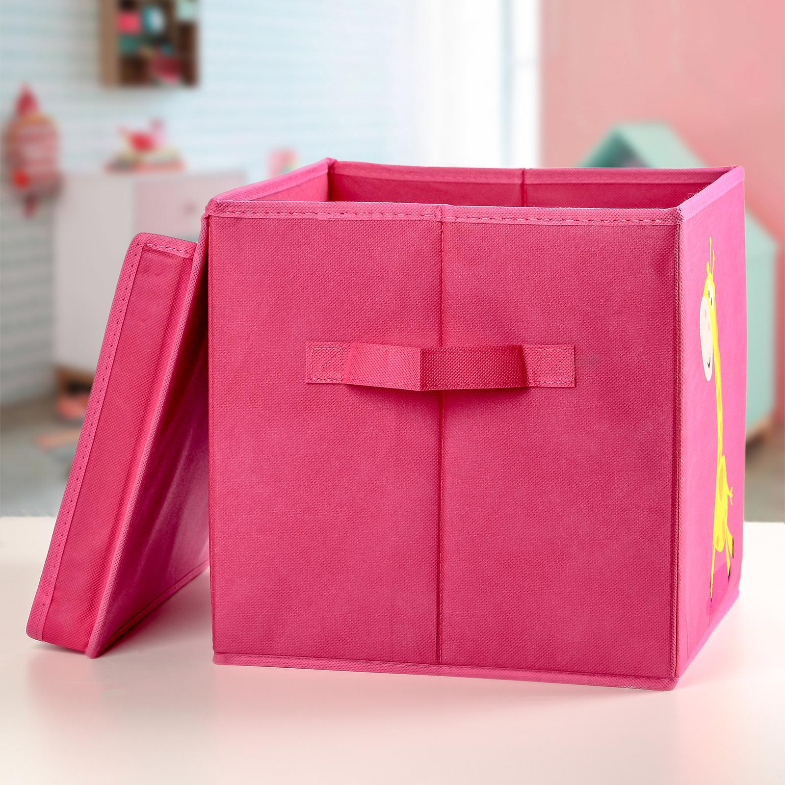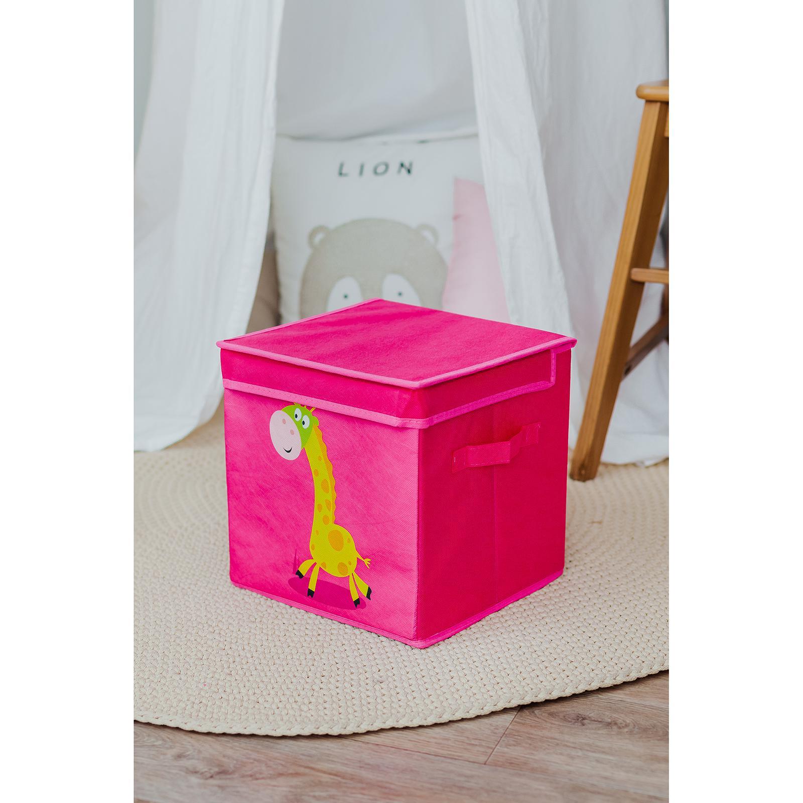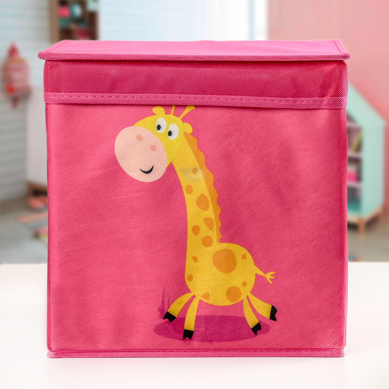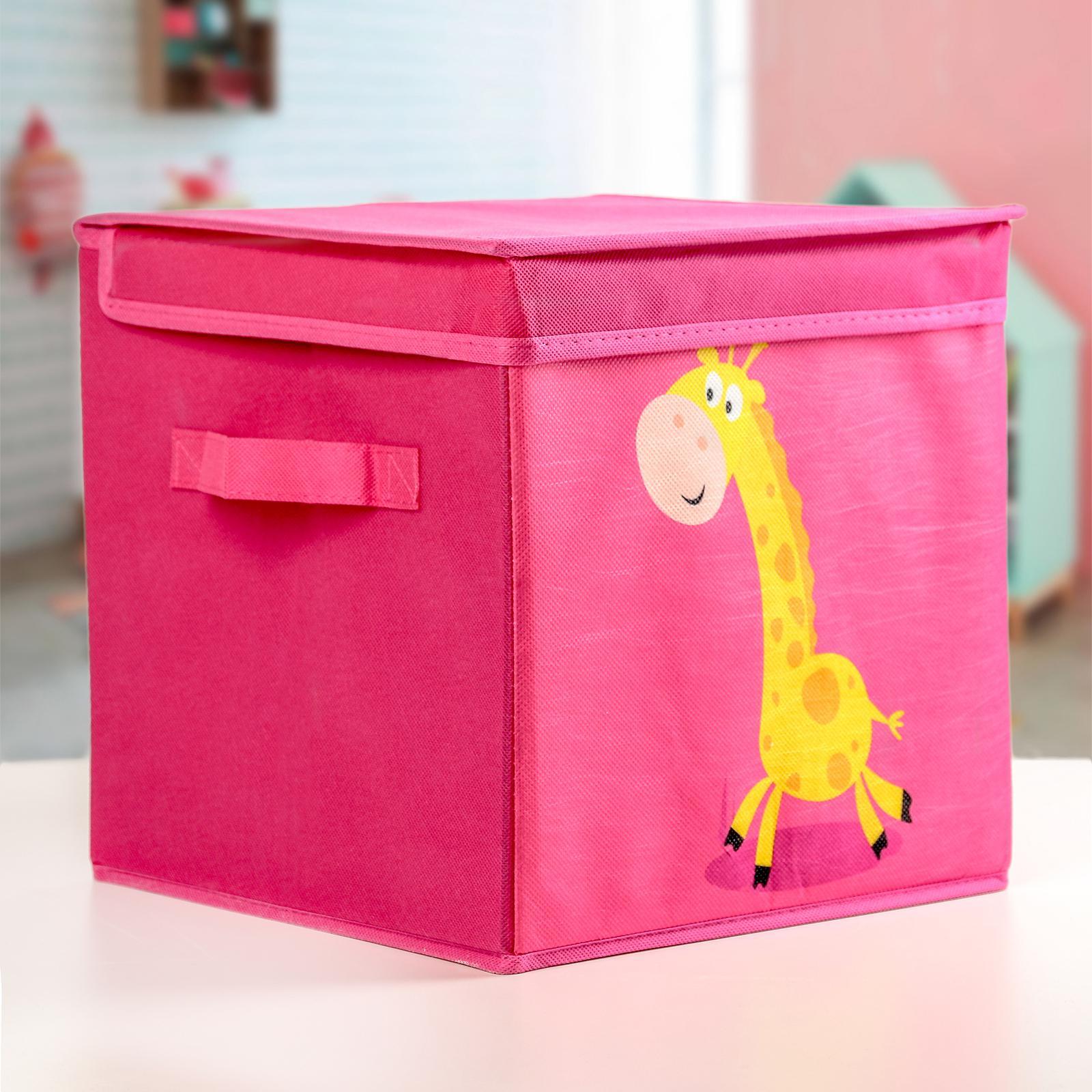 Короб стеллажный для хранения с крышкой «жираф», 25x25x25 см, цвет розовый