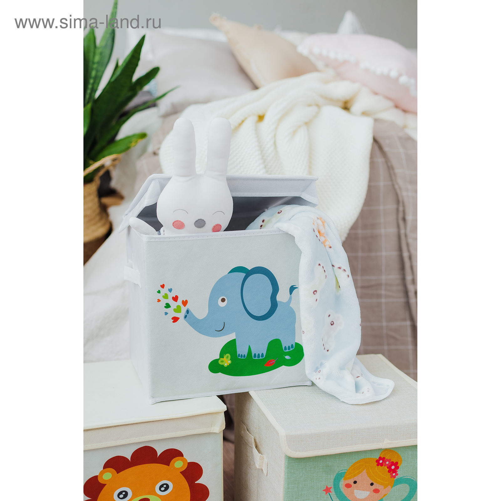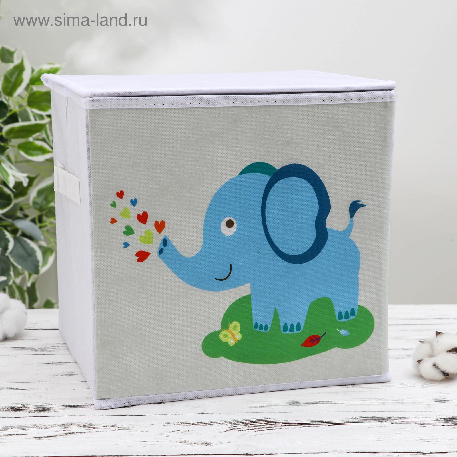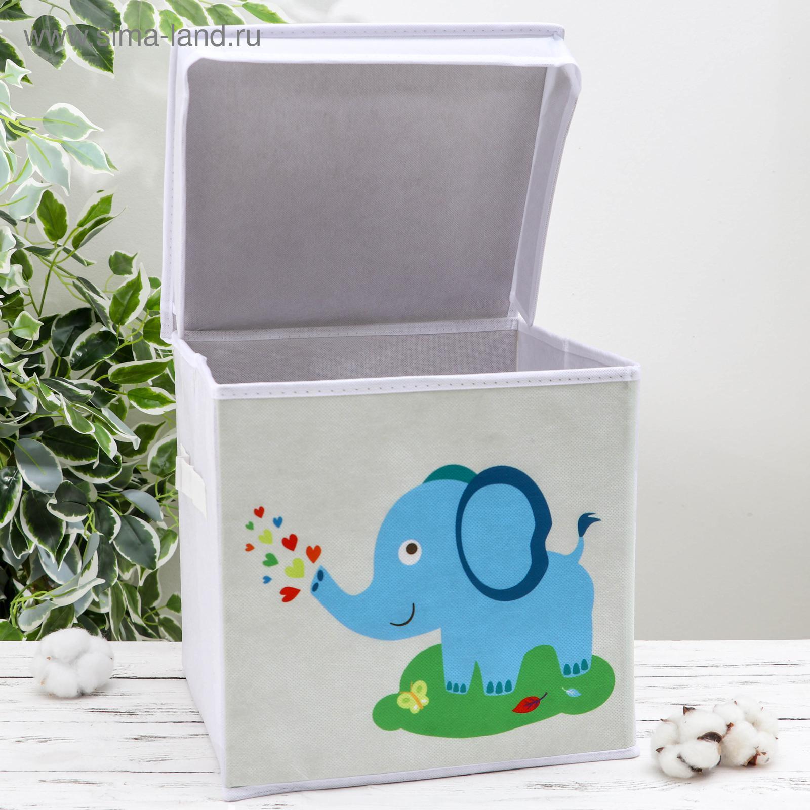 Короб стеллажный для хранения с крышкой «слонёнок», 25x25x25 см, цвет серый