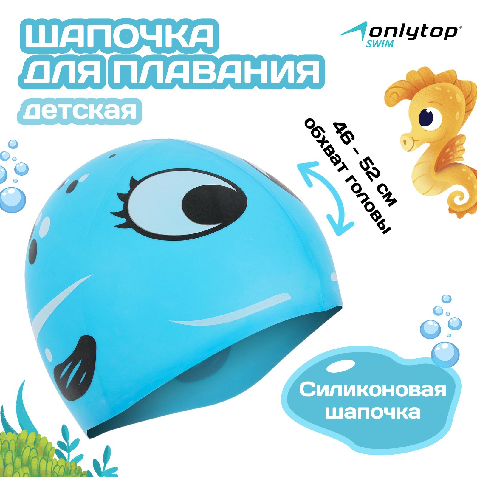 Шапочка для плавания детская Onlytop, силиконовая, обхват 46-52 см, цвета микс