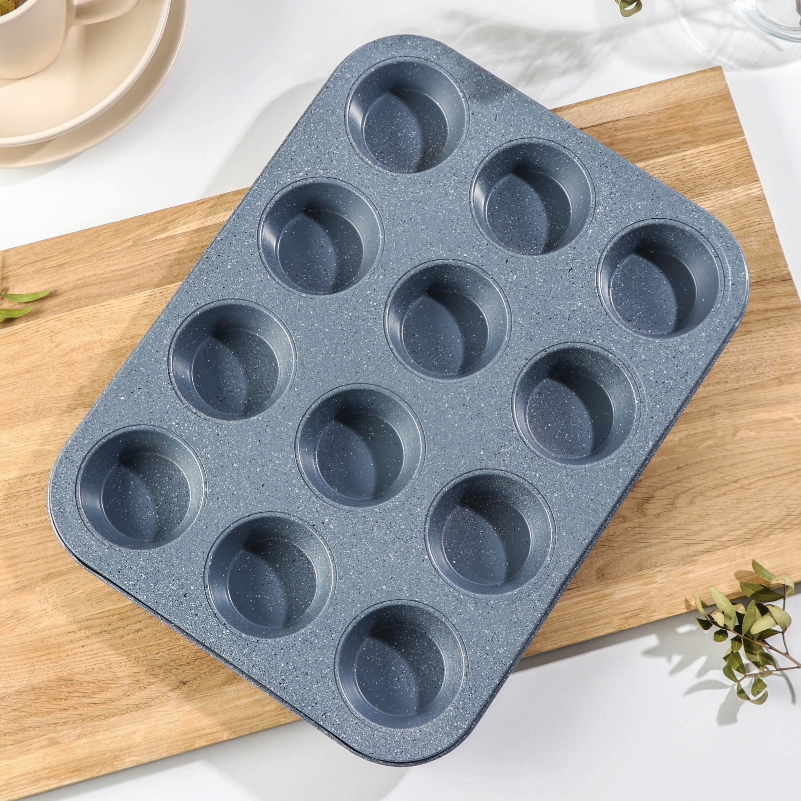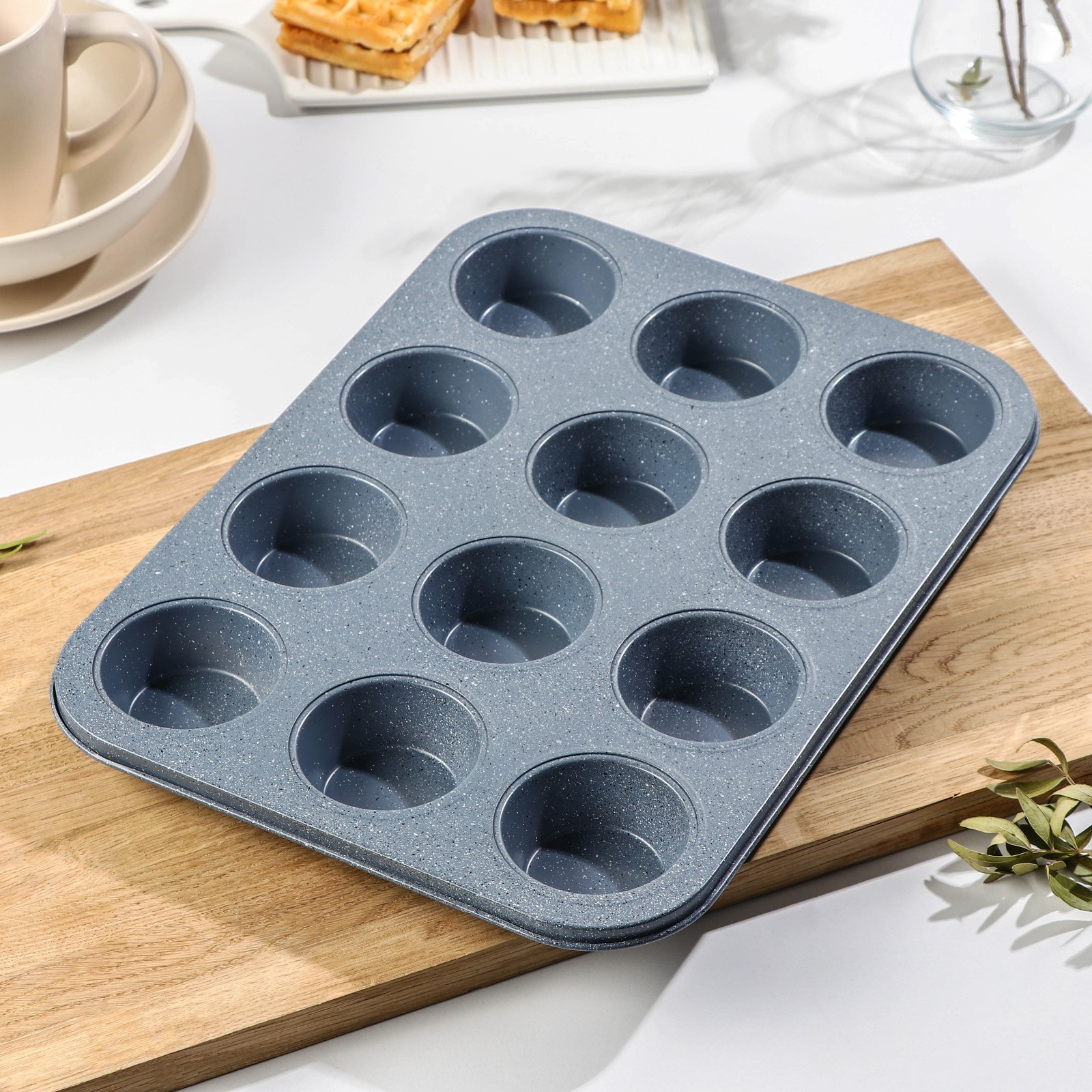Форма для выпечки доляна «мрамор», 35x27 см, 12 ячеек, антипригарное покрытие, цвет серый