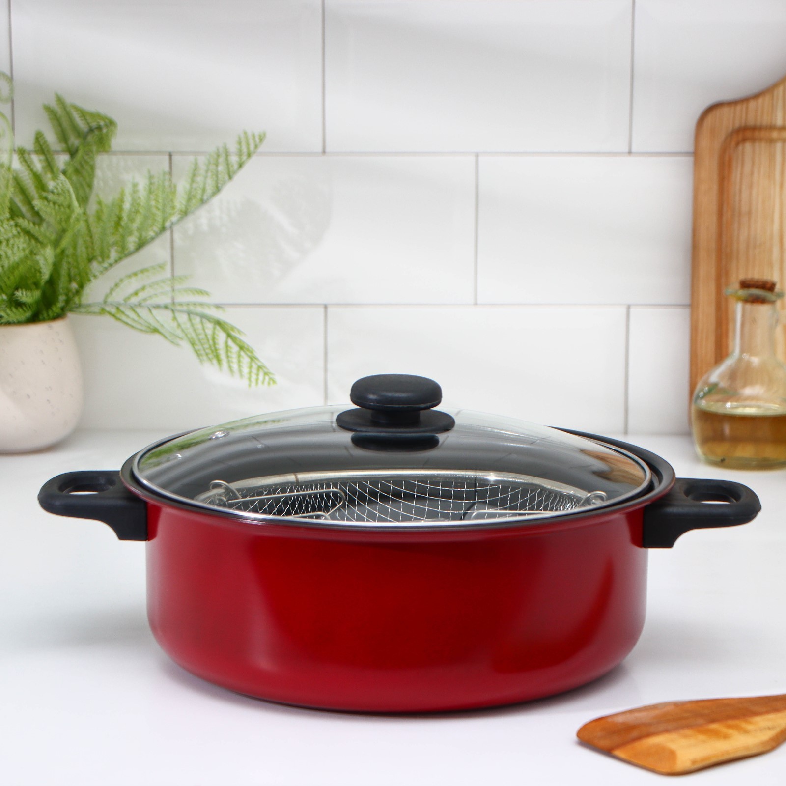 Кастрюля «ренард», 4 л, с крышкой, сетка фри 26x9 см, антипригарное покрытие, цвет красный