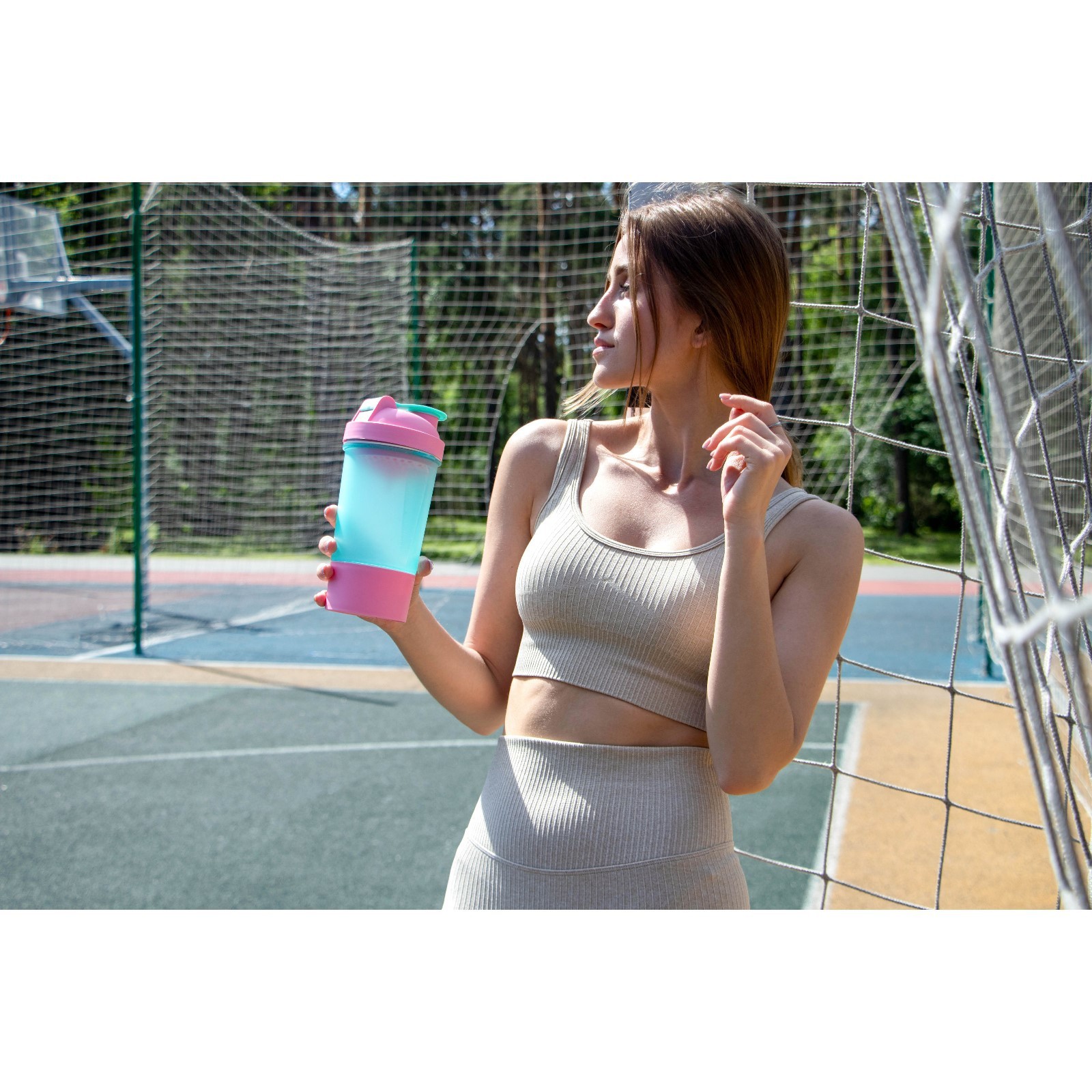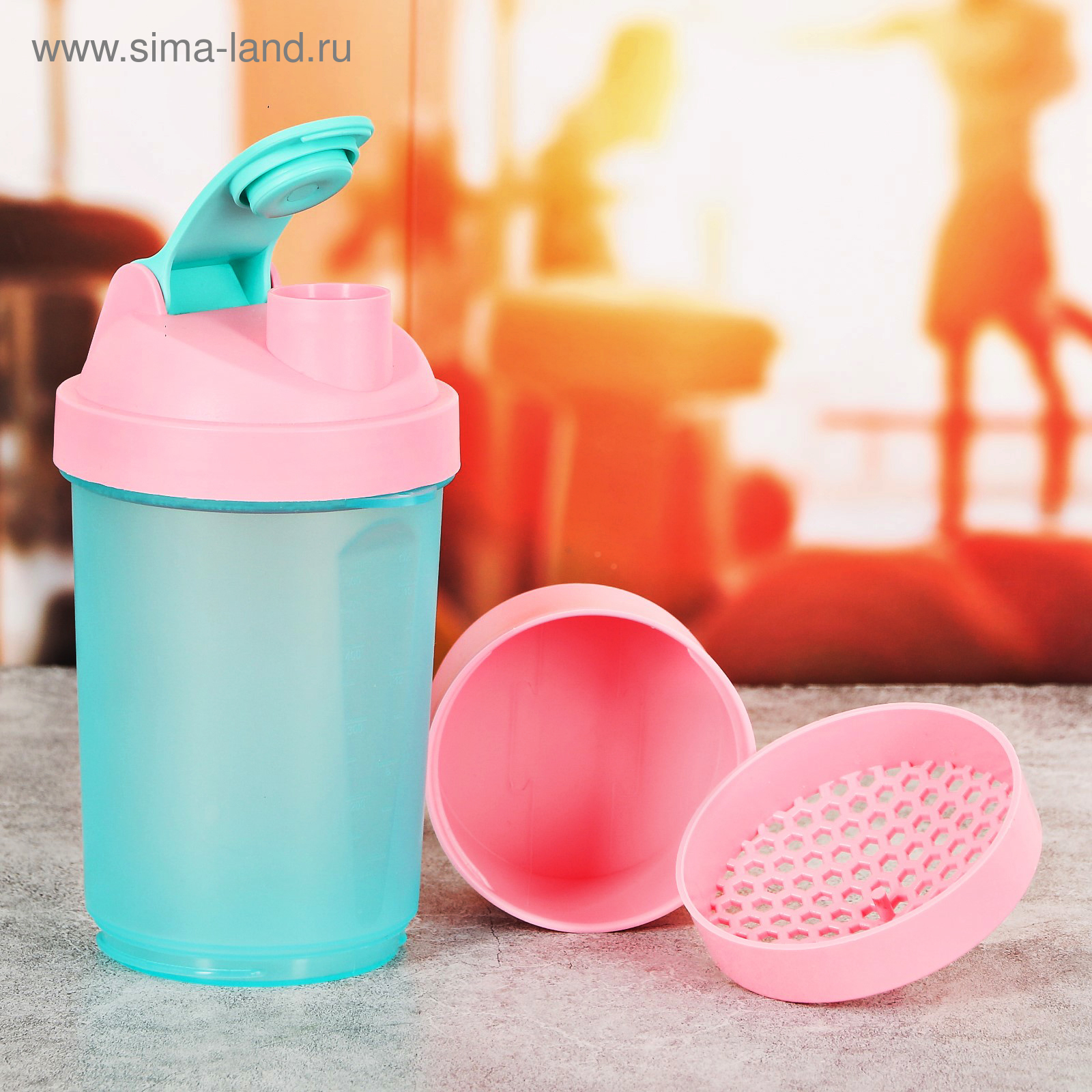 Шейкер спортивный с чашей под протеин, голубо-розовый, 500 мл