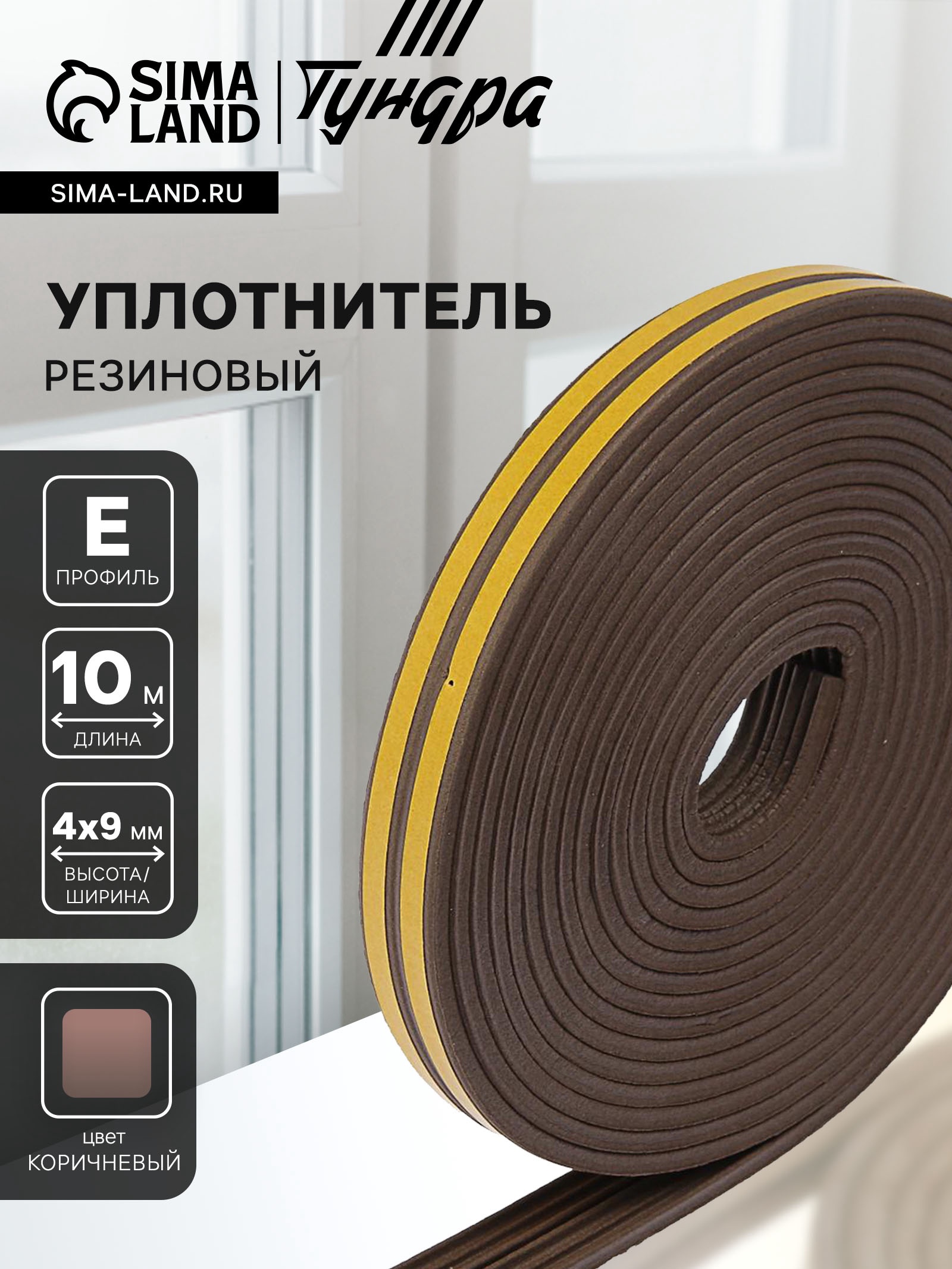 Уплотнитель резиновый тундра krep, профиль е, размер 4 9 мм, коричневый, в упаковке 10 м. Резиновый уплотнитель — это полоса из вспененной высококачественной резины. Изделие имеет пористую структуру. С одной стороны полосы клеящий слой, который закрыт защитной бумагой. Изделие используется в быту и в производственных помещениях для шумо- и теплоизоляции, а также уплотнения оконных рам, створок или дверной коробки. Преимущества Мягкий и гибкий, обладает амортизационными свойствами.Устойчив к воздействию окружающей среды.Выдерживает большие колебания температуры.Долговечен. Срок службы резины — до 10 лет, клейкого слоя — до 5 лет.Резиновый уплотнитель профиля E предназначен для уплотнения щелей размером 2,5–3,5 мм. Цвет:Коричневый|Длина, м:10|Ширина, мм:9|Гарантийный срок, мес.:6|На клеевой основе:Да|Вид уплотнителя:Резиновый|Профиль уплотнителя:E|Страна:Китай  развернуть описание ▼