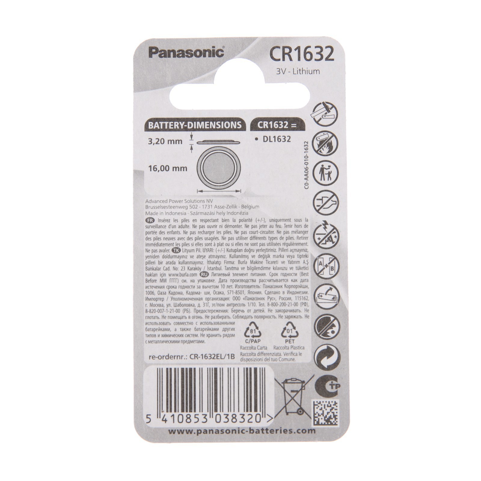 Батарейка литиевая panasonic lithium power, cr1632-1bl, 3в, блистер, 1 шт. parts count: 0 В упаковке, шт.: 1 Вид упаковки: Блистер Типоразмер батареек: CR1632 Тип батарейки: Литиевая  развернуть описание ▼