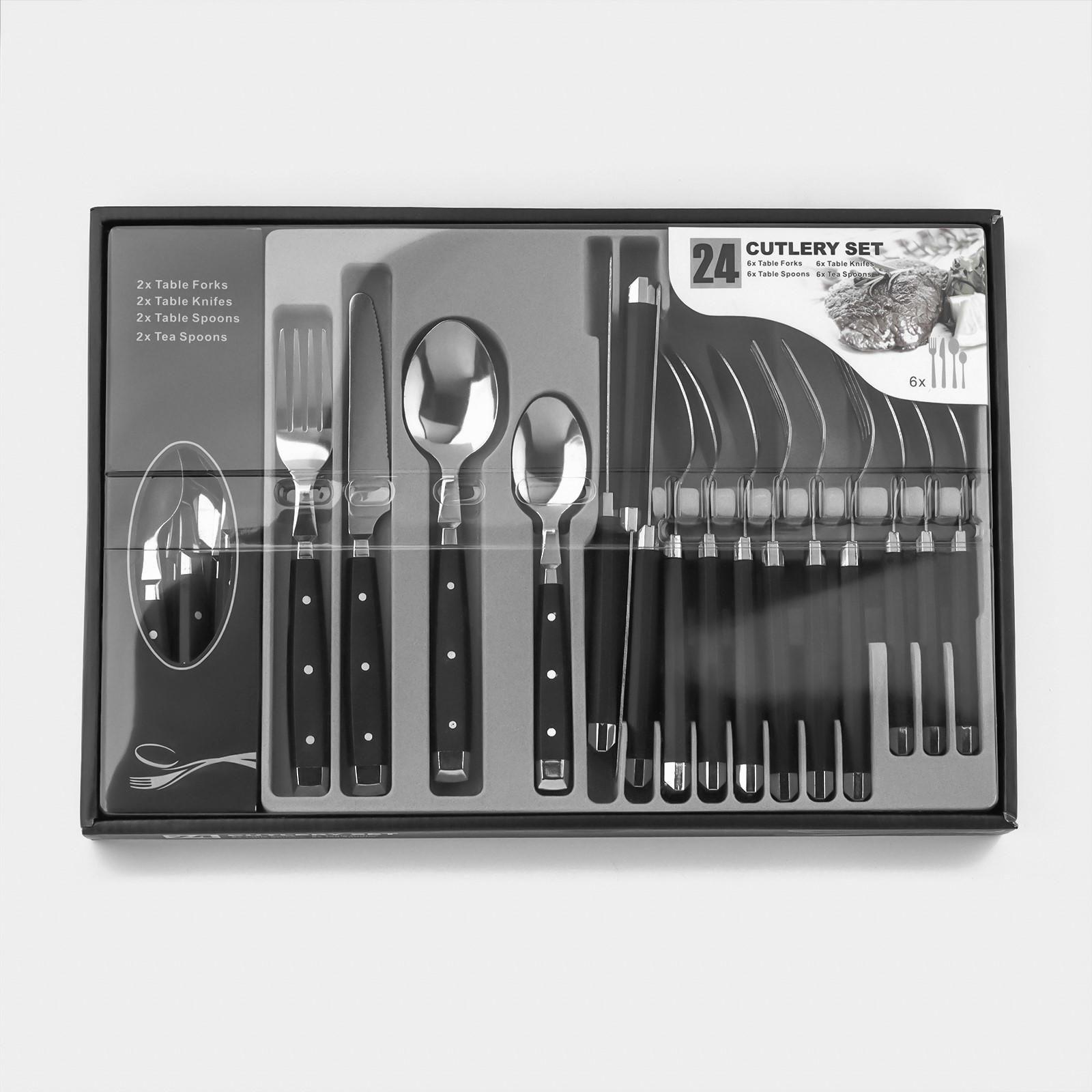 Набор столовых приборов из нержавеющей стали «аппетит», 24 предмета, цвет ручек чёрный