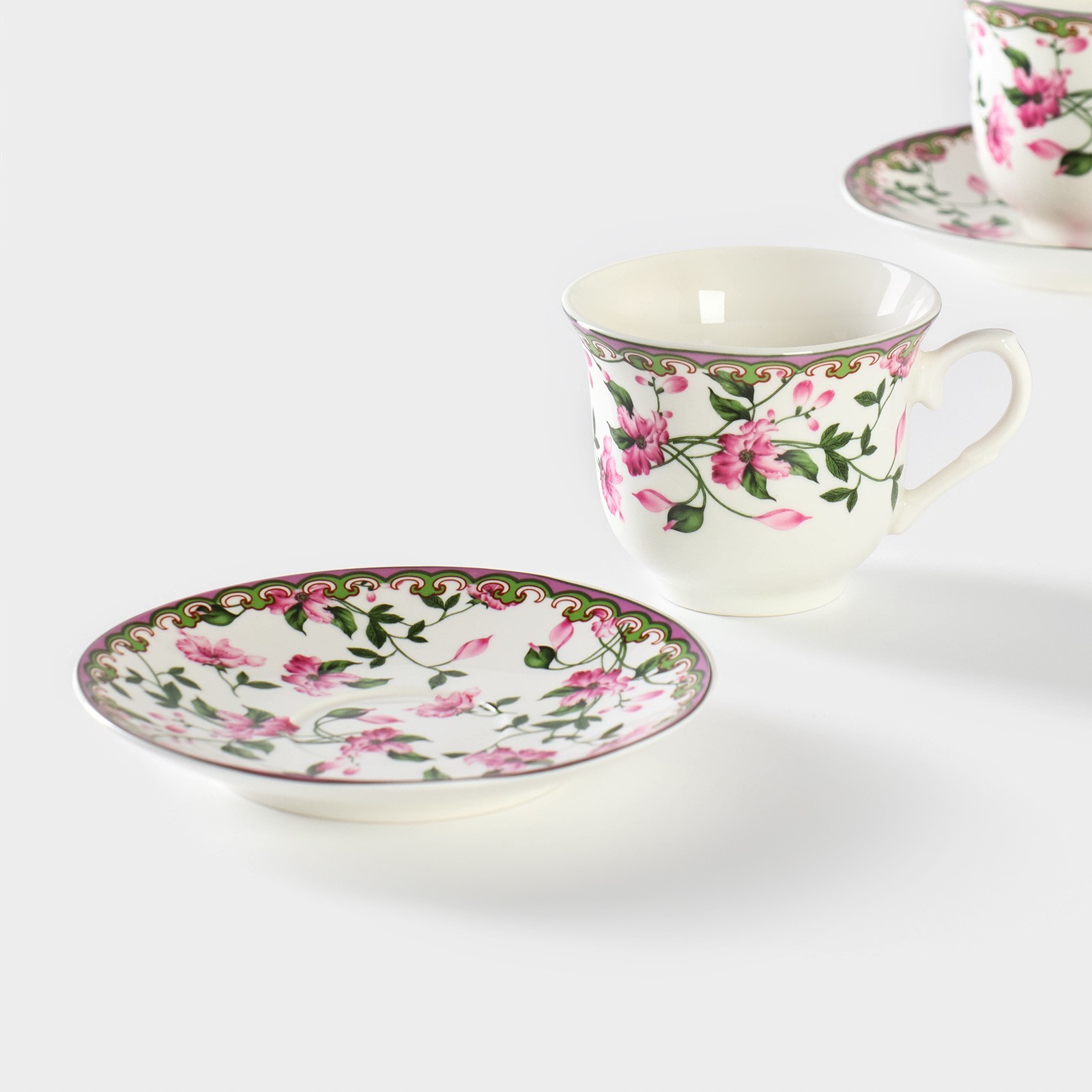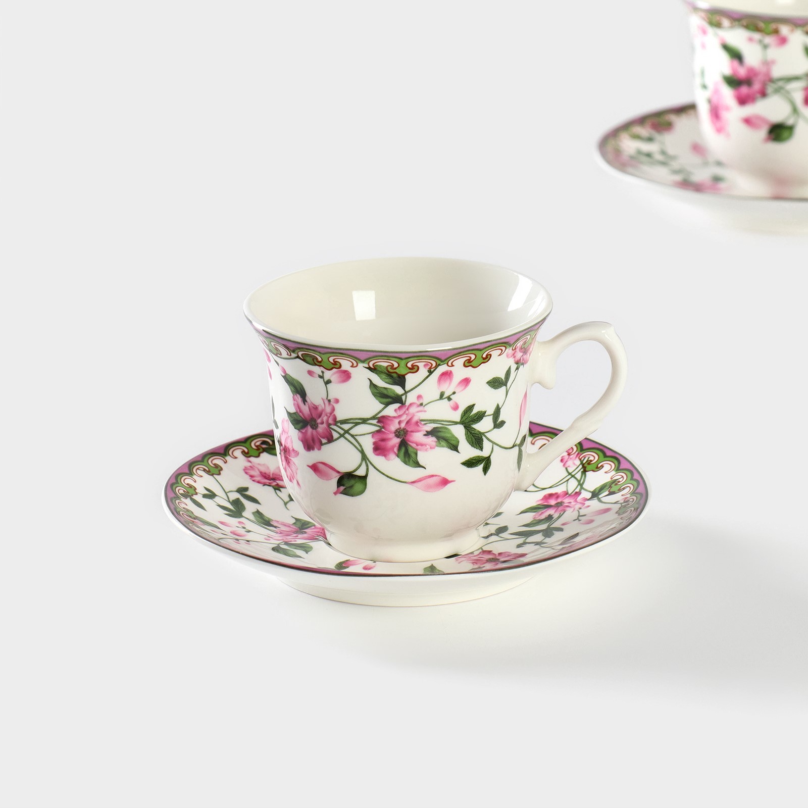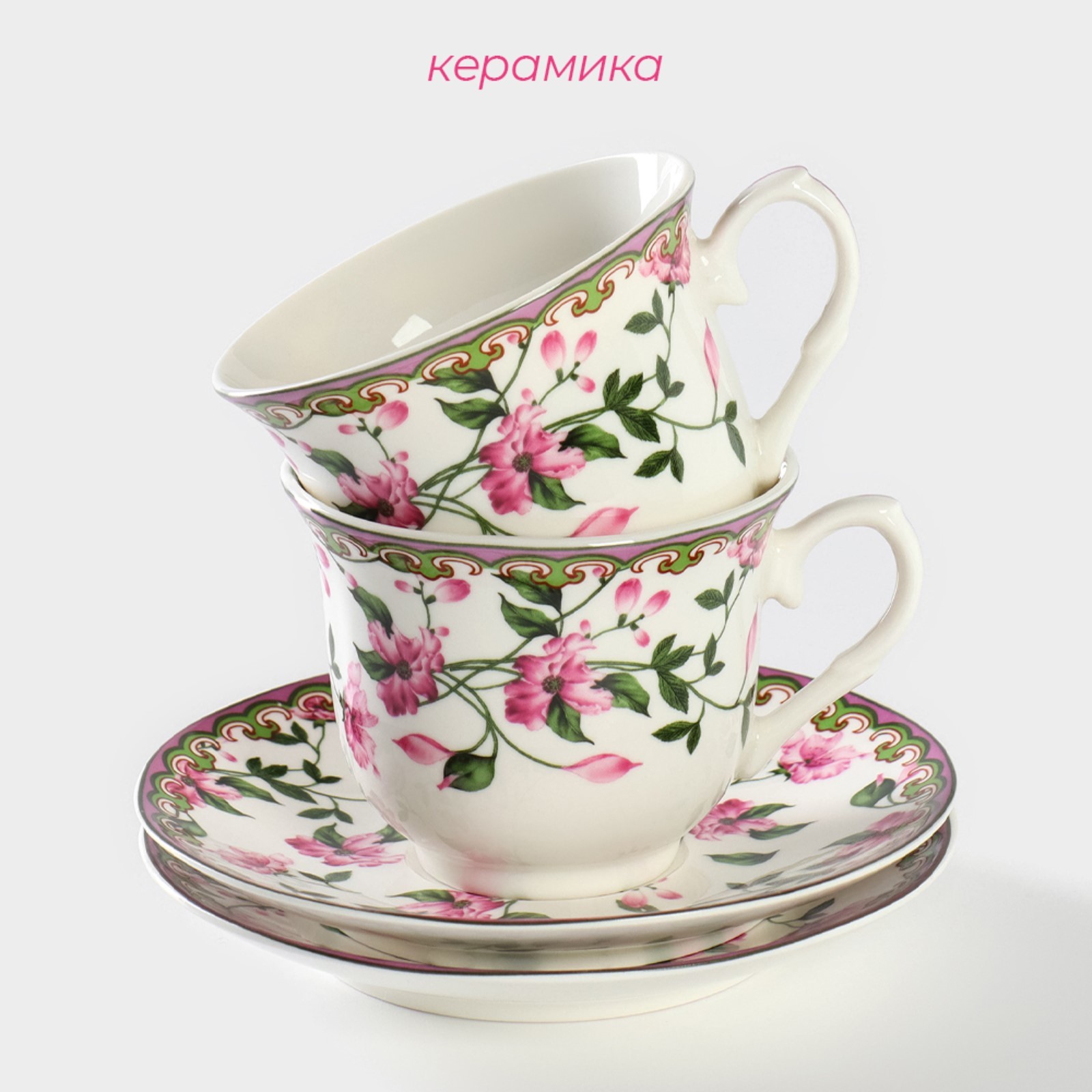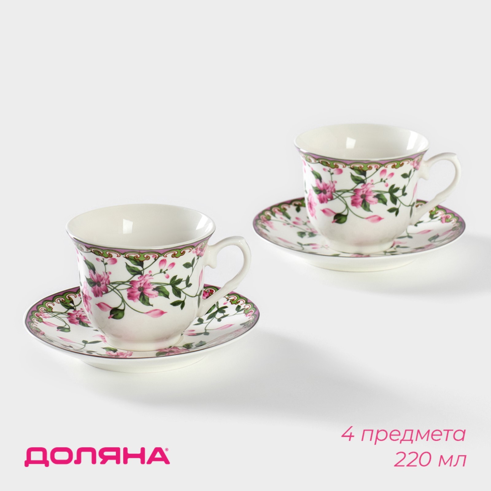 Сервиз фарфоровый чайный доляна «бланко», 4 предмета: 2 чашки 220 мл, 2 блюдца D=14,2 см, цвет белый