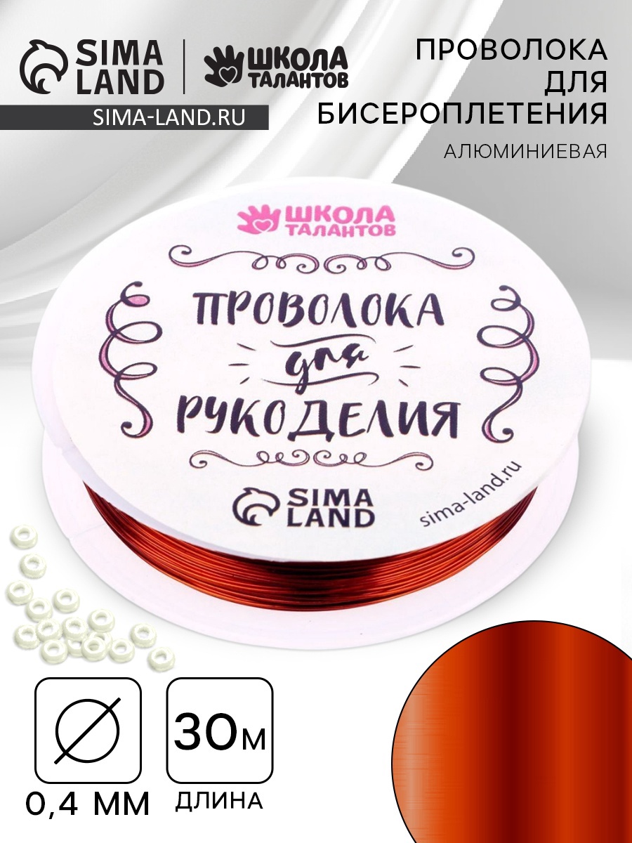 Проволока для творчества и бисероплетения, D=0.4 мм, 30 м, медный