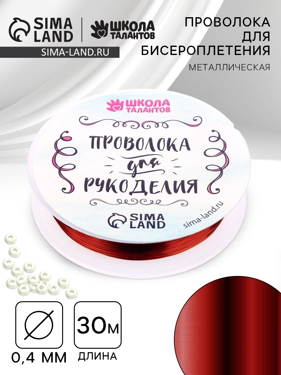 Проволока для творчества и бисероплетения, D=0.4 мм, 30 м, красный
