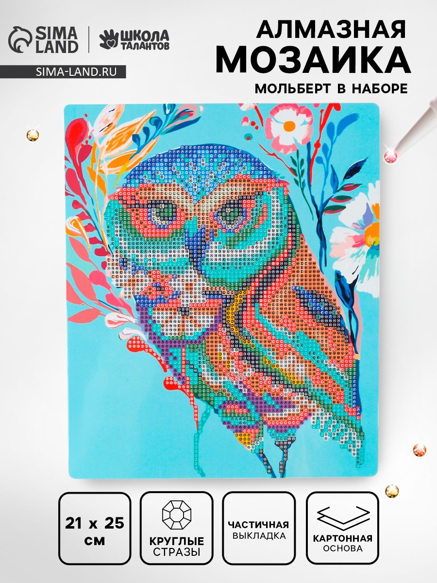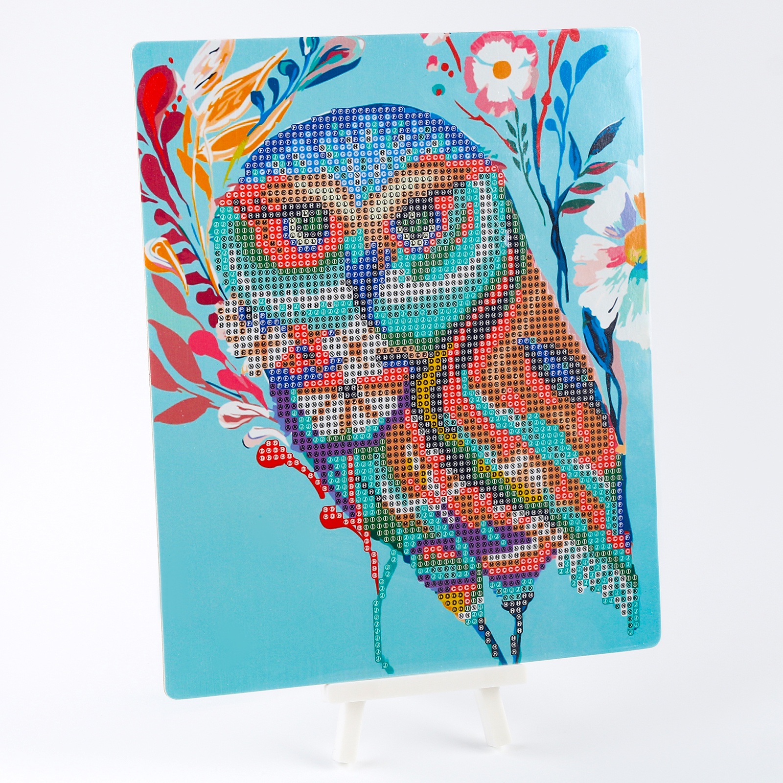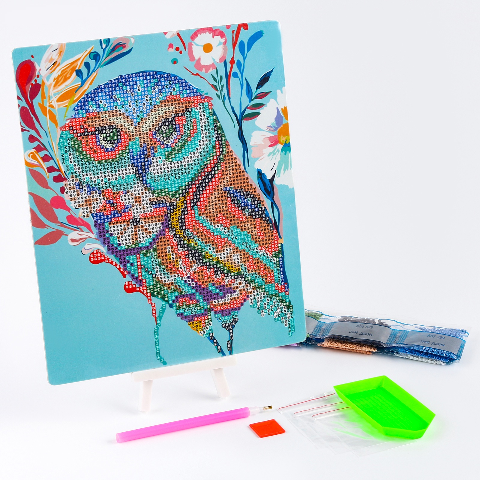 Алмазная вышивка «сова-красавица», с подставкой, с частичным заполнением