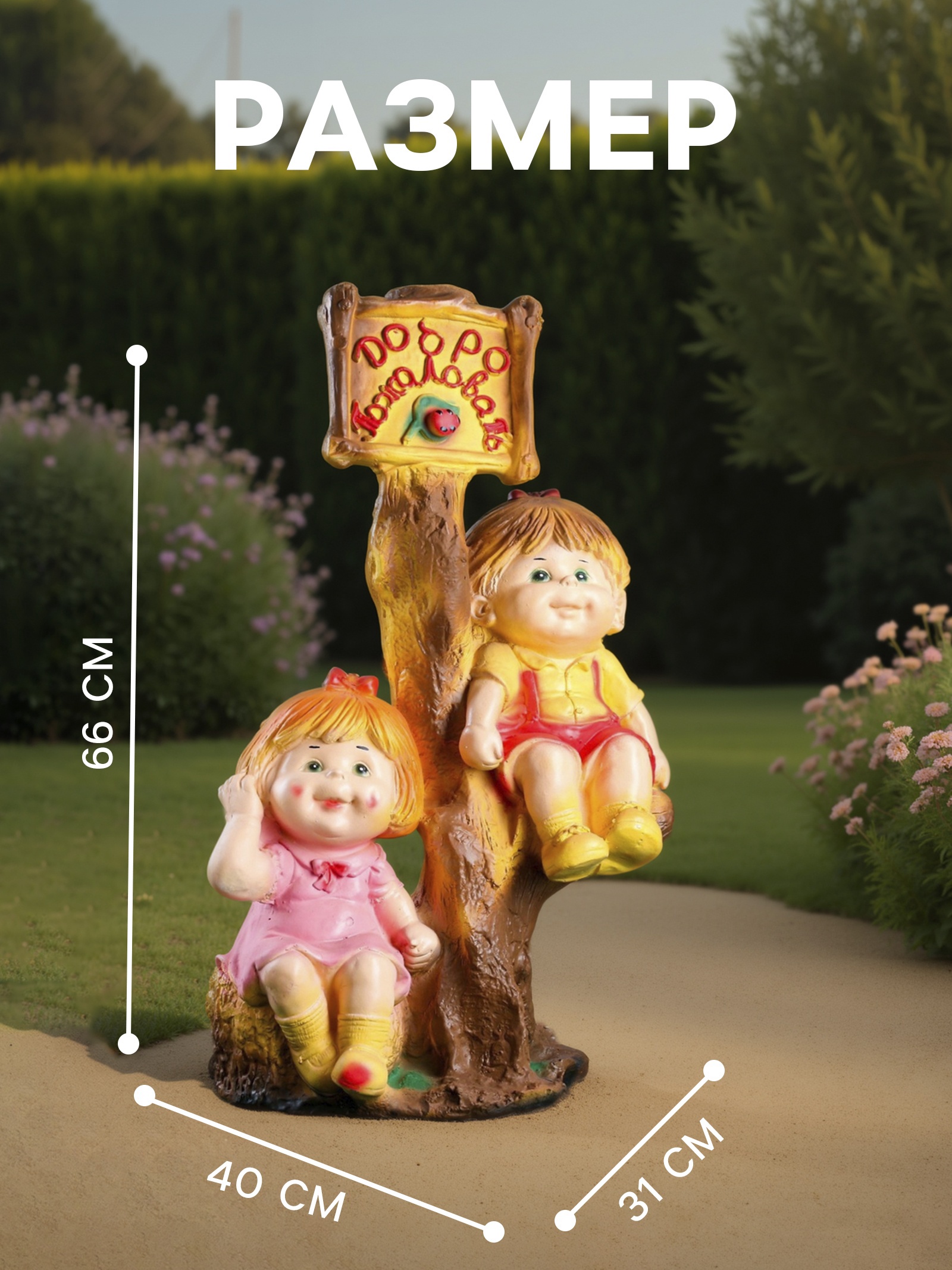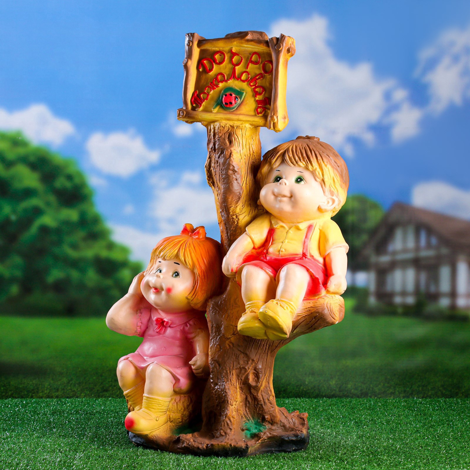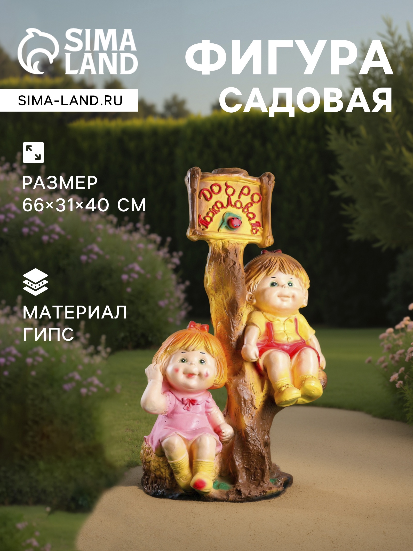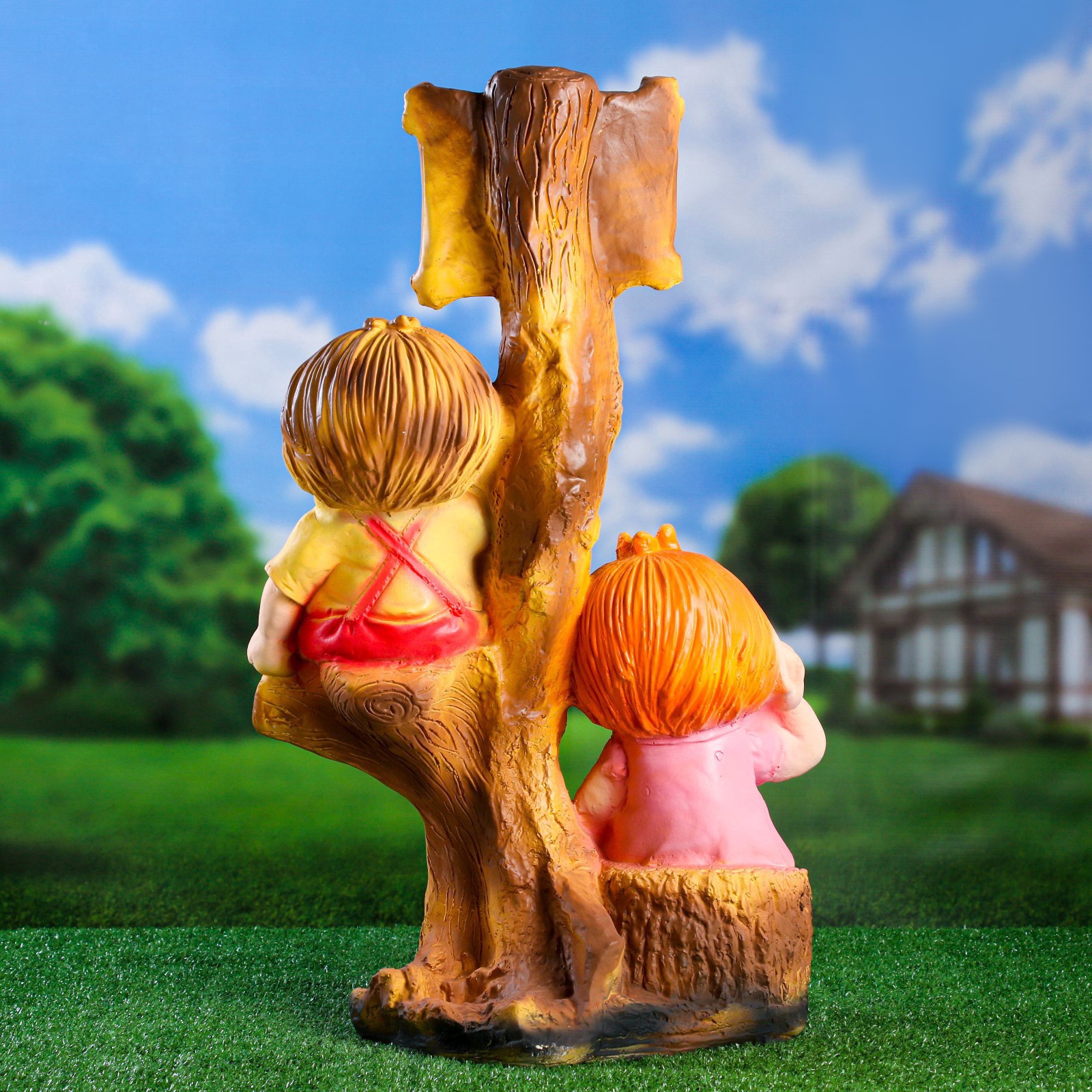 Садовая фигура из гипса «мальчик и девочка на дереве», 66 31 40 см, микс. Садовая фигура — это всегда стильное и яркое решение для ландшафтного декора, который добавит уюта и индивидуальности дачному участку, саду, огороду или клумбе. С ее помощью можно оформить вход на участок, разграничить пространство, разметить дорожку, создать тематическую атмосферу и превратить сад в единую композицию (узнать, как это сделать, можно в статье 5 причин использовать садовые фигуры на даче). Чтобы украшение радовало вас дольше, рекомендуем следовать Инструкции по уходу за садовыми фигурами. Цвет:МИКС|Высота, см:66|Материал:Гипс|Одноцветный:Нет|Можно оставлять зимой на улице:Нет|Страна:Россия  развернуть описание ▼
