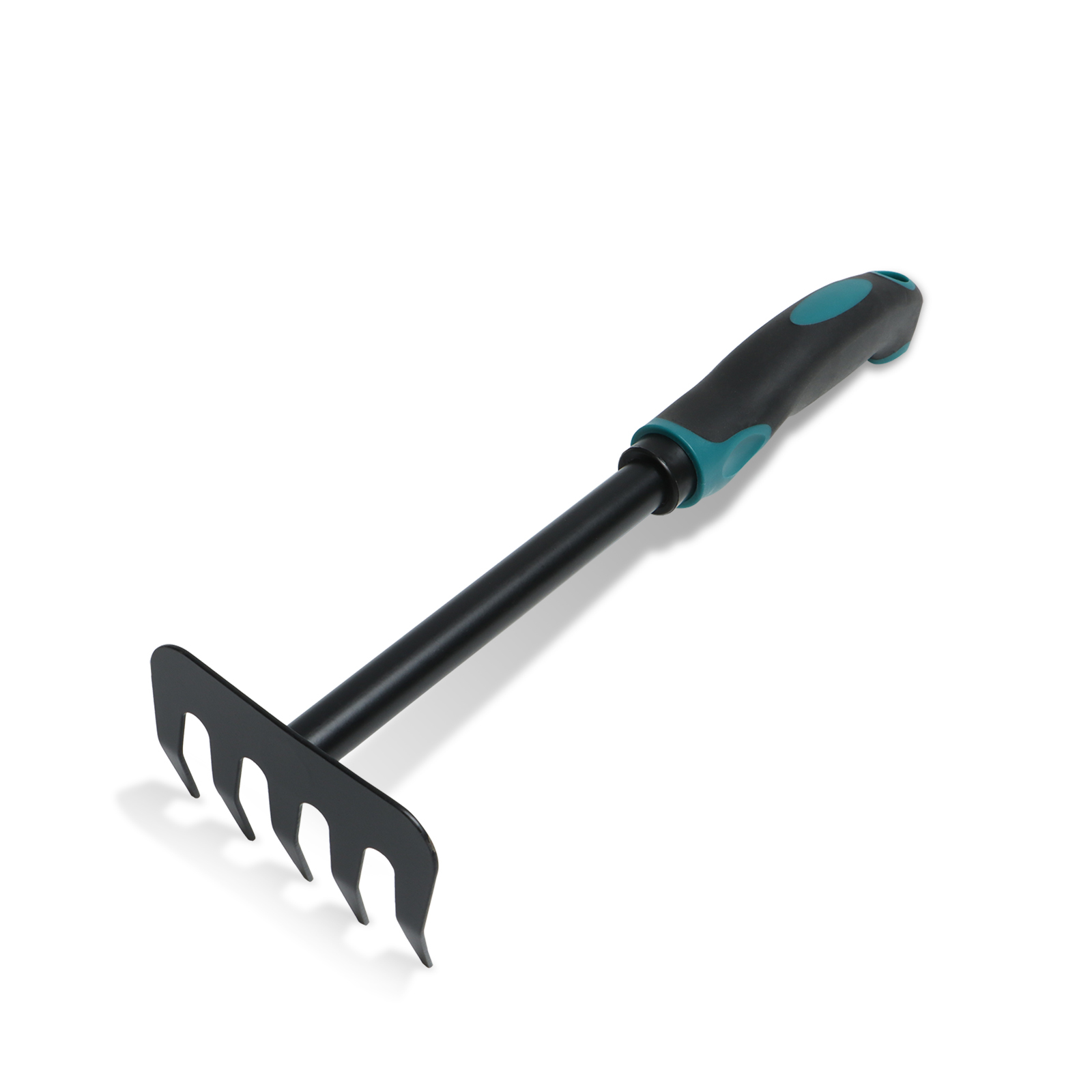 Грабли малые, прямые, 5 зубцов, длина 28.5 см, металл, эргономичная прорезиненная ручка, Greengo