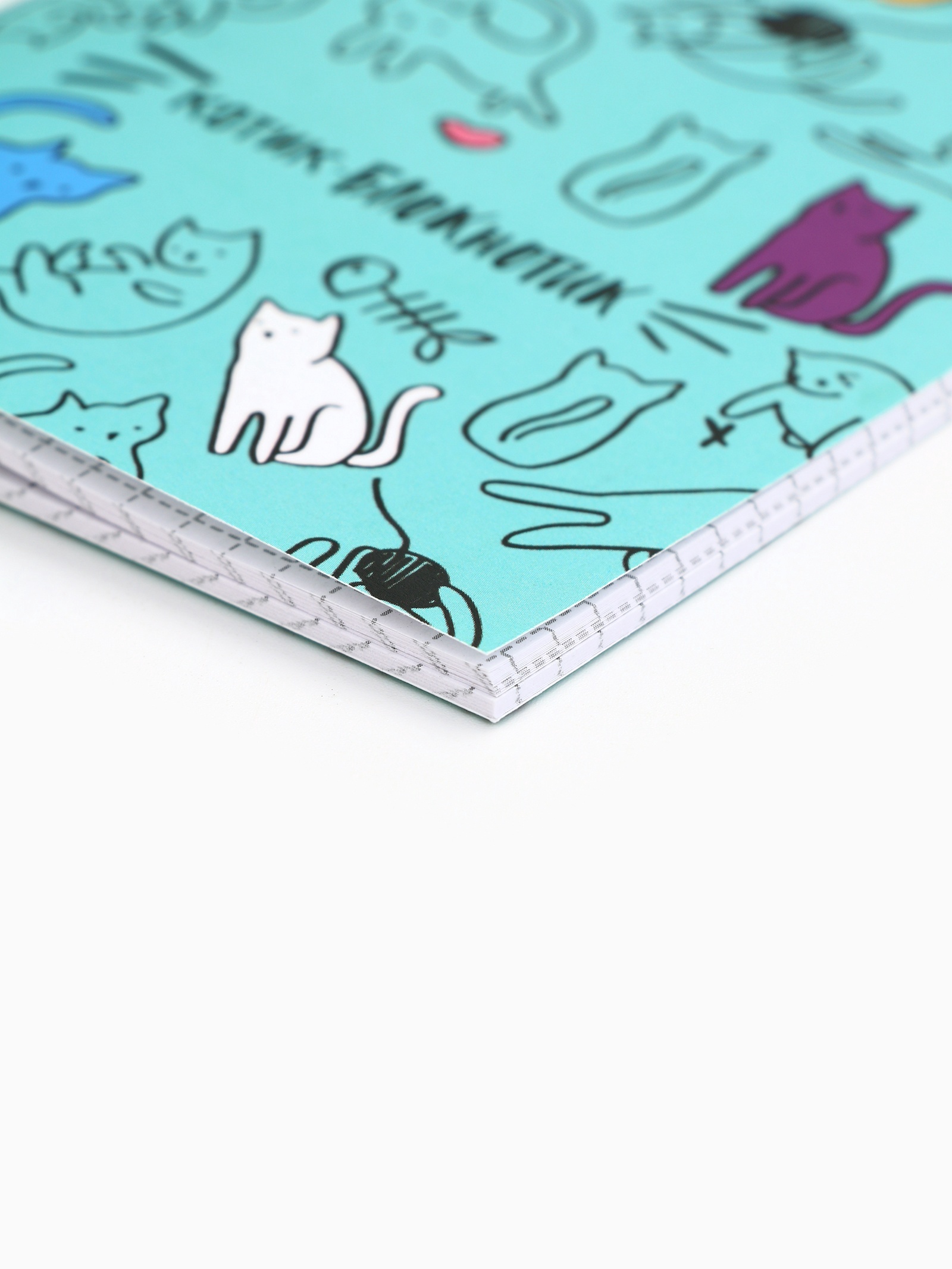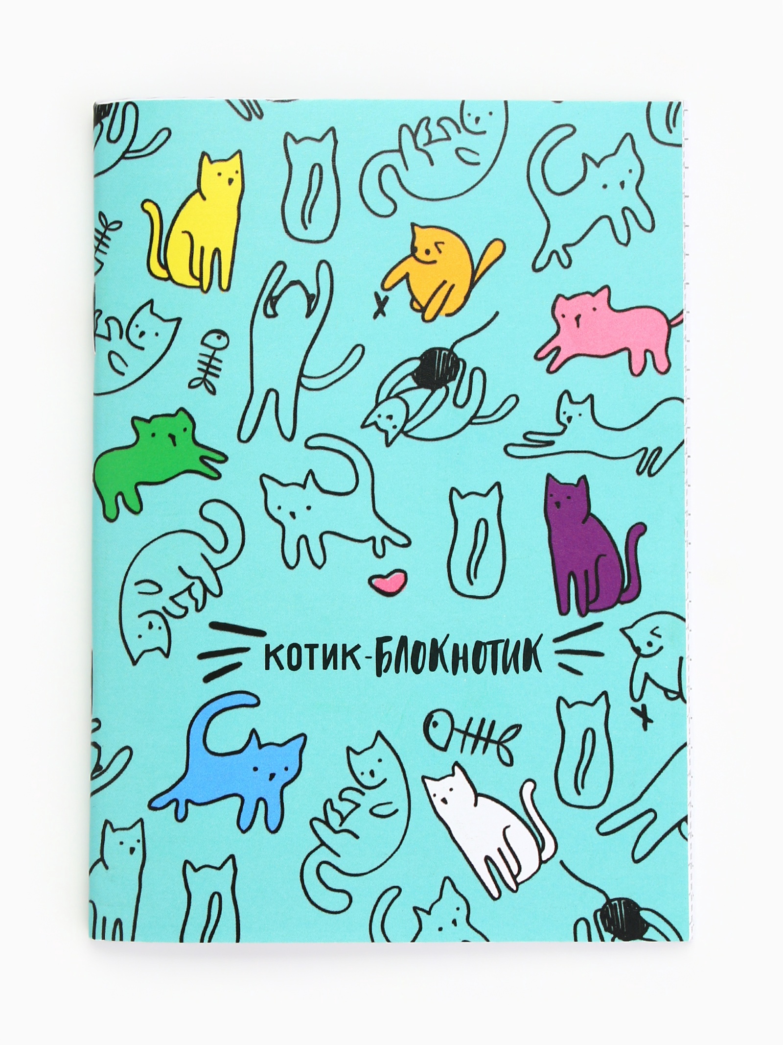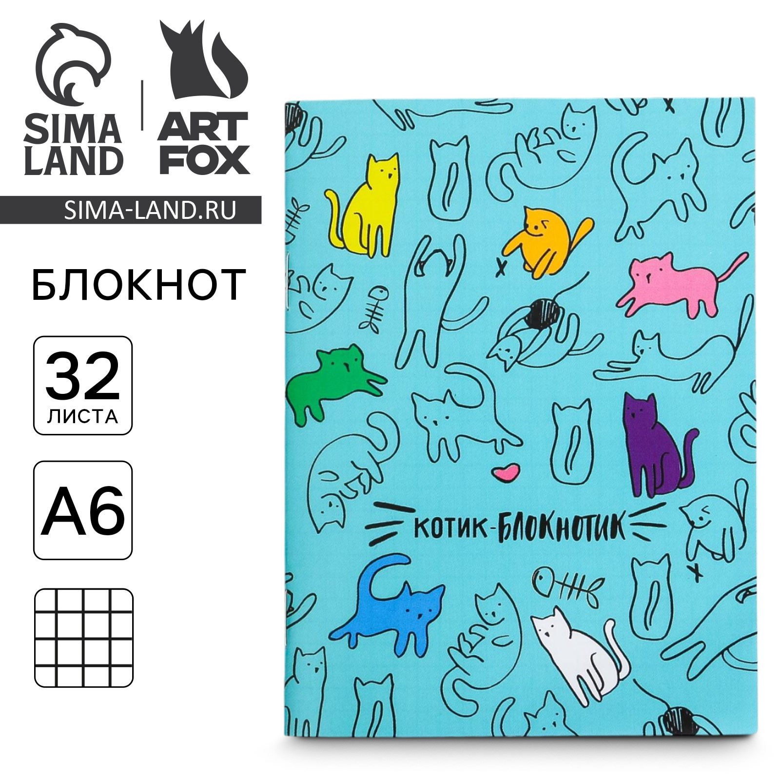 Блокнот а6, 32 л на скрепке, в клетку «котик-блокнотик»