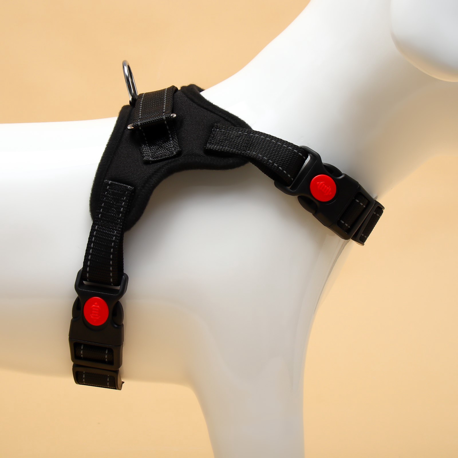 Шлейка к7 мягкая светоотражающая, размер S, ог 44-55 см, вес 5-9 кг, чёрная