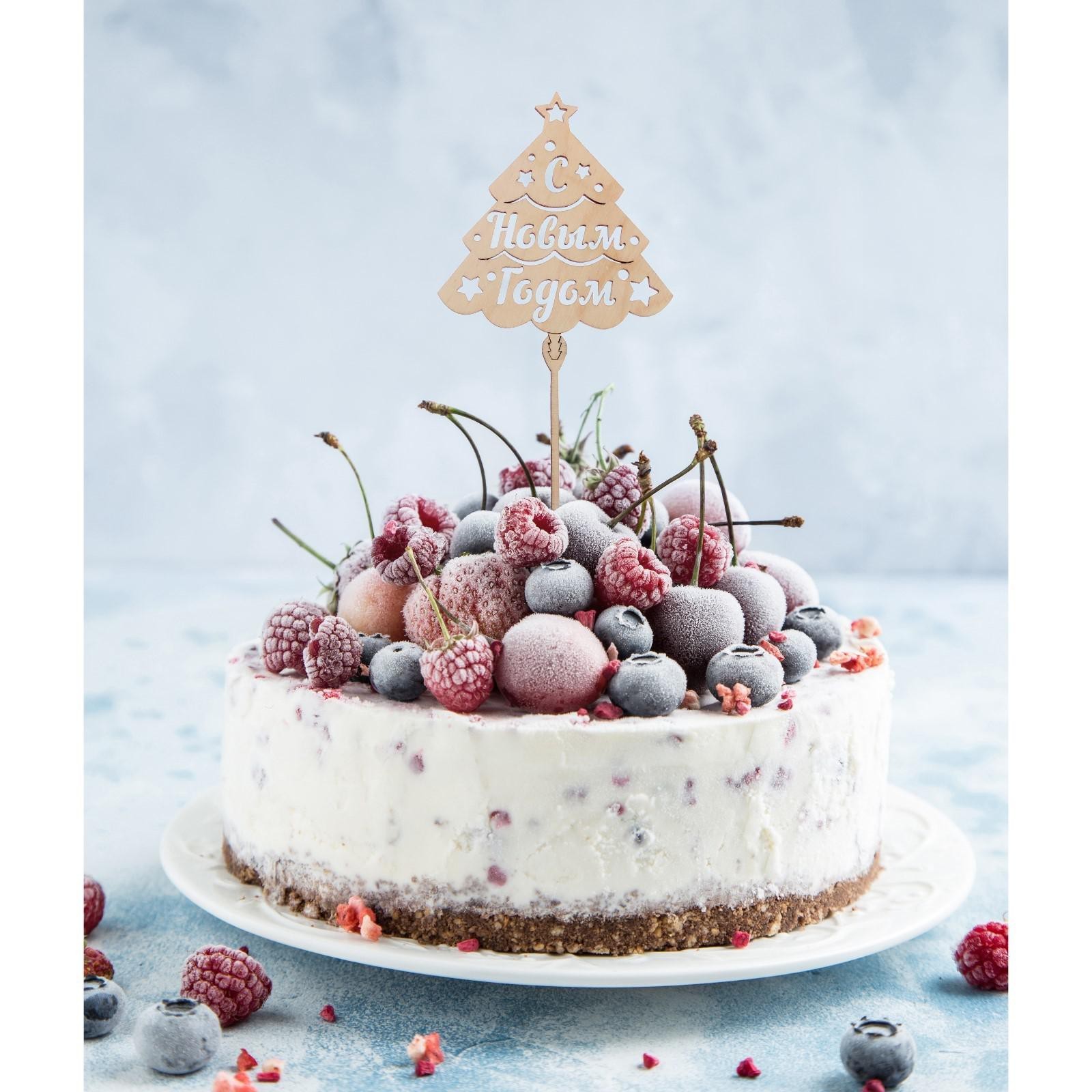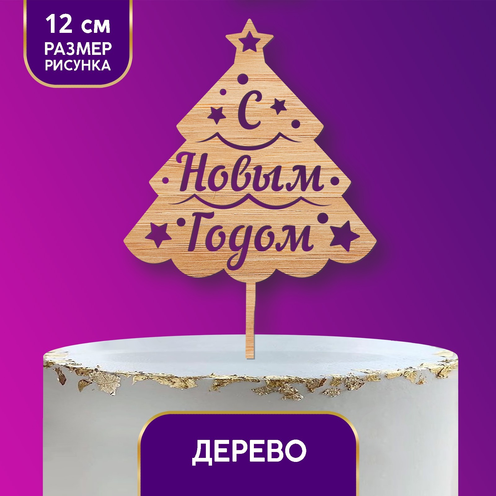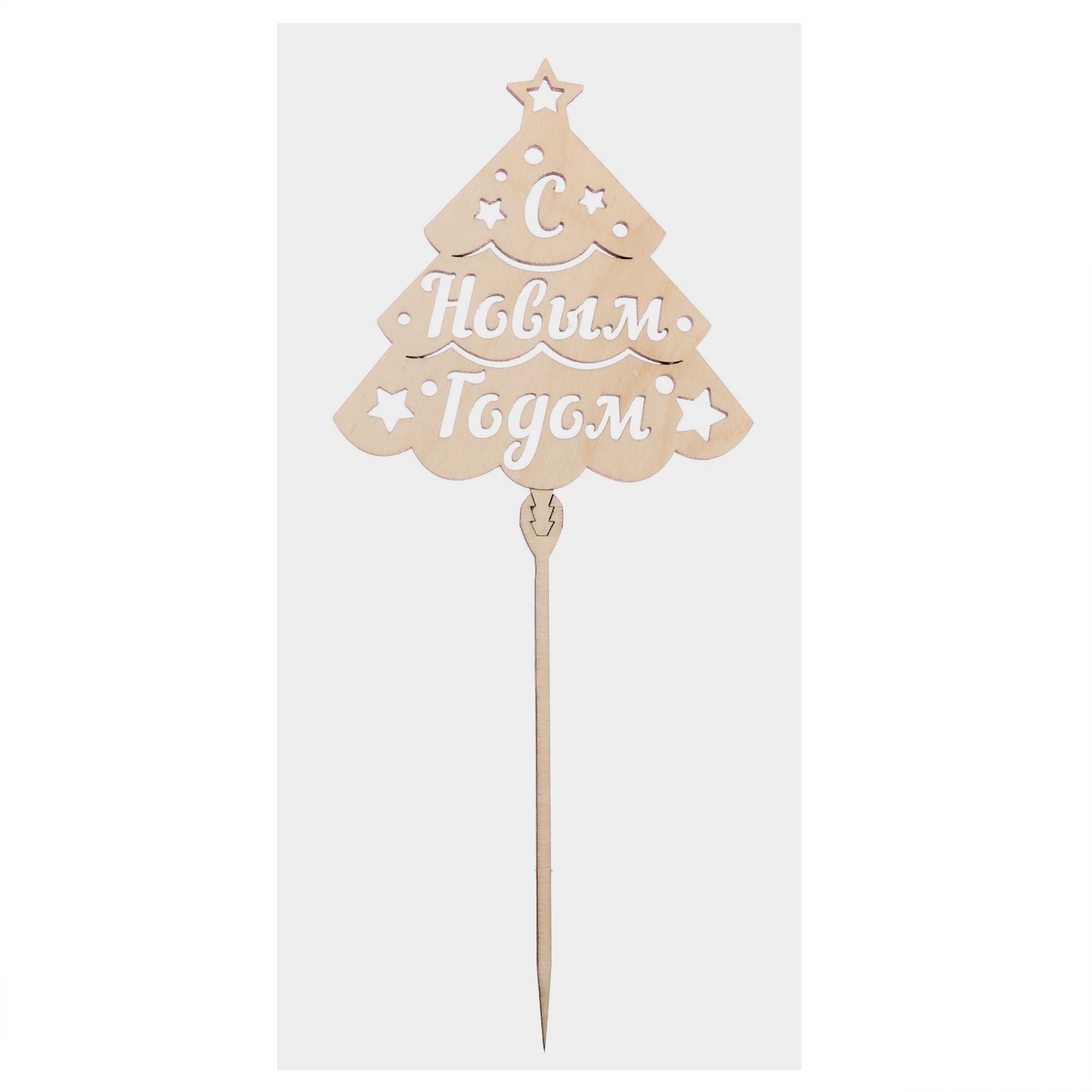 Новогодний деревянный топпер для торта «с новым годом», ёлка, 115х120