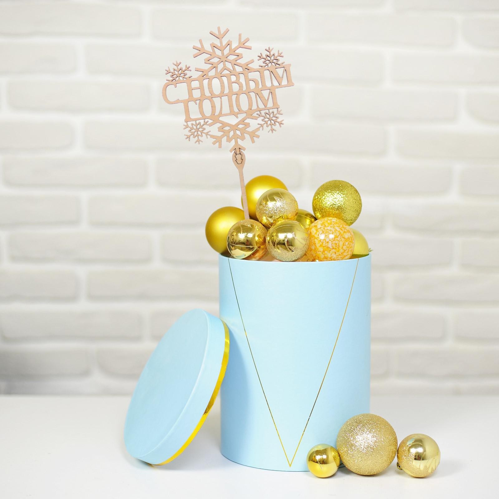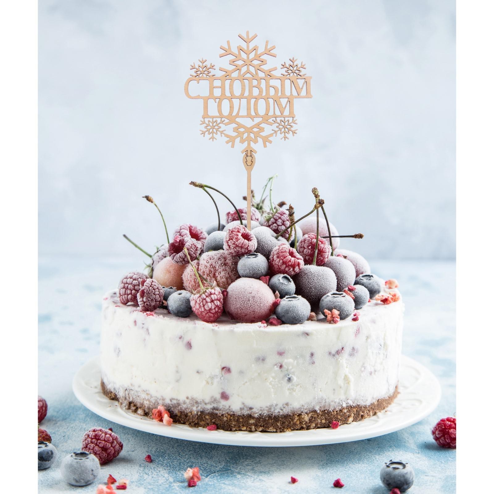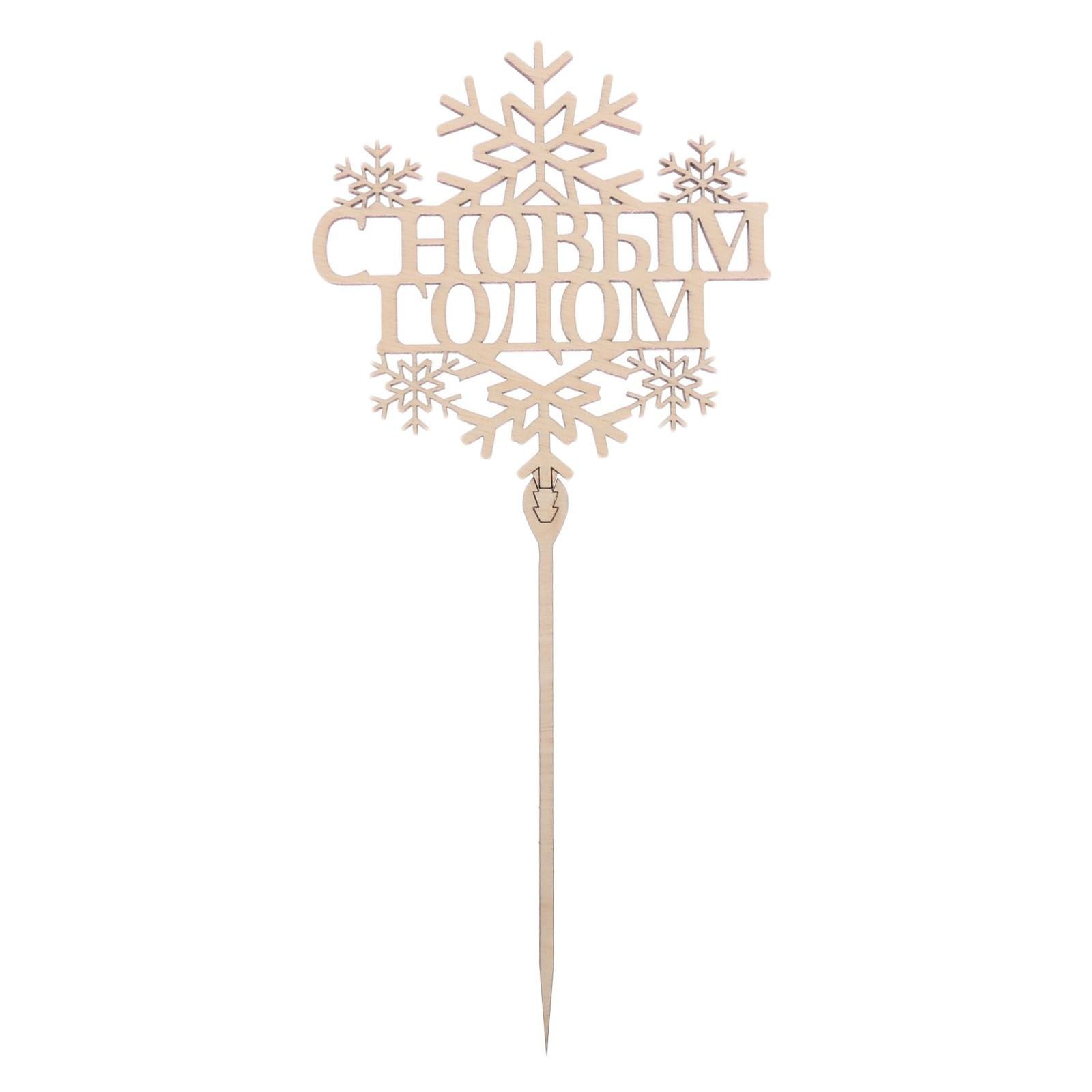 Новогодний деревянный топпер для торта «с новым годом», снежинки, 120х118