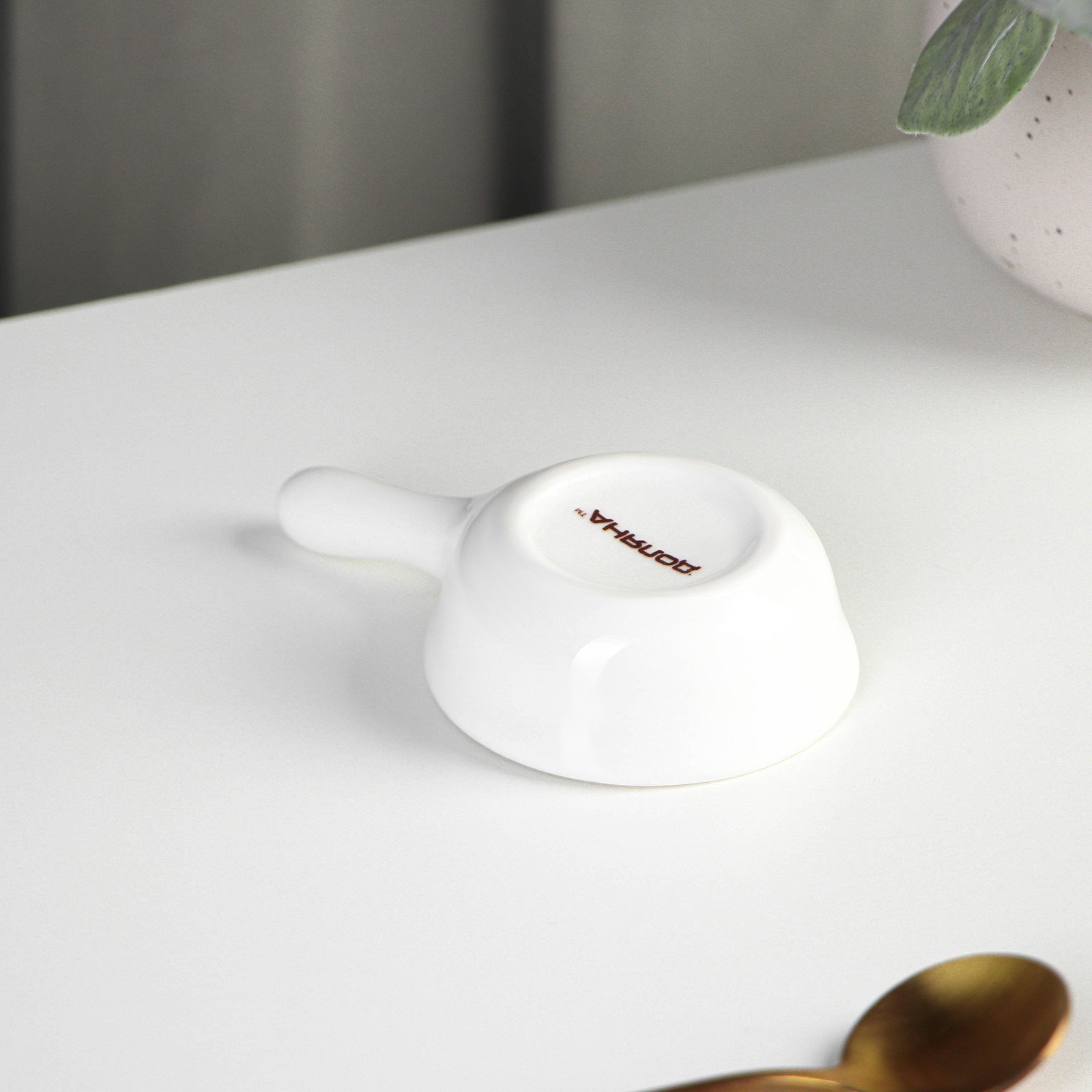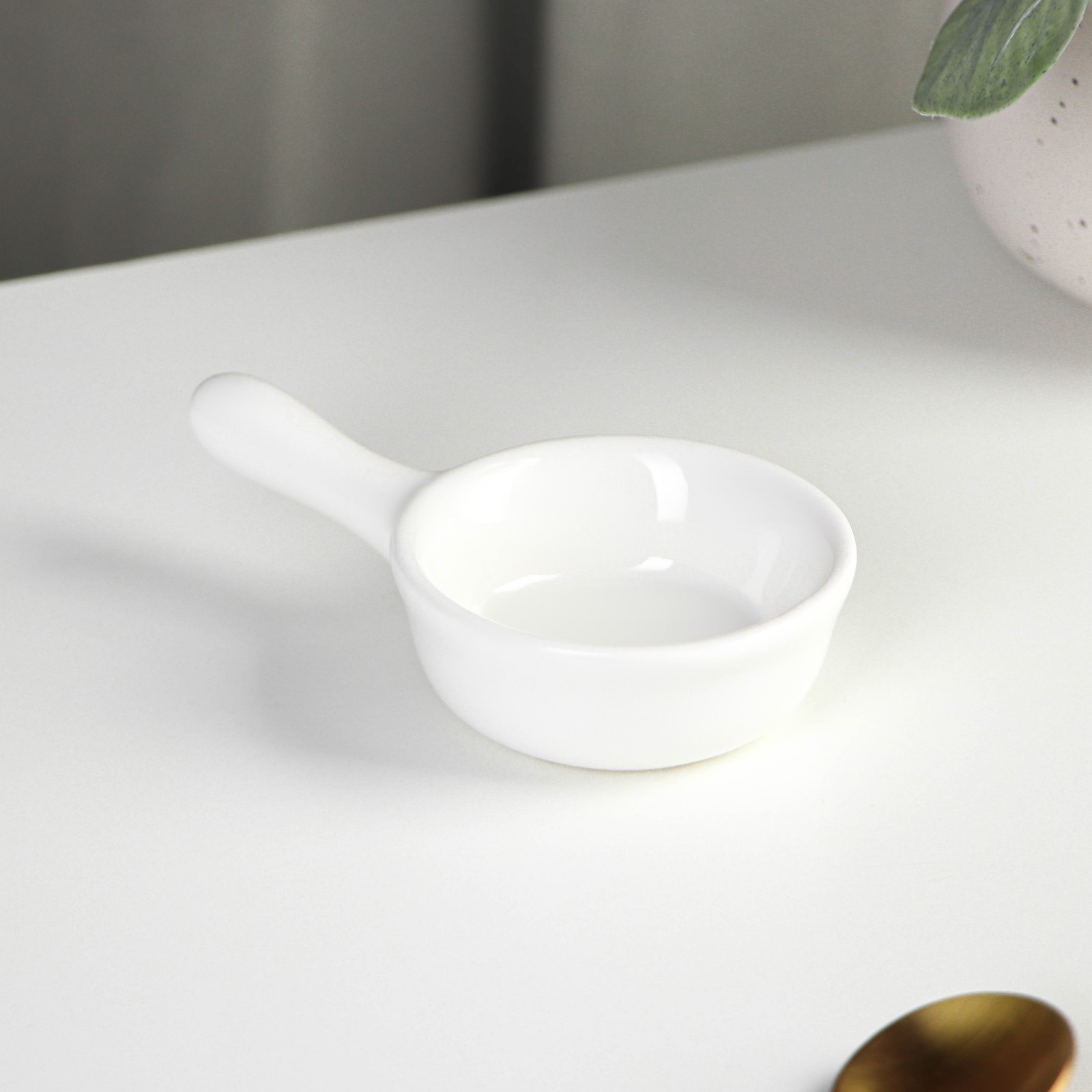 Соусник керамический с ручкой доляна «классика», 30 мл, 10x6 см, цвет белый
