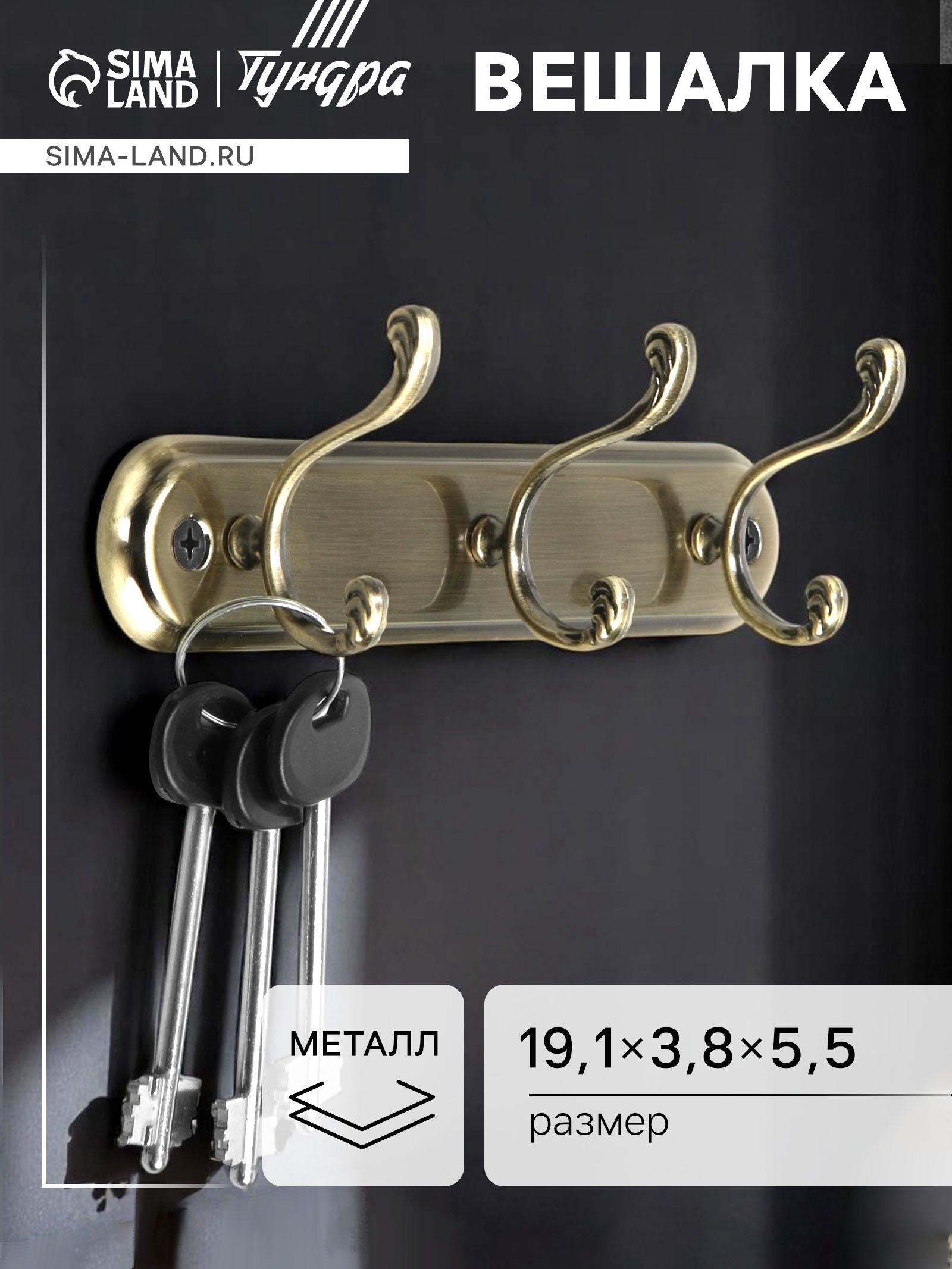 Вешалка тундра Tvt003, металлическая, трёхрожковая, цвет бронза
