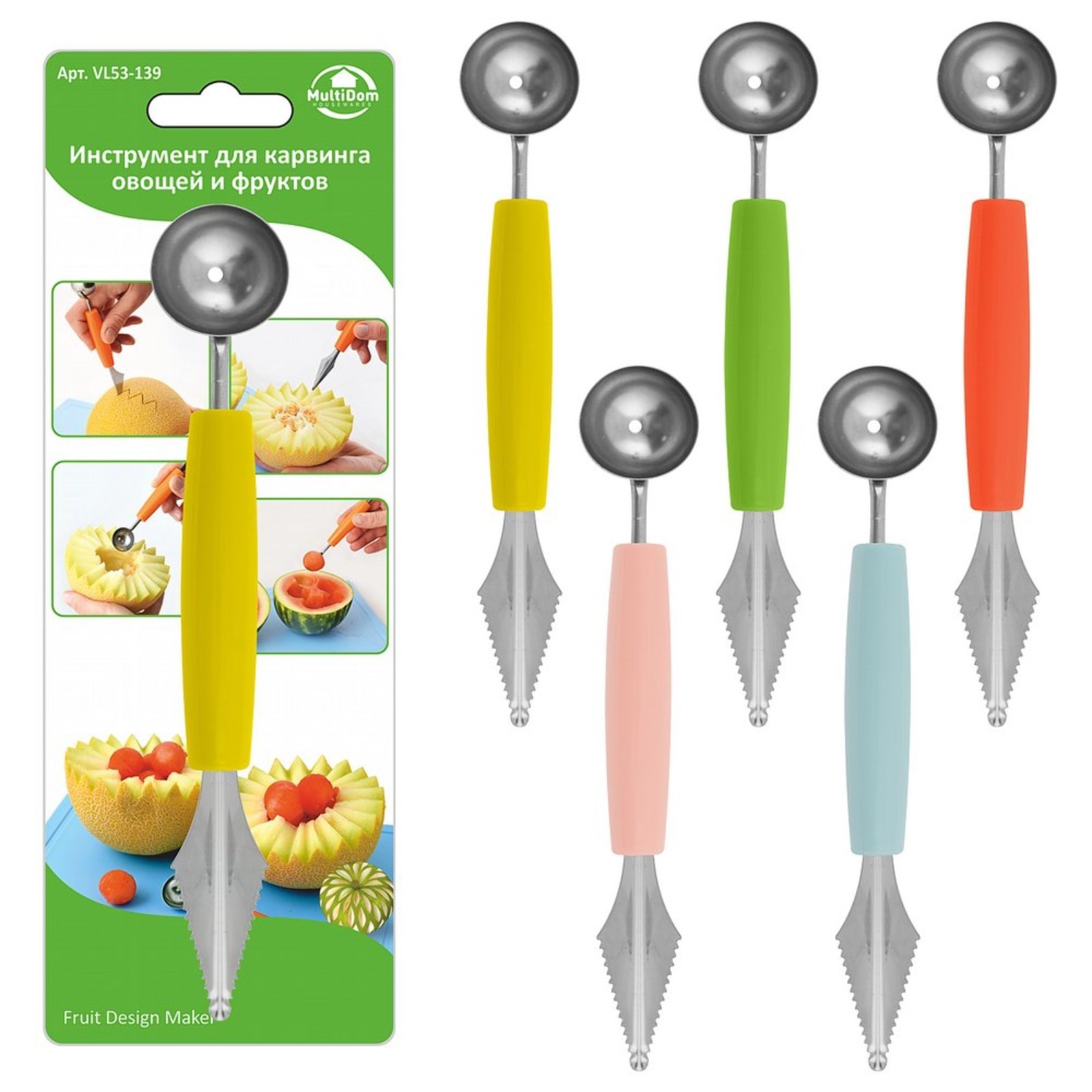 Инструмент для карвинга необходим для тех, кто хочет декорировать овощи и фрукты, превращая их в настоящие шедевры! С помощью него Вы сможете декорировать овощи и фрукты, превращая ваш сервированный стол в настоящее искусство!