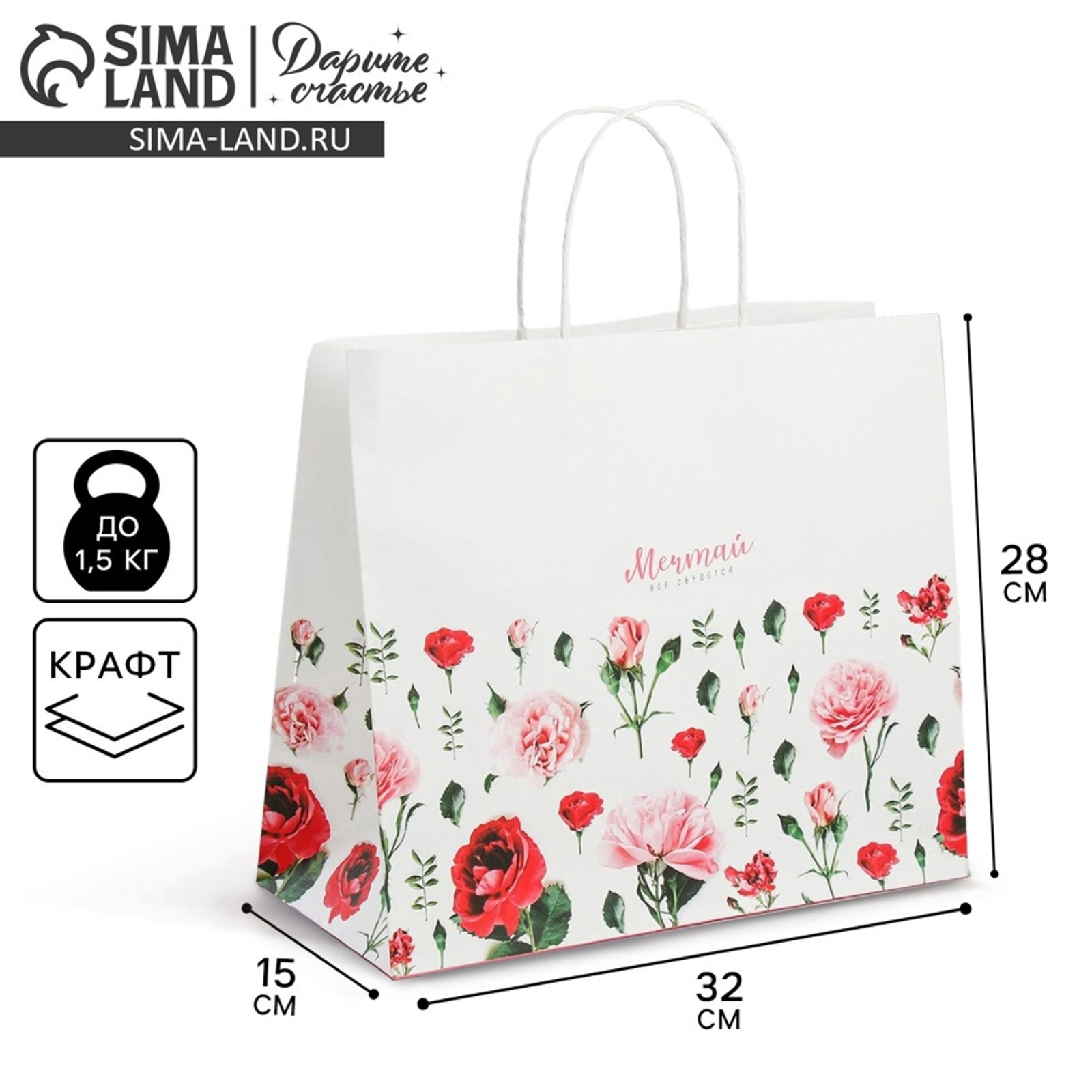Пакет подарочный крафт, упаковка, «мечтай», 32 х 28 х 15 см