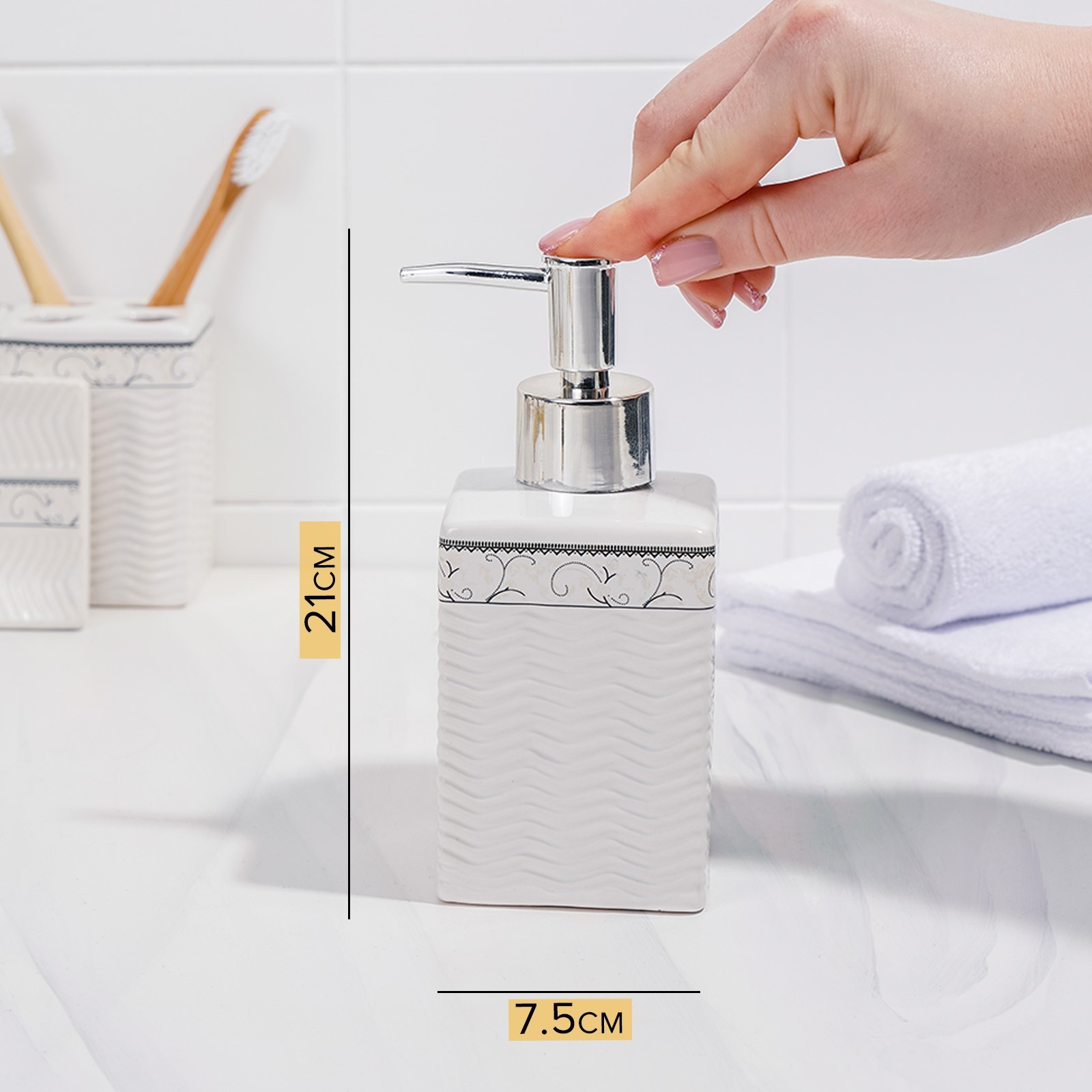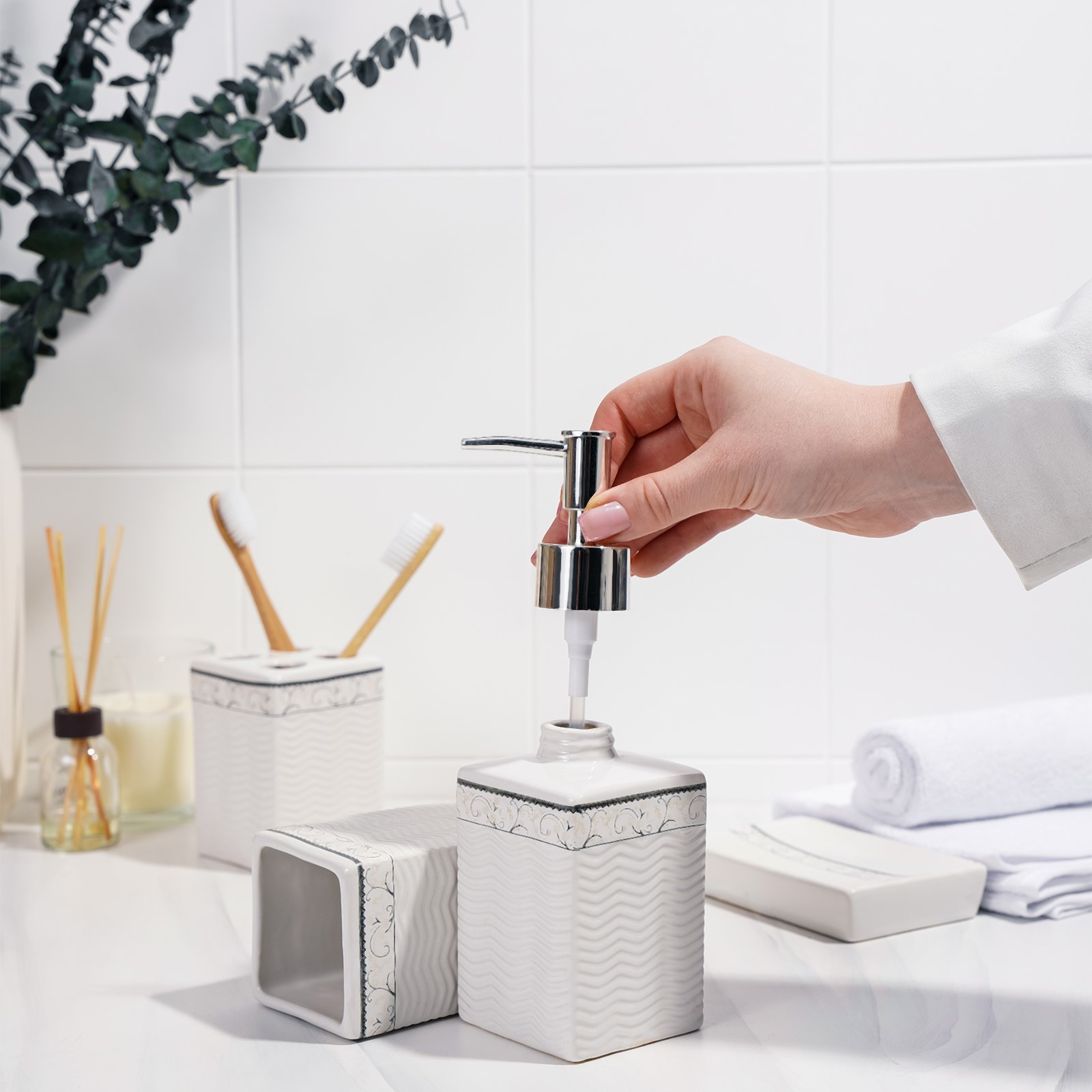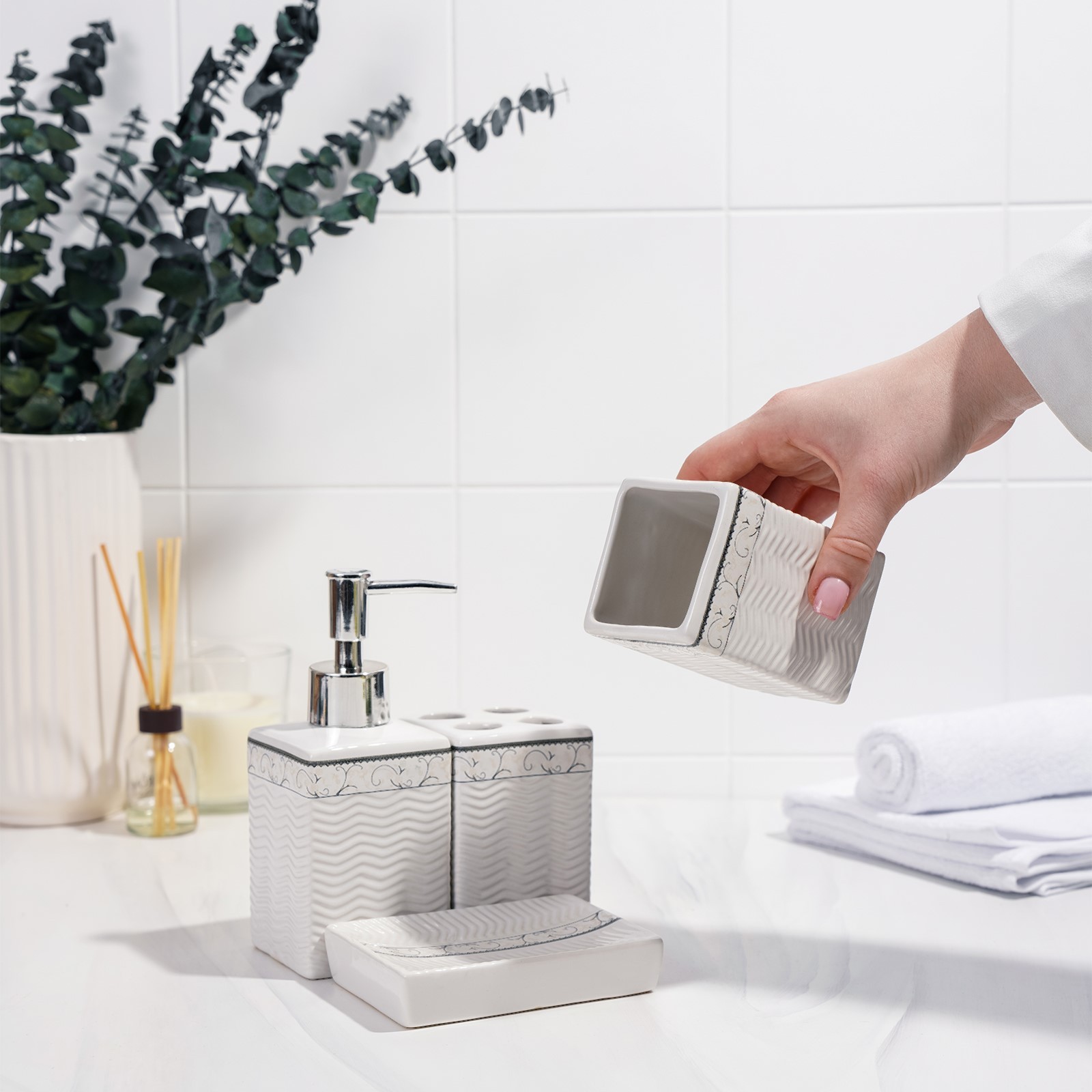Набор аксессуаров для ванной комнаты «завитки», 4 предмета (мыльница, дозатор для мыла, 2 стакана), цвет белый