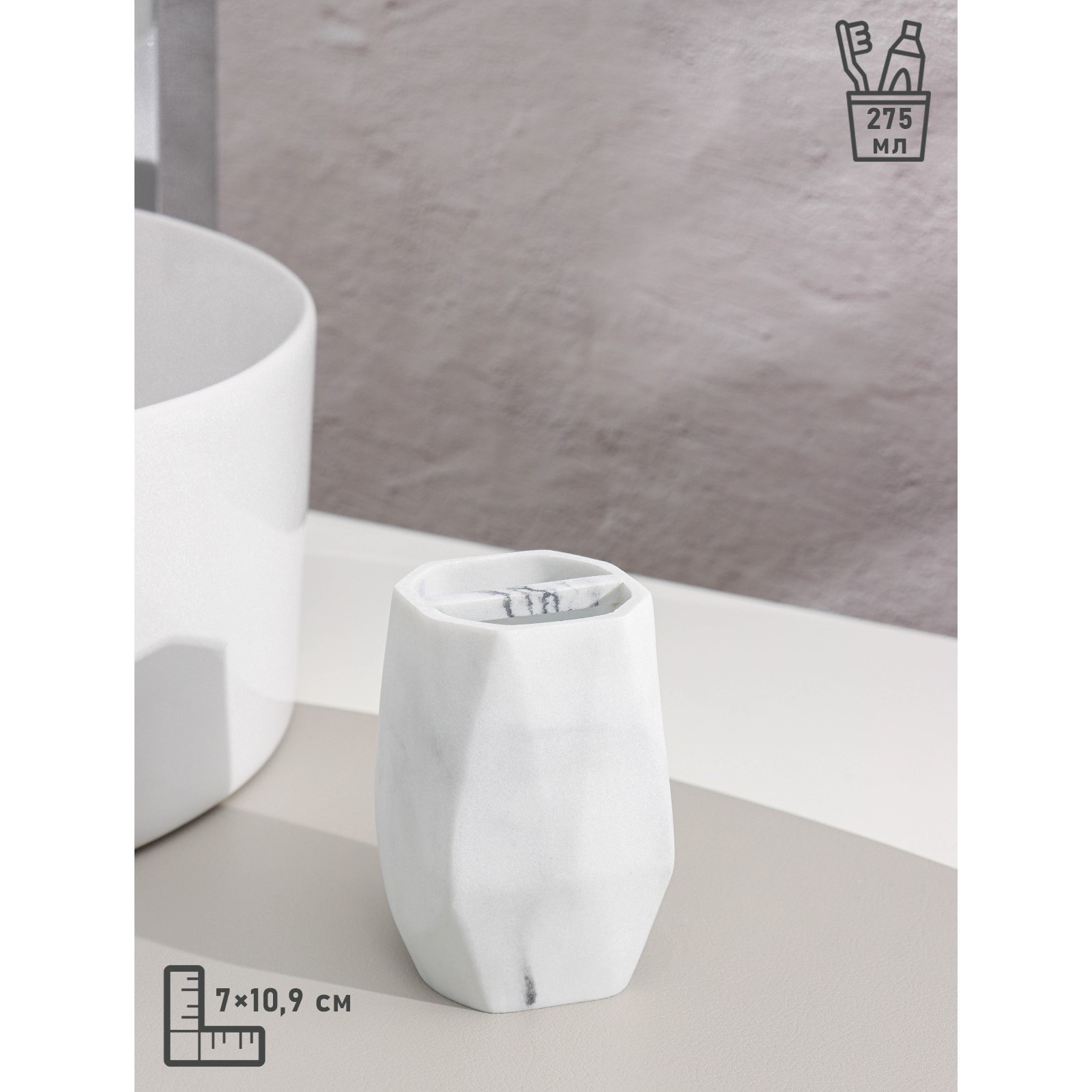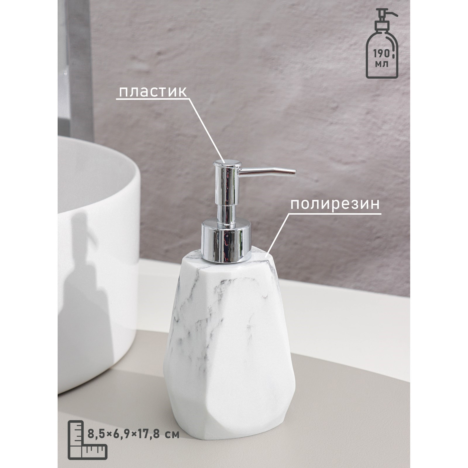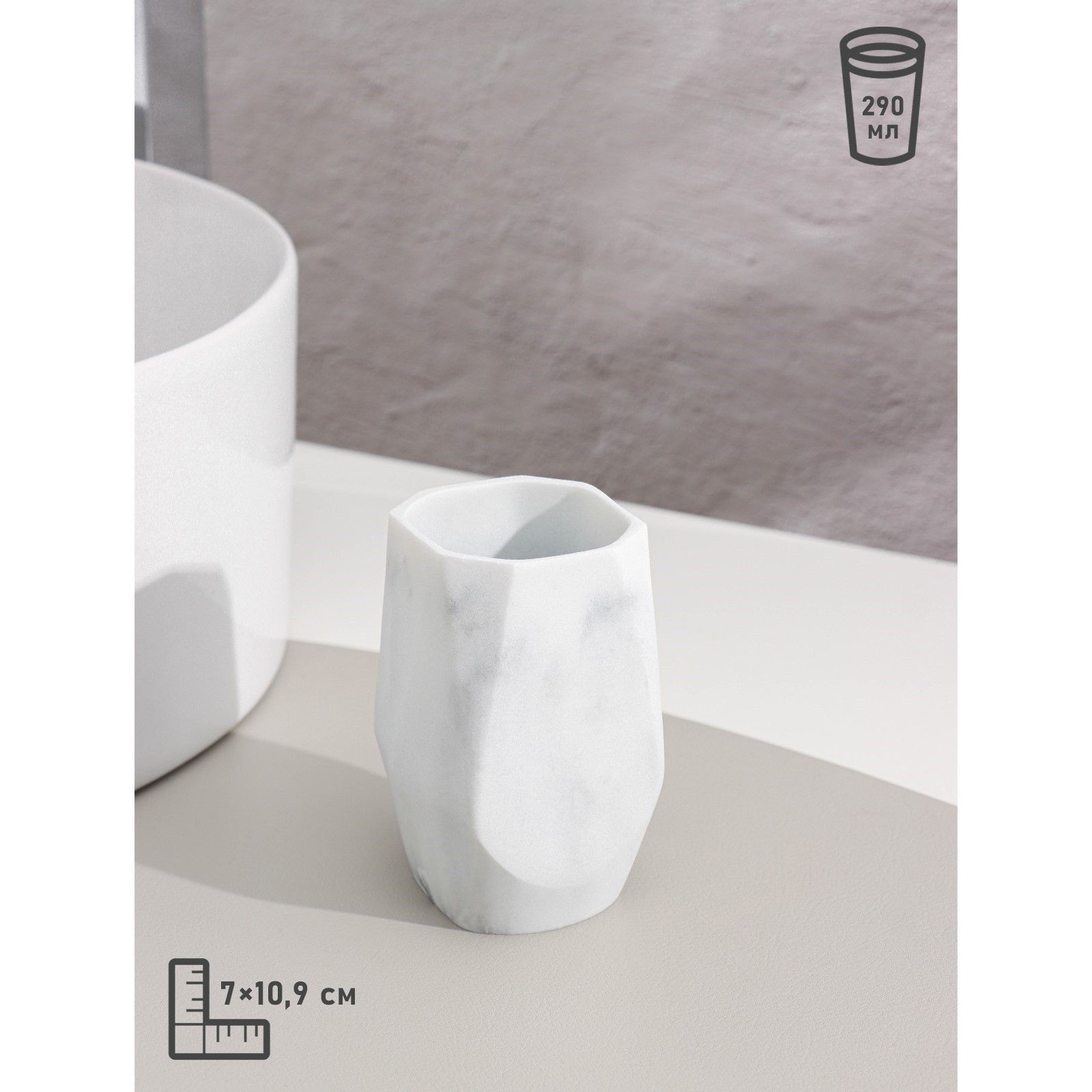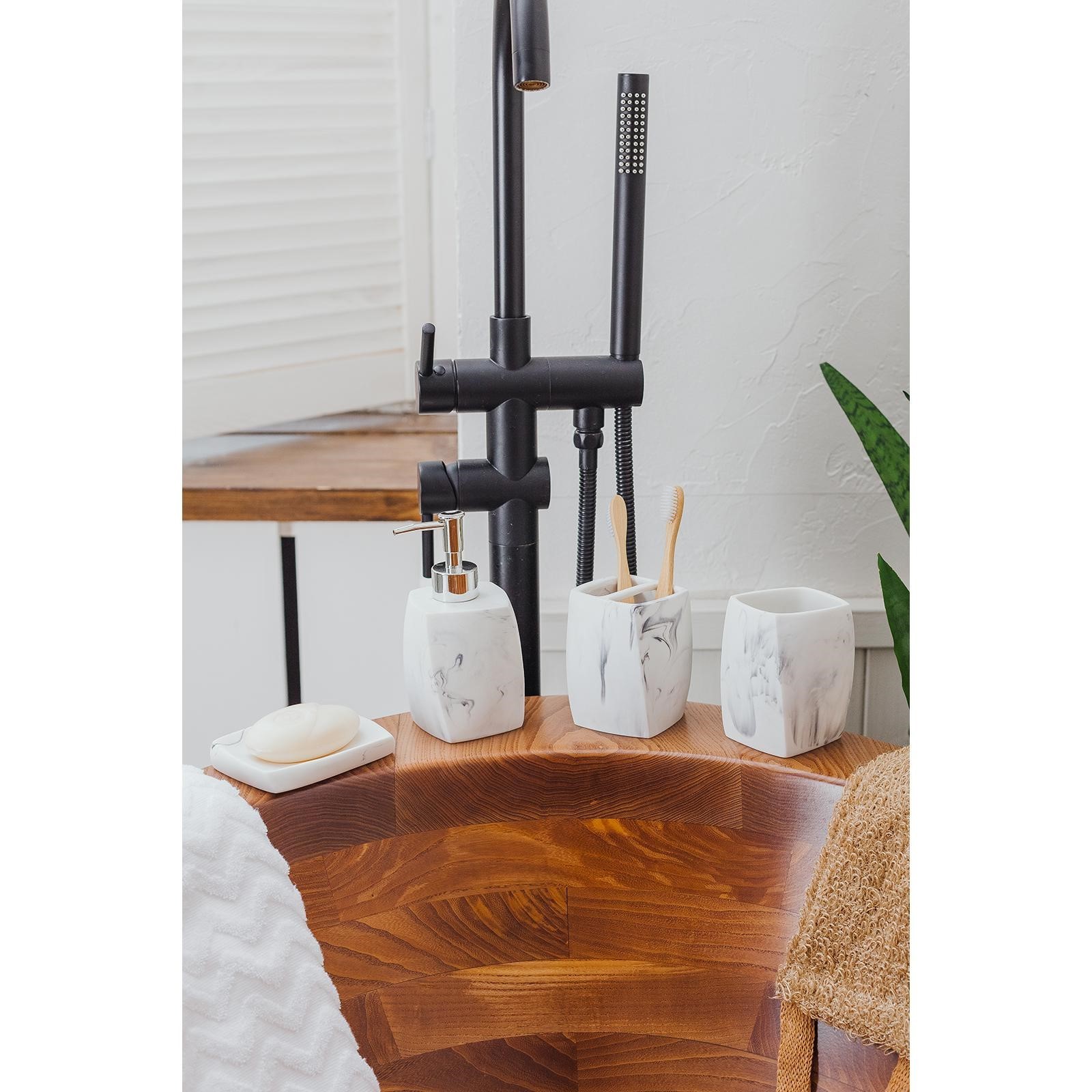 Набор аксессуаров для ванной комнаты «мрамор», 4 предмета (дозатор 190 мл, мыльница, 2 стакана 290 мл), цвет белый