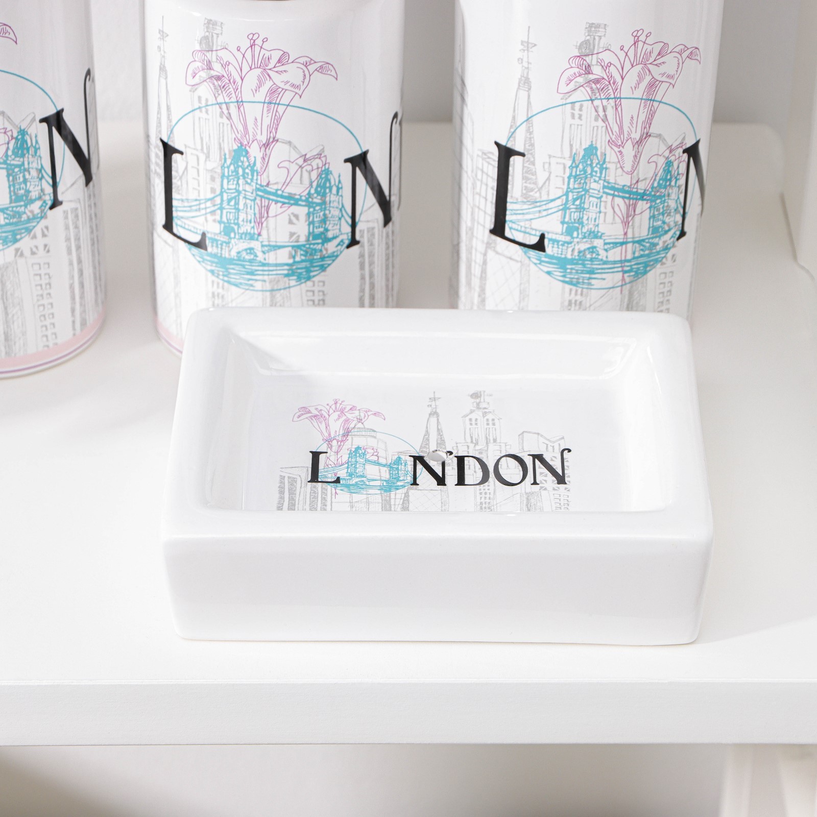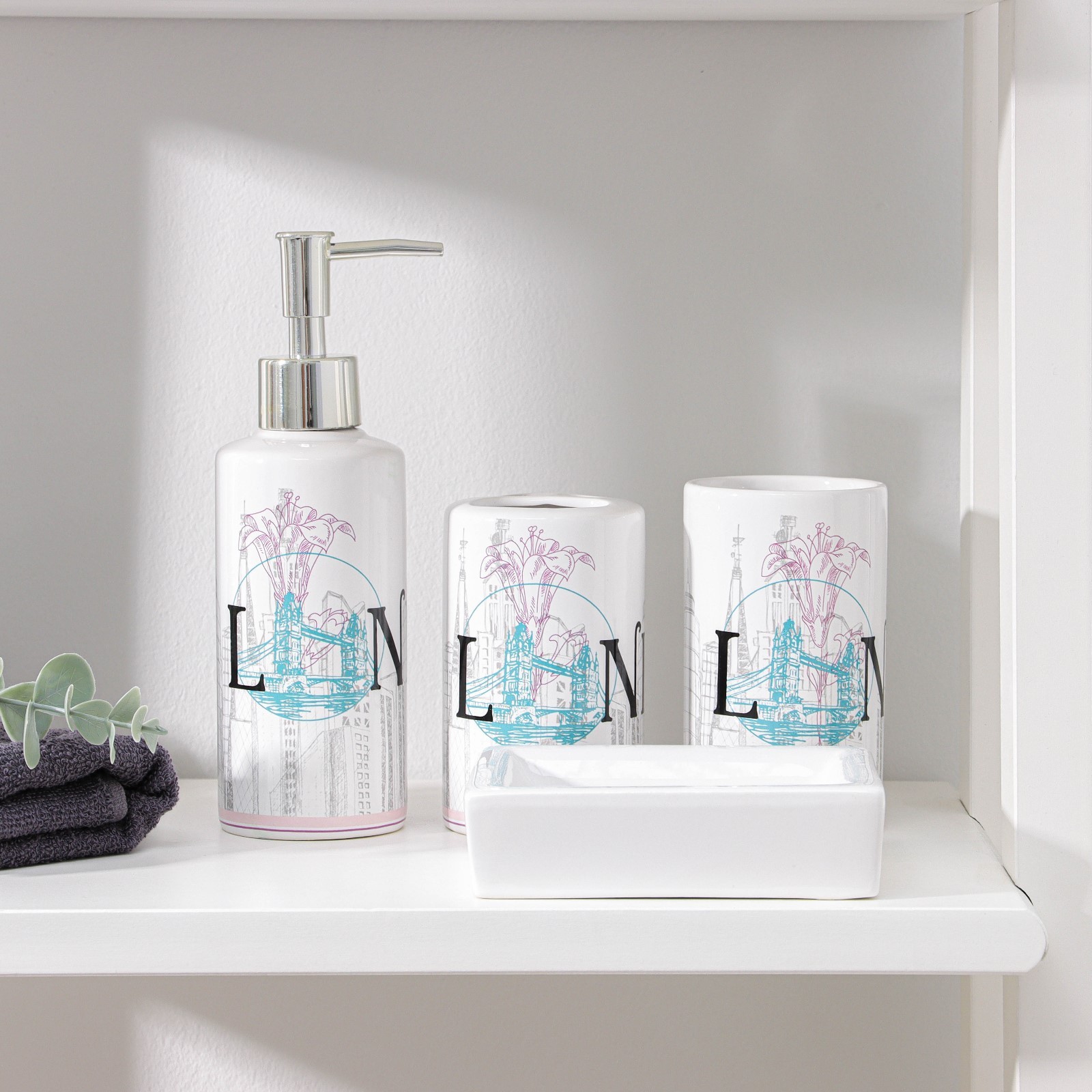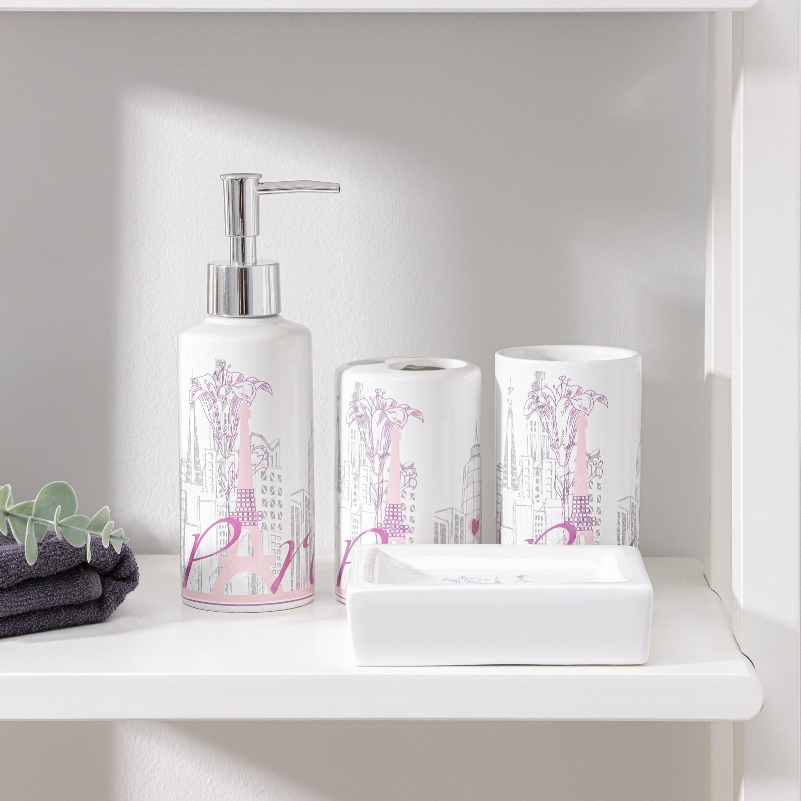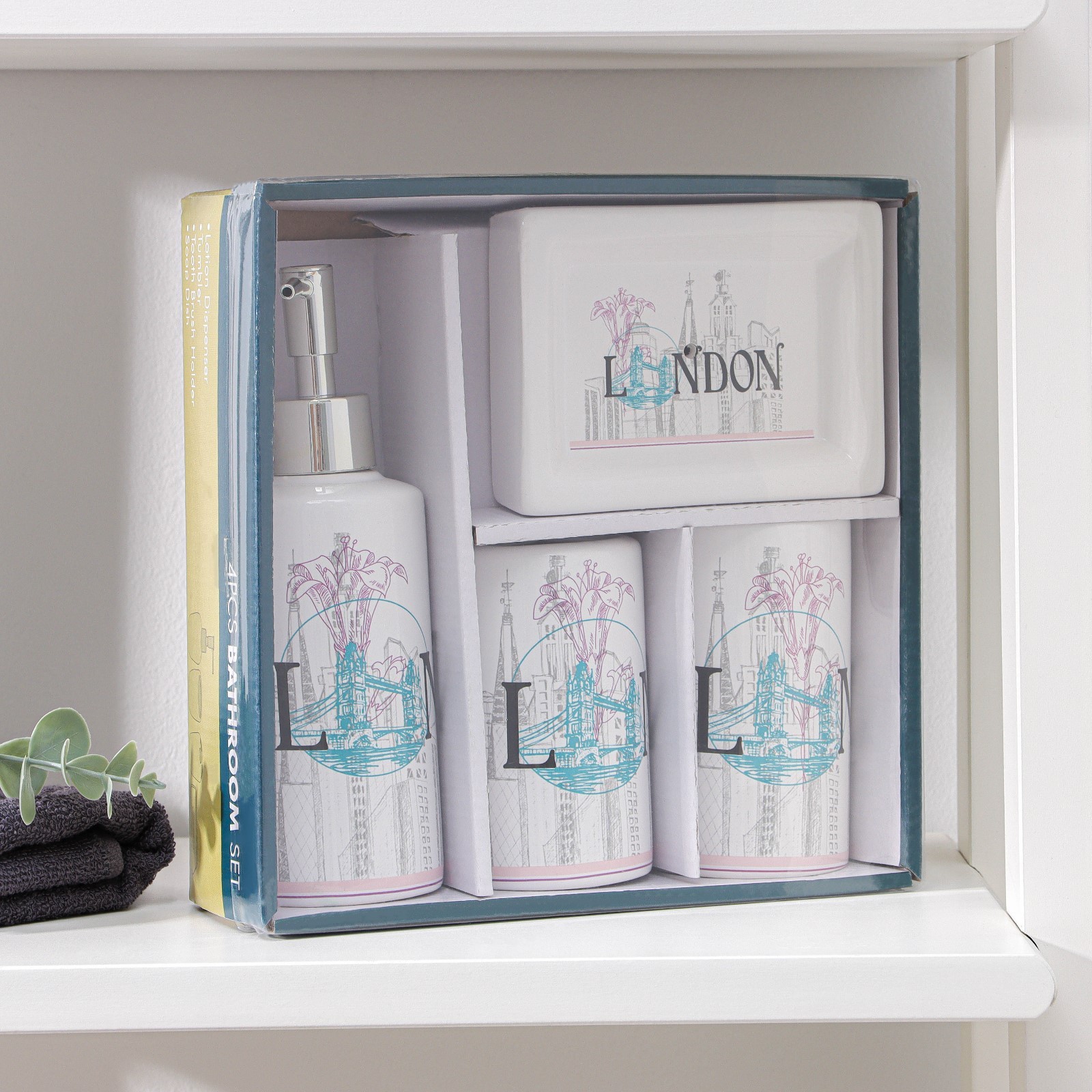 Набор аксессуаров для ванной комнаты «города», 4 предмета (дозатор 270 мл, мыльница 2 стакана), цвет микс
