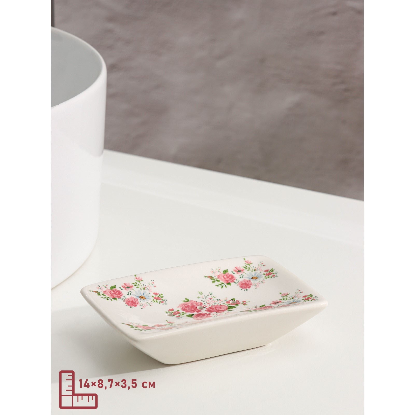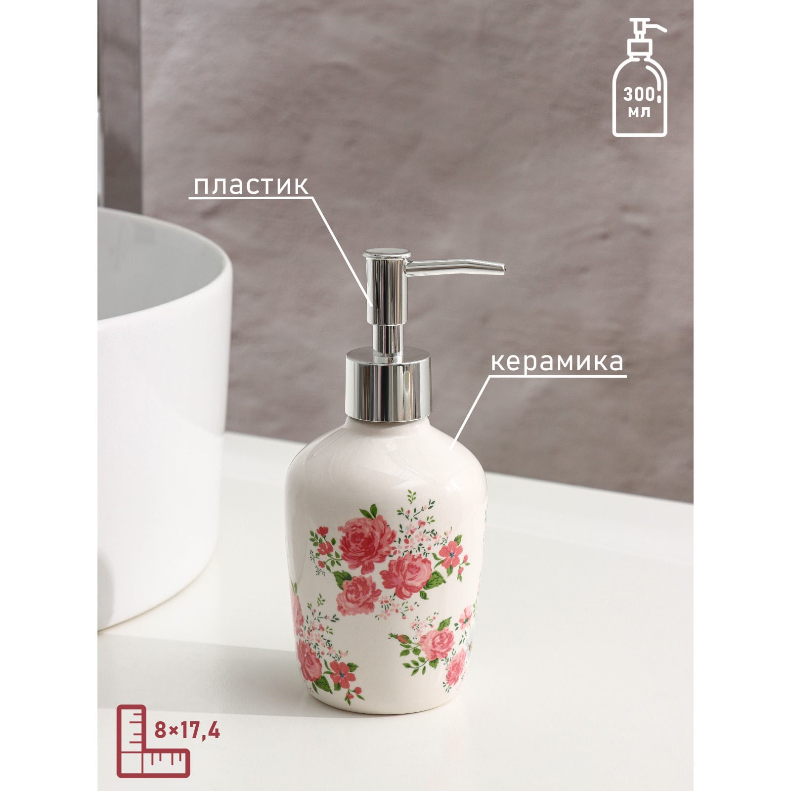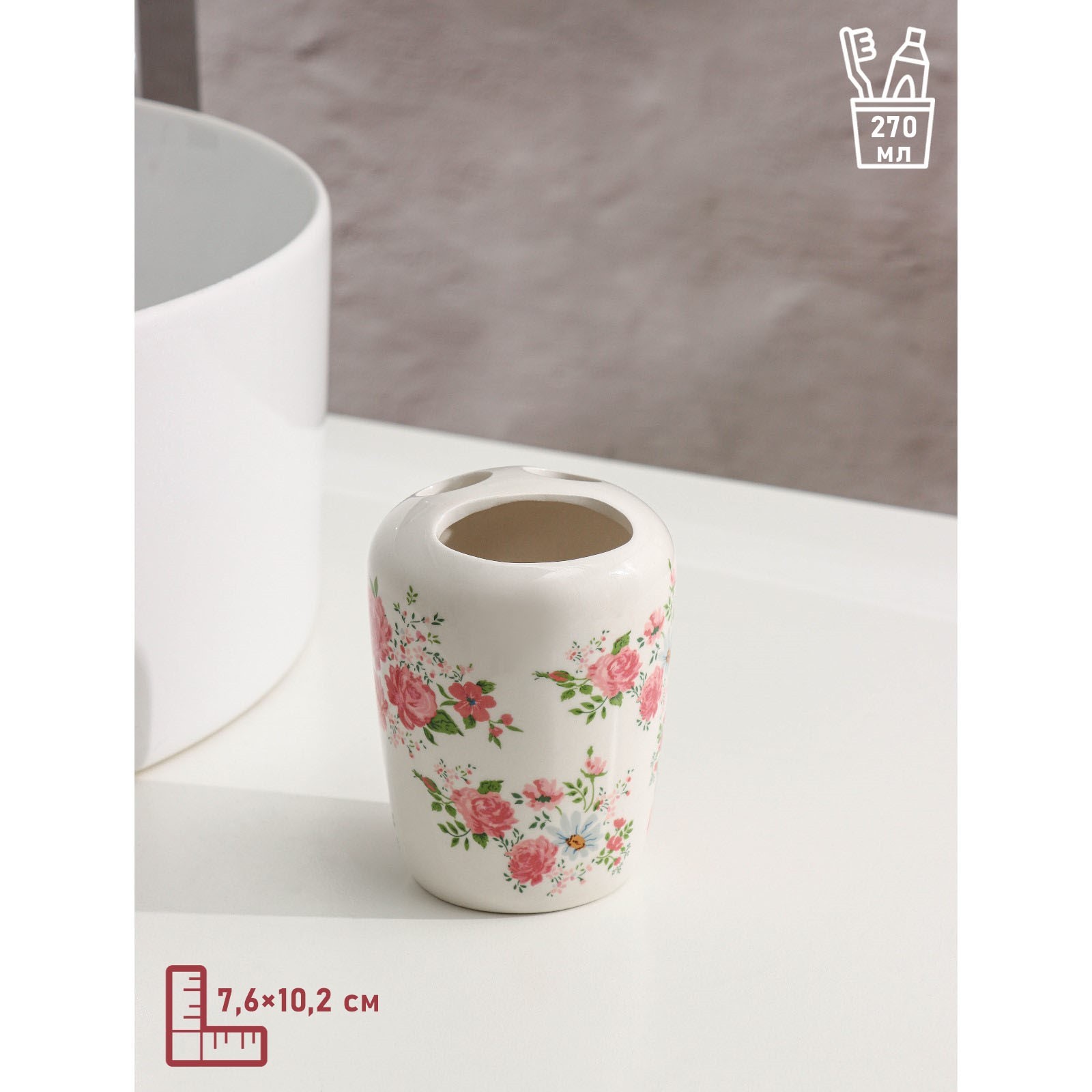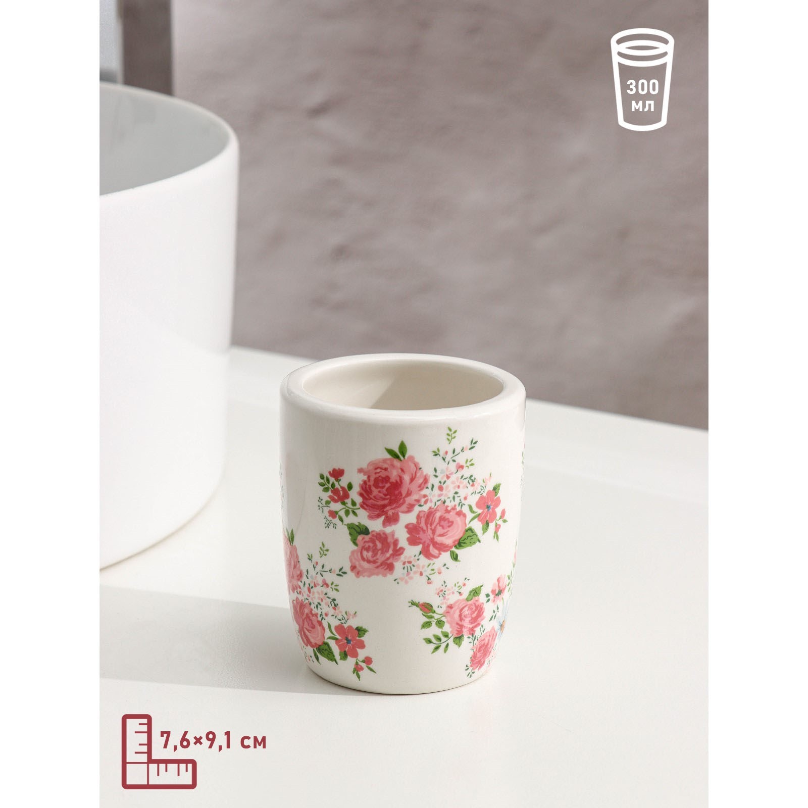 Набор аксессуаров для ванной комнаты «розовые розы», 4 предмета (дозатор 300 мл, мыльница, 2 стакана), цвет белый