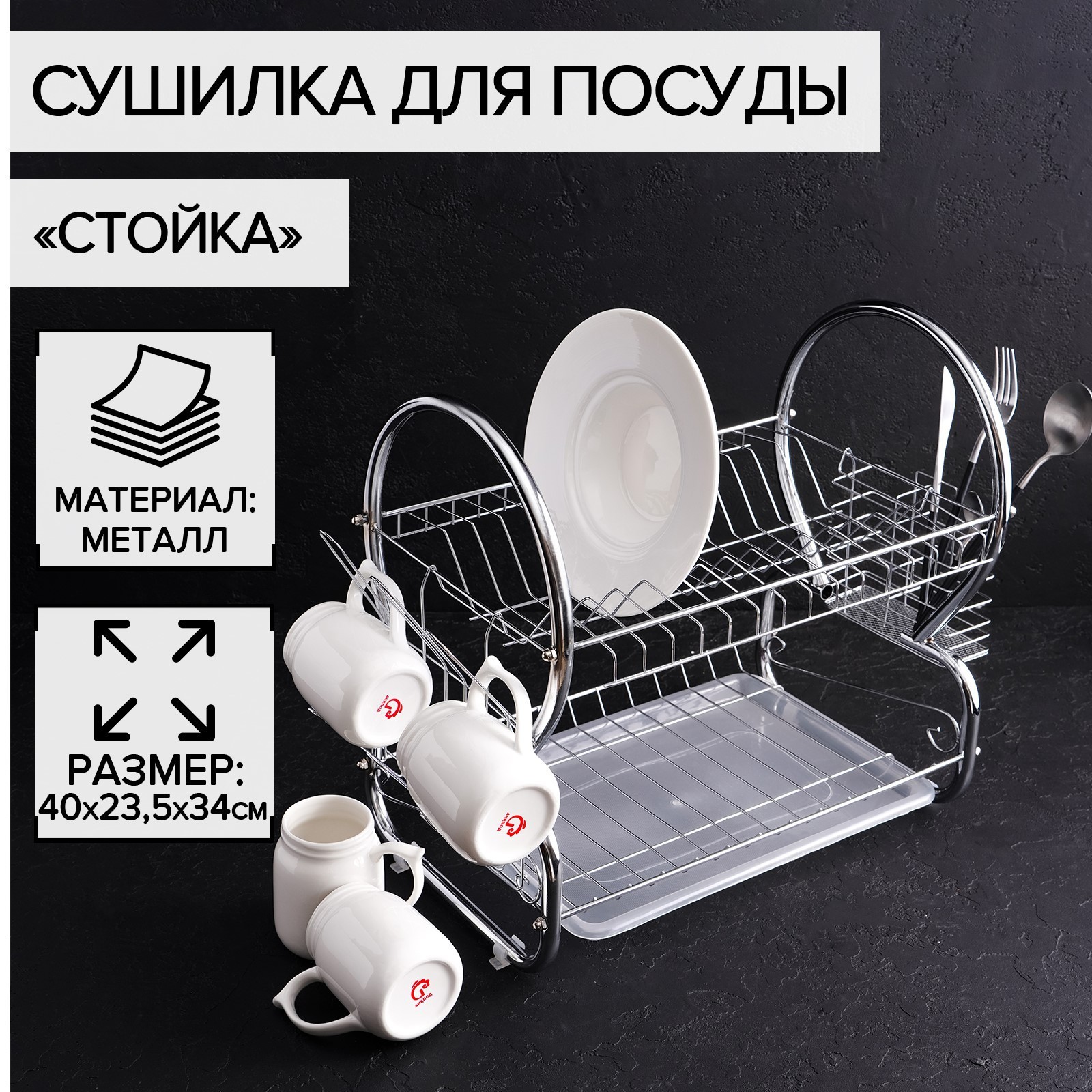 Сушилка для посуды доляна «стойка», 8-образная, 40x23,5x34 см, цвет хром