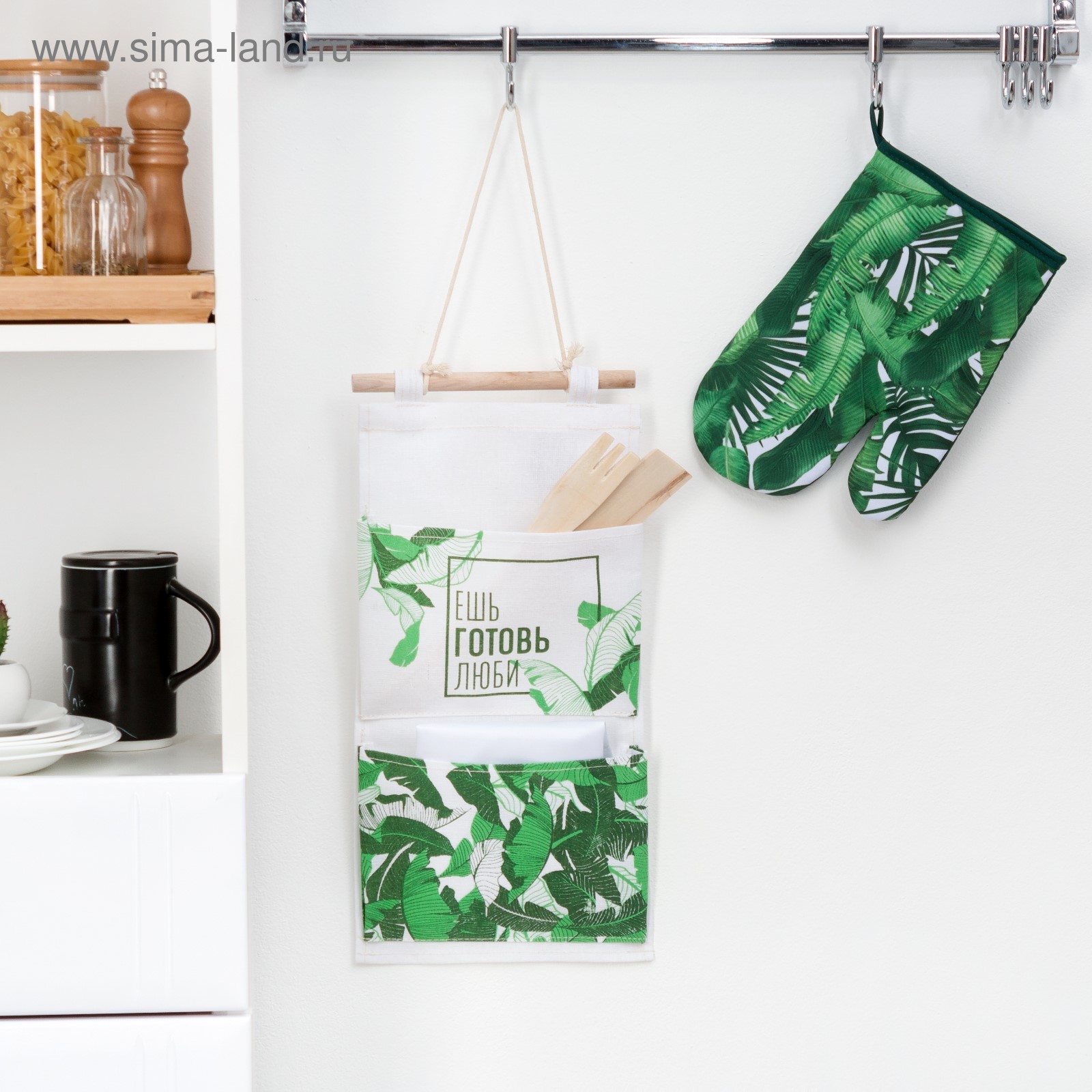 Кармашек текстильный "ешь, готовь, люби" 2 отделения, 20х40 см