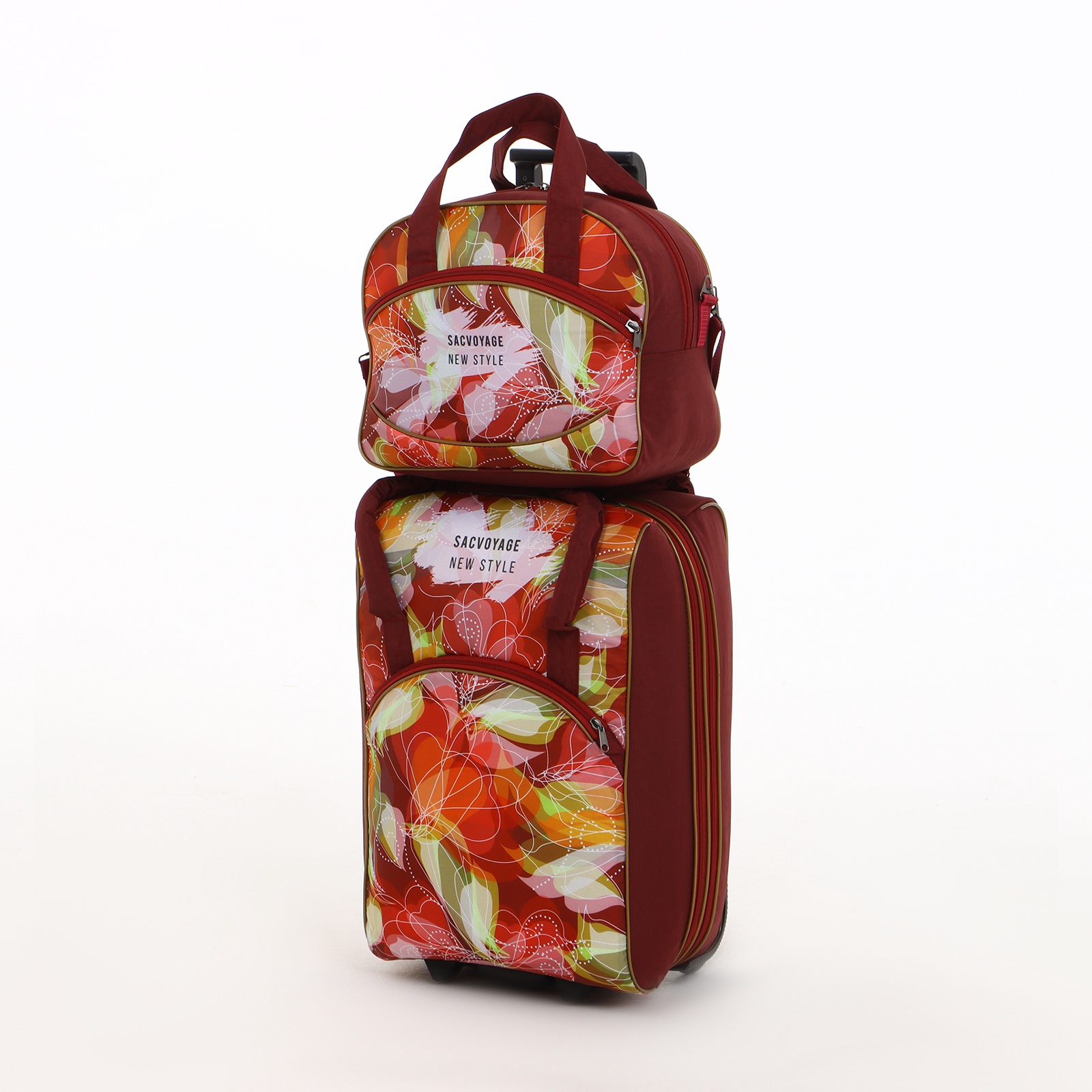 Чемодан малый 20" с сумкой, отдел на молнии, наружный карман, с расширением, цвет бордовый