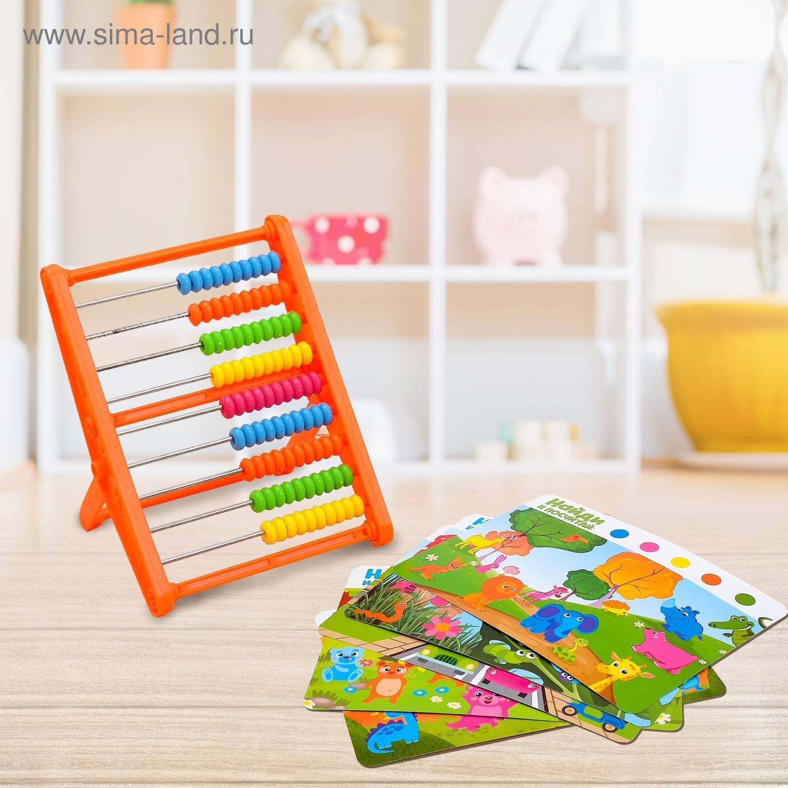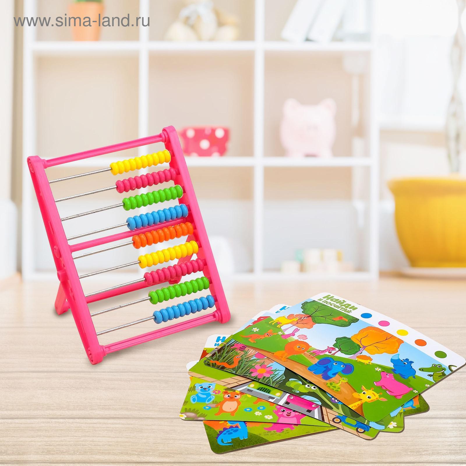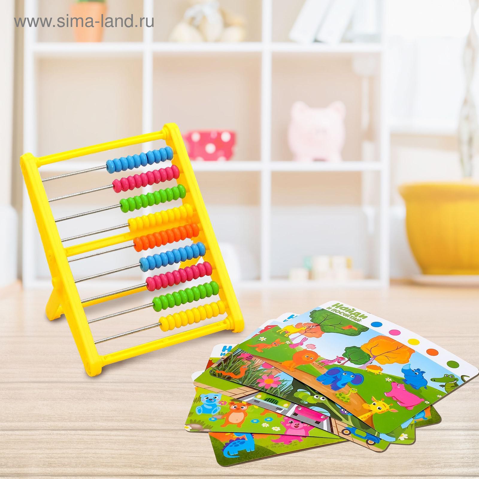 Настольная игра «найди и посчитай», счёты, 10 заданий, 3+, микс. Счёты с обучающими карточками «Найди и посчитай» познакомят вашего ребёнка с цветами и цифрами. Костяшки окрашены яркой краской и имеют приятную на ощупь форму. Малышу будет интересно играть и развивать мелкую моторику. Как играть Возьмите карточку. Найдите на ней все предметы определённого цвета и сосчитайте их.Отложите на счётах соответствующее количество костяшек такого же цвета.Пусть малыш назовёт бо льшее и меньшее количество предметов на картинке.Передвигайте костяшки справа налево, складывайте и вычитайте.Играйте и развивайтесь вместе с нами! Для кого:Унисекс|Возраст:От 3 лет|Материал:Картон|Материал:Металл|Материал:Пластик|Развитие навыков:Память|Развитие навыков:Счёт|Развитие навыков:Моторика|Развитие навыков:Логика|Тема обучения:Цифры, счёт, математика|Страна:Китай  развернуть описание ▼