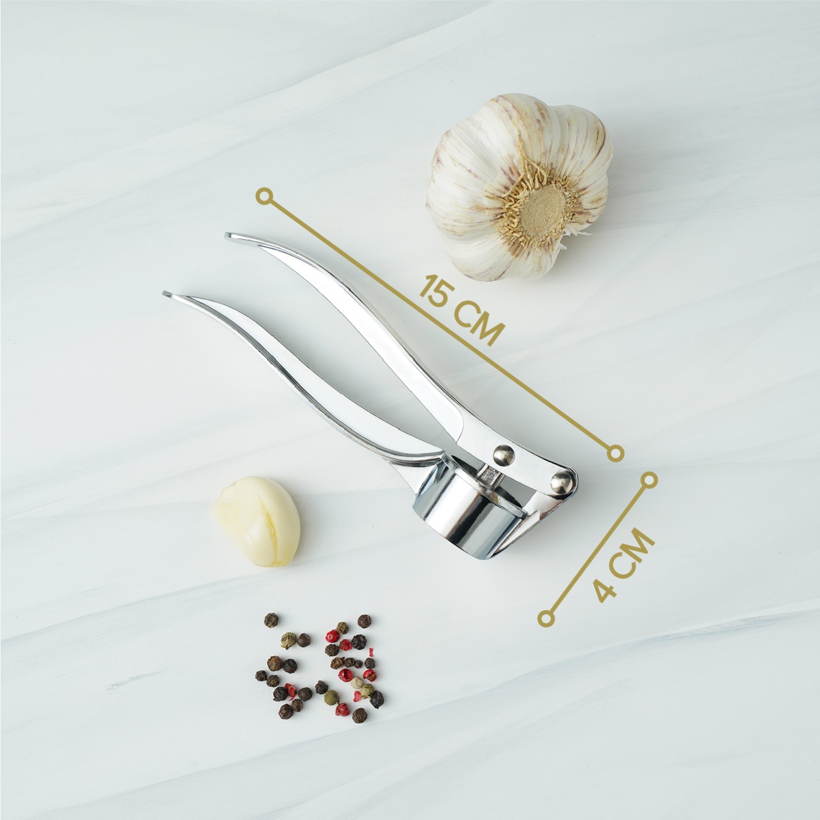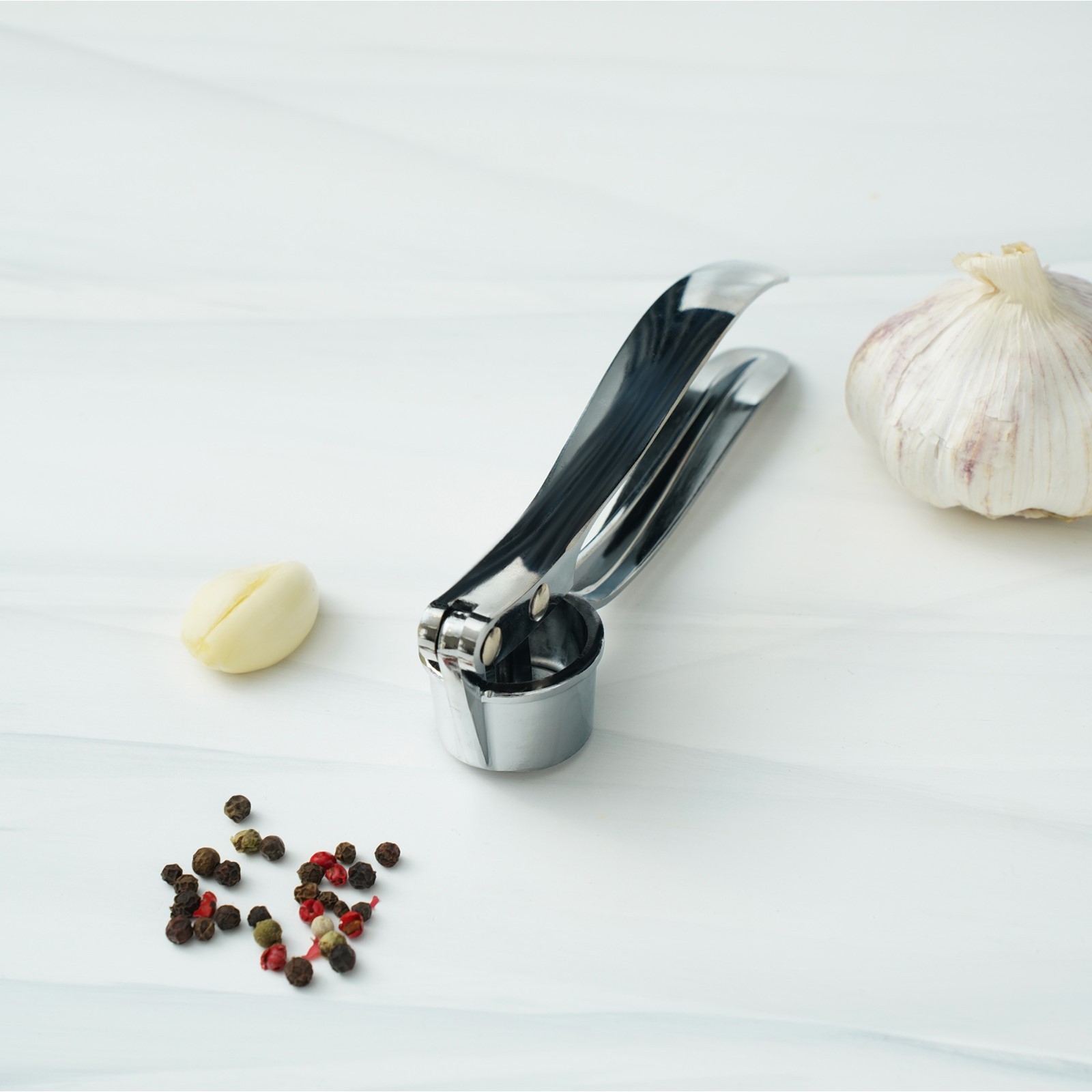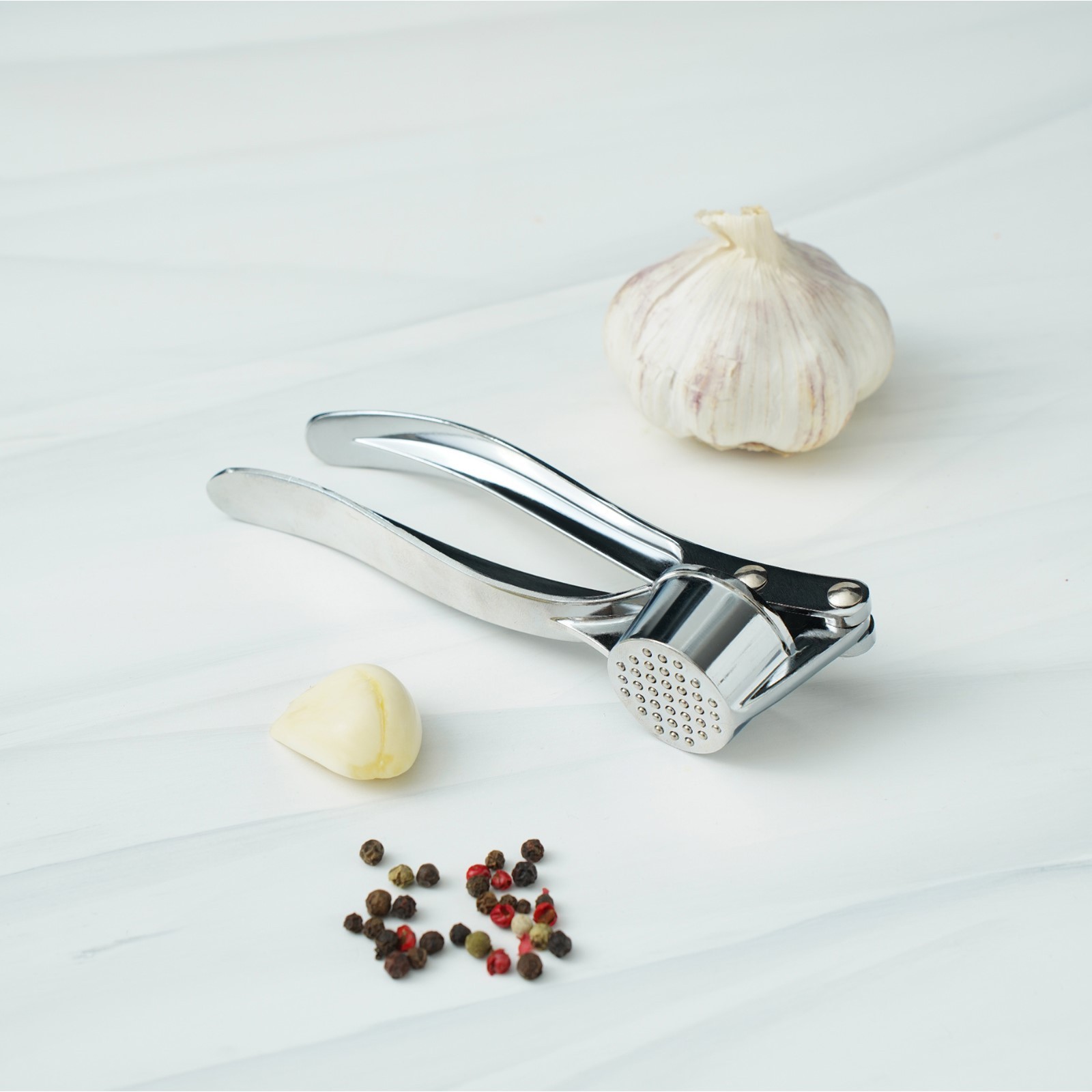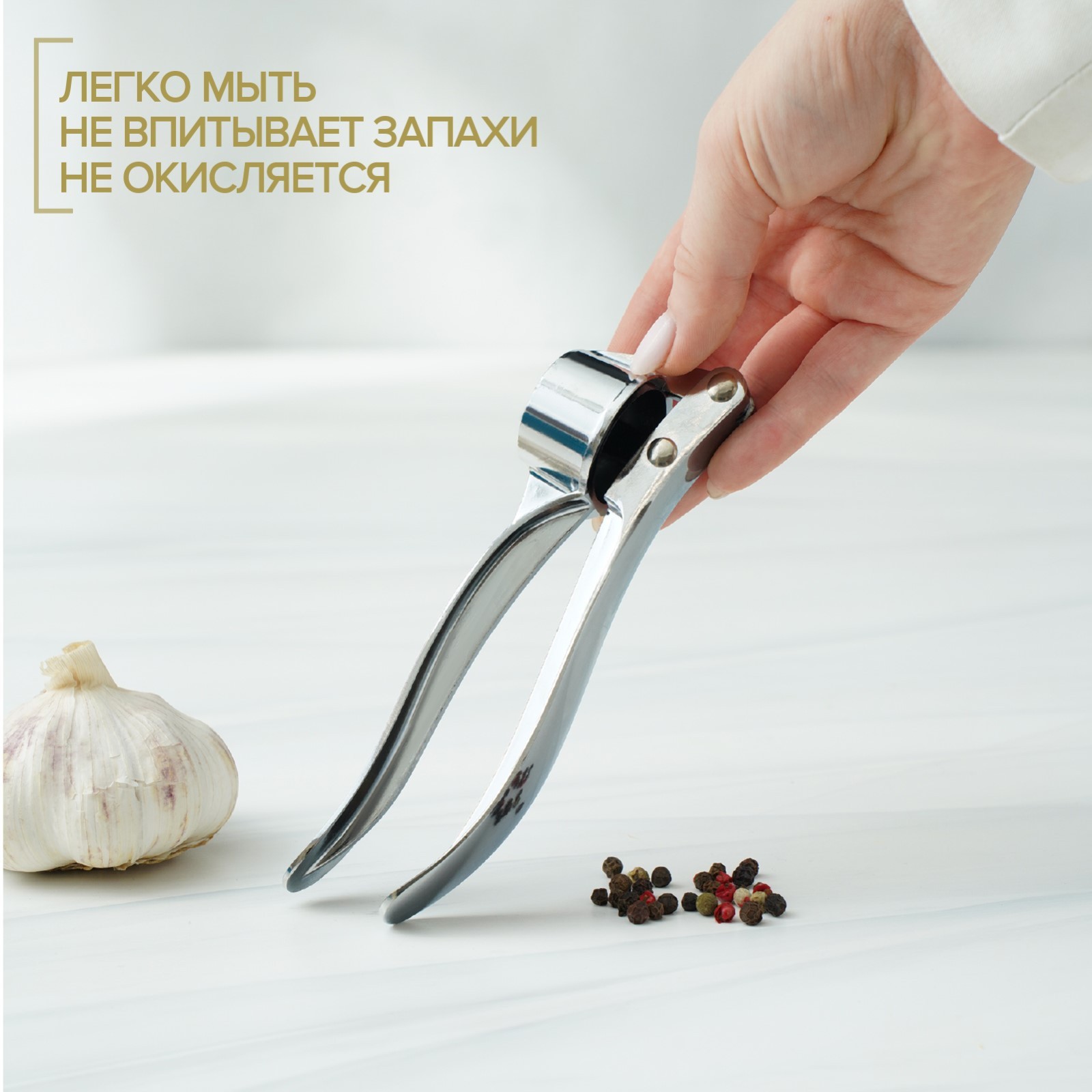 Пресс для чеснока доляна «эрнест», 15 см, цвет серебряный. Пресс для чеснока незаменим при приготовлении пикантных соусов, различных начинок и салатов. Достоинства: простая в использовании конструкция;прочный металлический корпус;эргономичная ручка;лёгкость мытья. Предмет можно также использовать для измельчения оливок и маслин (без косточек), перца чили и некоторых других продуктов, требующих особо мелкой нарезки. Материал: Коррозионно-стойкая сталь Тип покрытия: Без покрытия  развернуть описание ▼