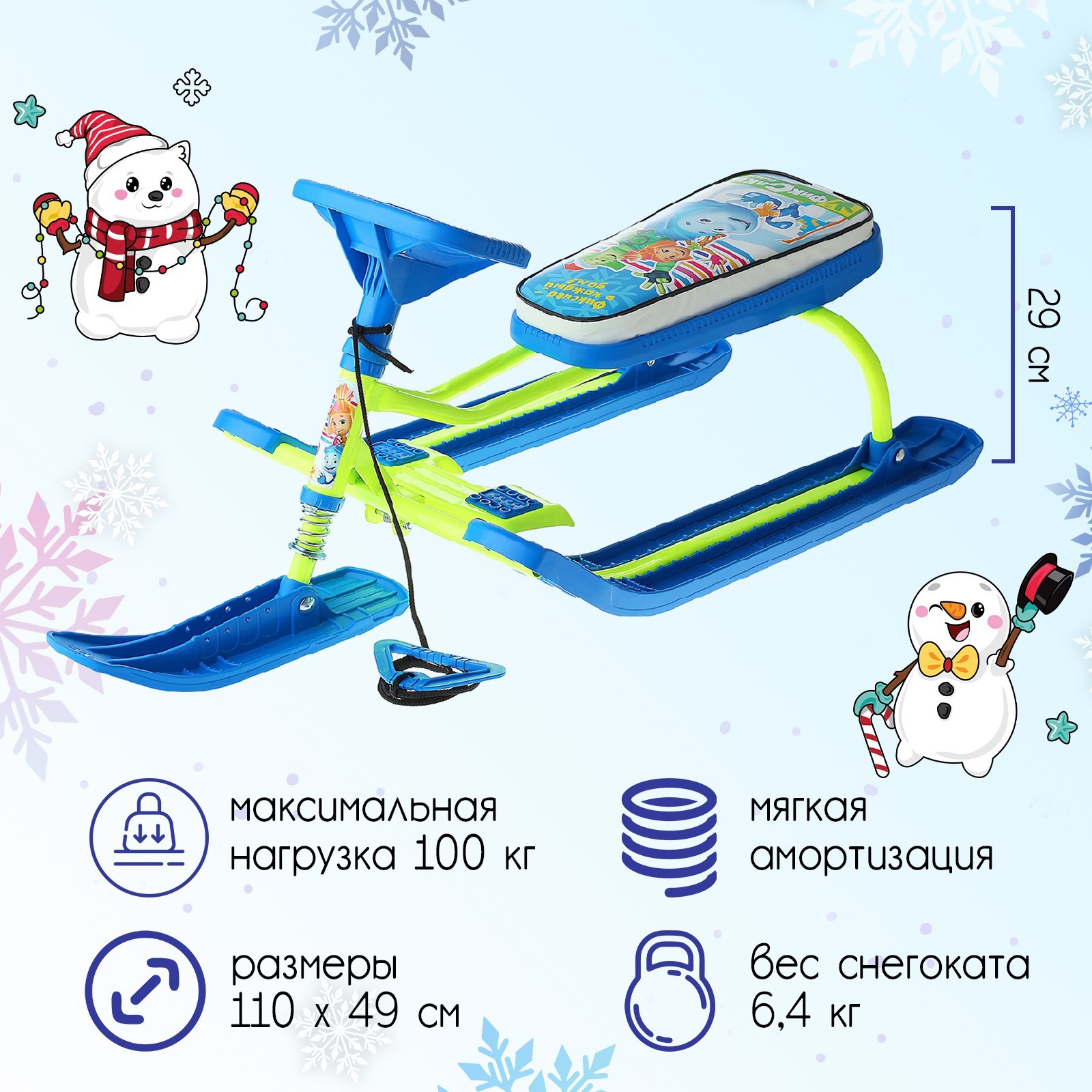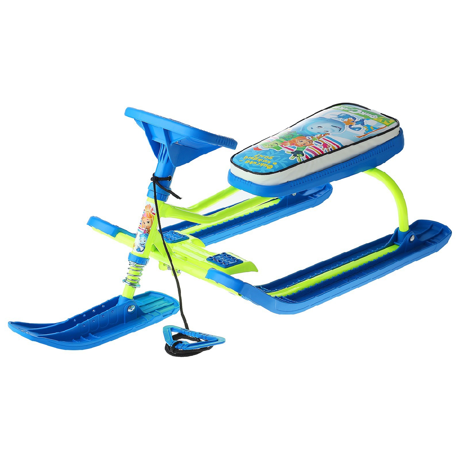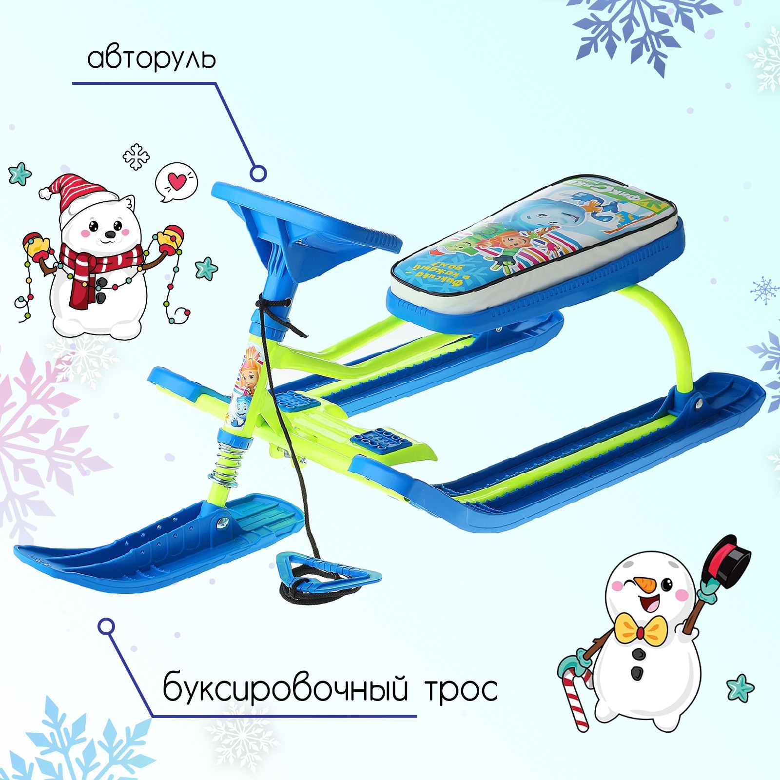 Снегокат «тимка спорт 2 фиксики», тс2/ф22, цвет лимонный/голубой. Снегокат предназначен для перевозки детей по плотному снегу или льду, катанию с горок. Имеет сварную конструкцию из стальных труб, пластиковых элементов и мягкое сиденье, обтянутое искусственной кожей с рисунком. Оснащён буксировочным тросом. Усиленный тормоз эффективен на обледенелой поверхности. В комплект входит набор наклеек на снегокат. Характеристики АвторульБуксировочный тросШирина сиденья: 20 смДлина сиденья: 44, 5 смВысота по руль: 42 смВысота по сиденью: 29 смМаксимальная нагрузка: 100 кгМасса: 6, 4 кг Цвет: Голубой Возраст: От 3 лет Высота до сиденья, см: 29 Maксимальная нагрузка, кг: 100 Ручка для родителей: Нет Ремень безопасности: Нет Наличие спинки: Нет Тип руля: Авторуль Буксировочный трос: Веревка Размер сиденья, см: 20 х 45 Регулировка посадочных мест: Нет Амортизатор: Да  развернуть описание ▼