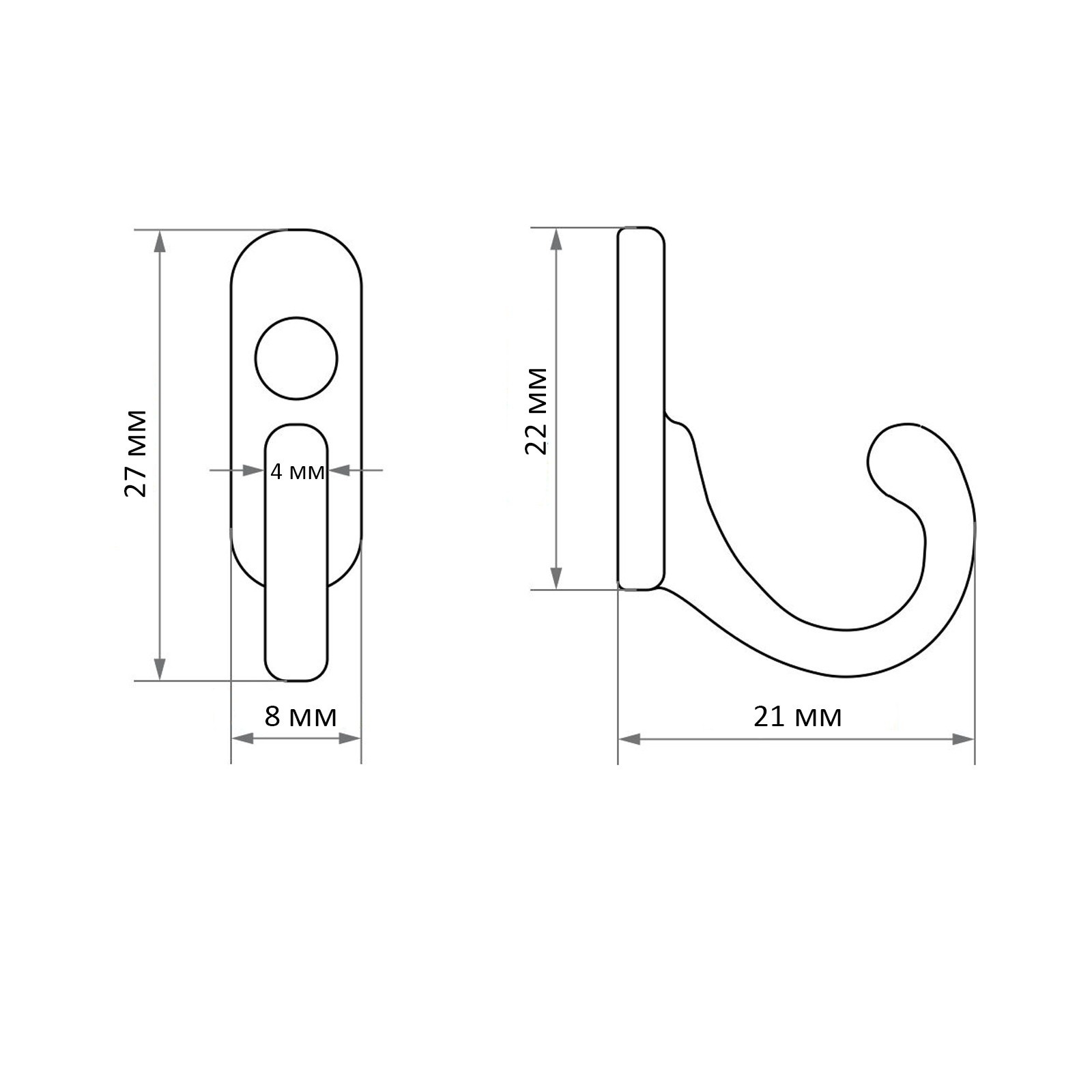Крючок мебельный тундра Tko006, однорожковый, черный, 25 шт