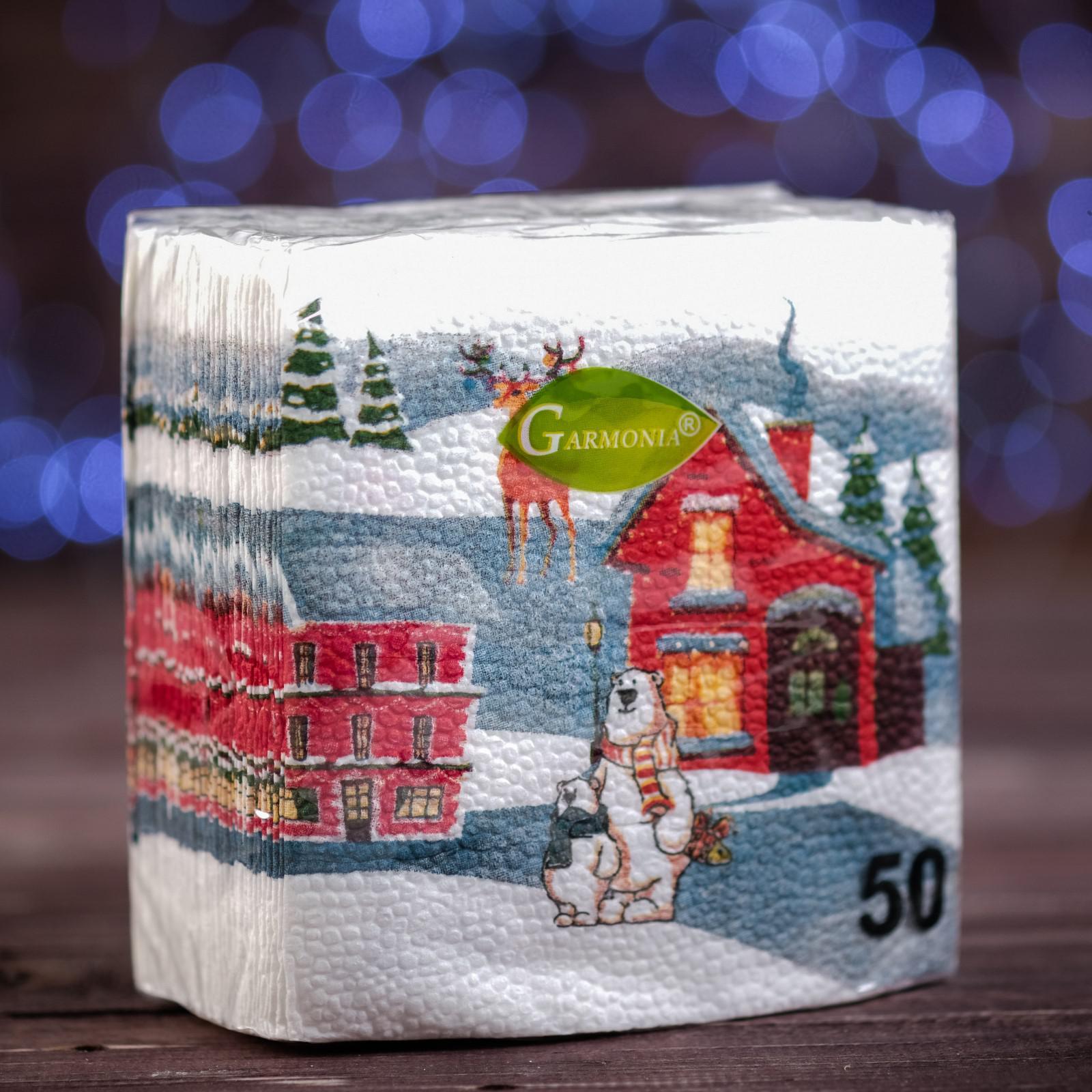 Новогодние новогодние салфетки бумажные "гармония цвета многоцветие. домики", 24*24 см, 50 листов