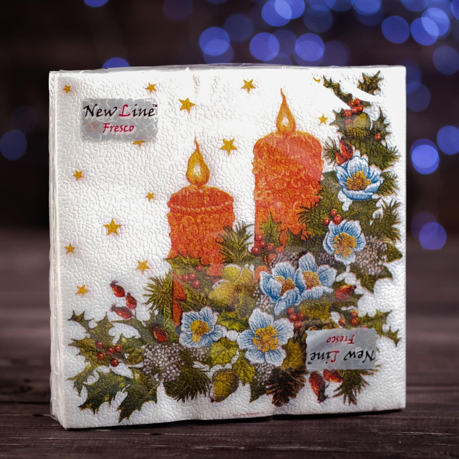 Новогодние салфетки бумажные Fresco "свечи", 2 слоя, 33*33 см, 20 листов