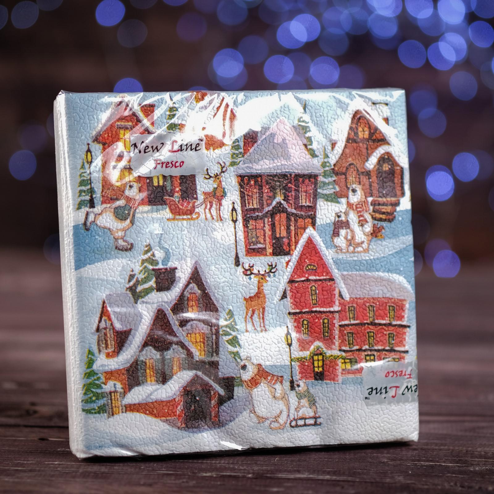 Салфетки бумажные Fresco, 33х33 см, 2 слоя, 20 шт, с рисунком "домики"