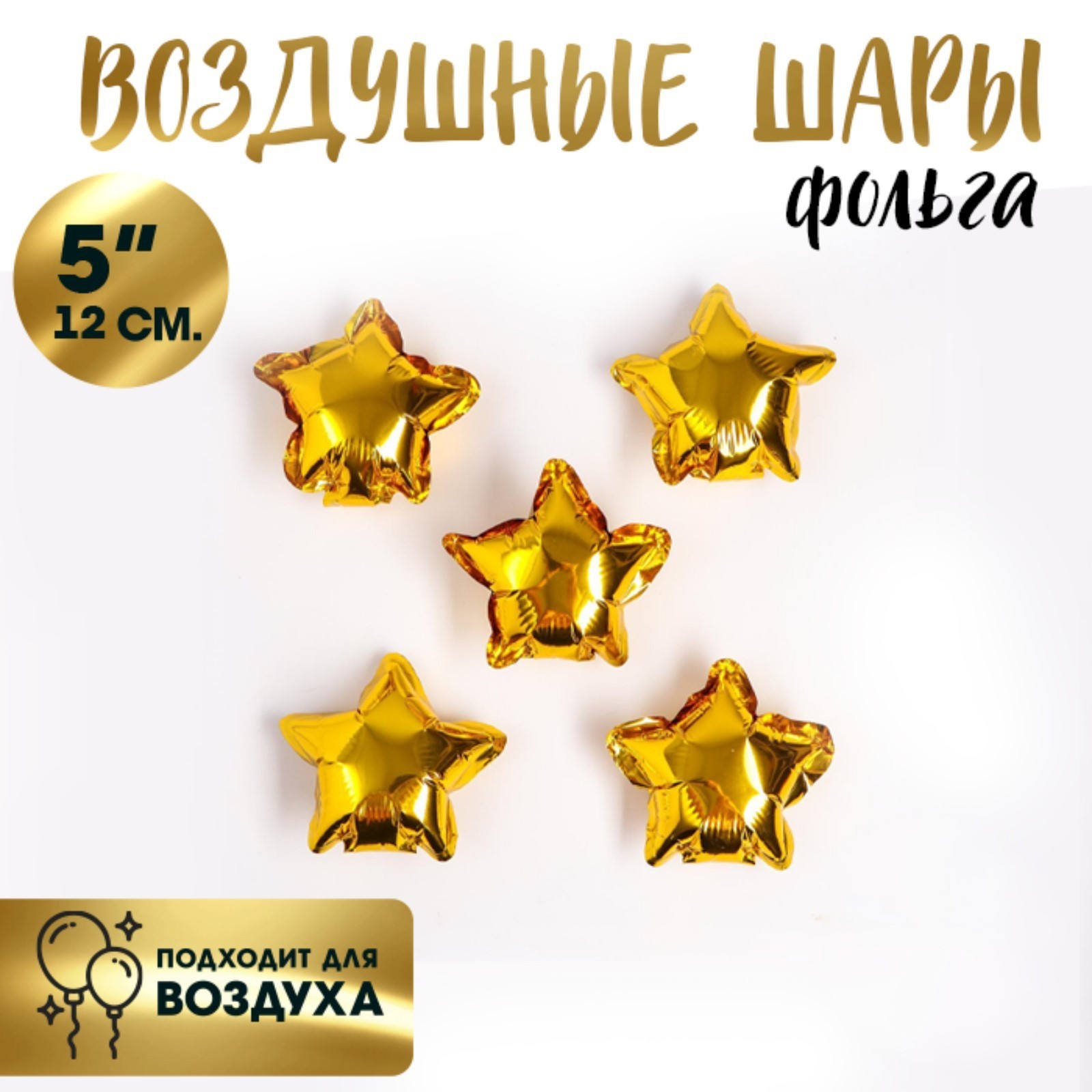 Воздушные шары фольгированные 5 «звезда», 5 шт., для палочки