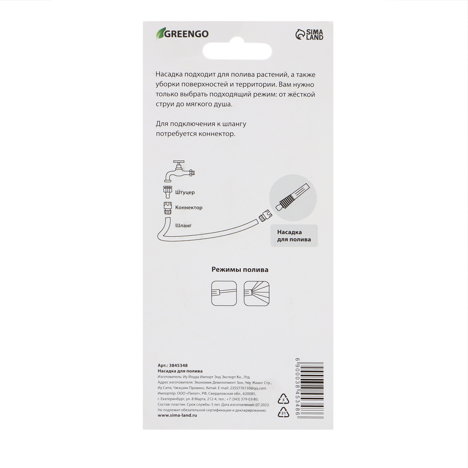 Насадка для полива, быстросъёмное соединение, пластик, Greengo