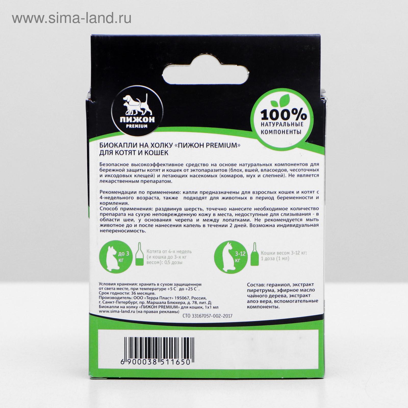 Био капли для животных от блох и клещей «пижон Premium» для котят и кошек, до 10 кг, 1 1 мл